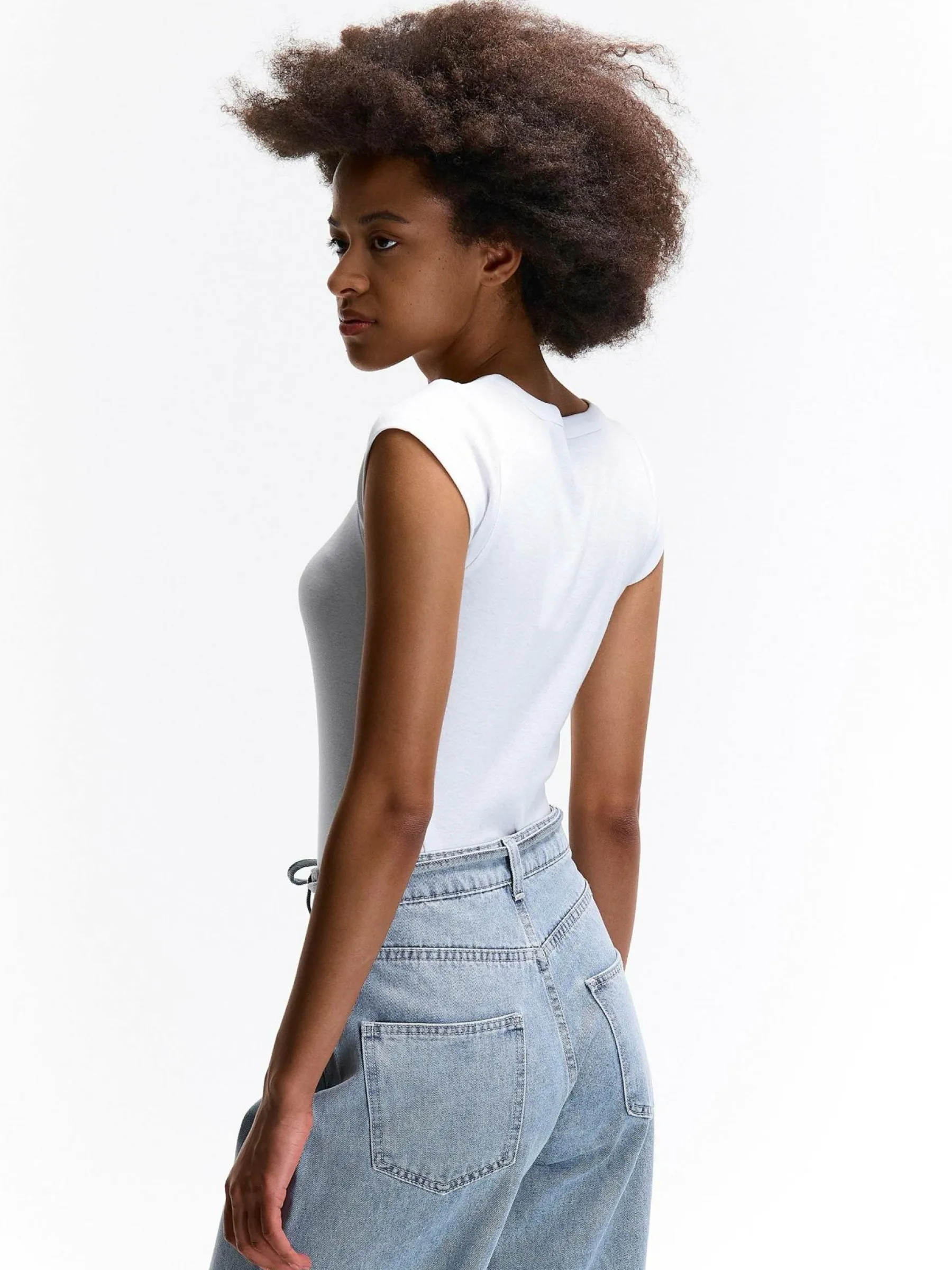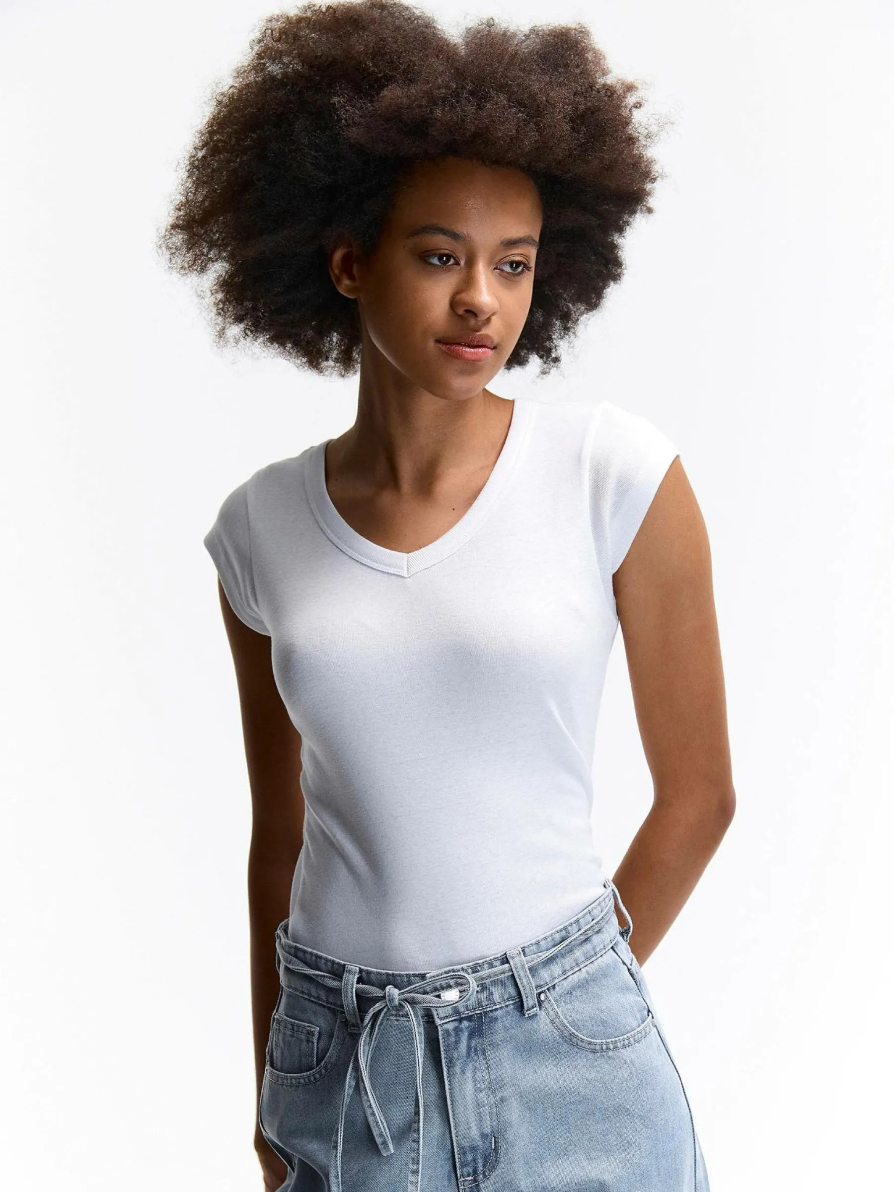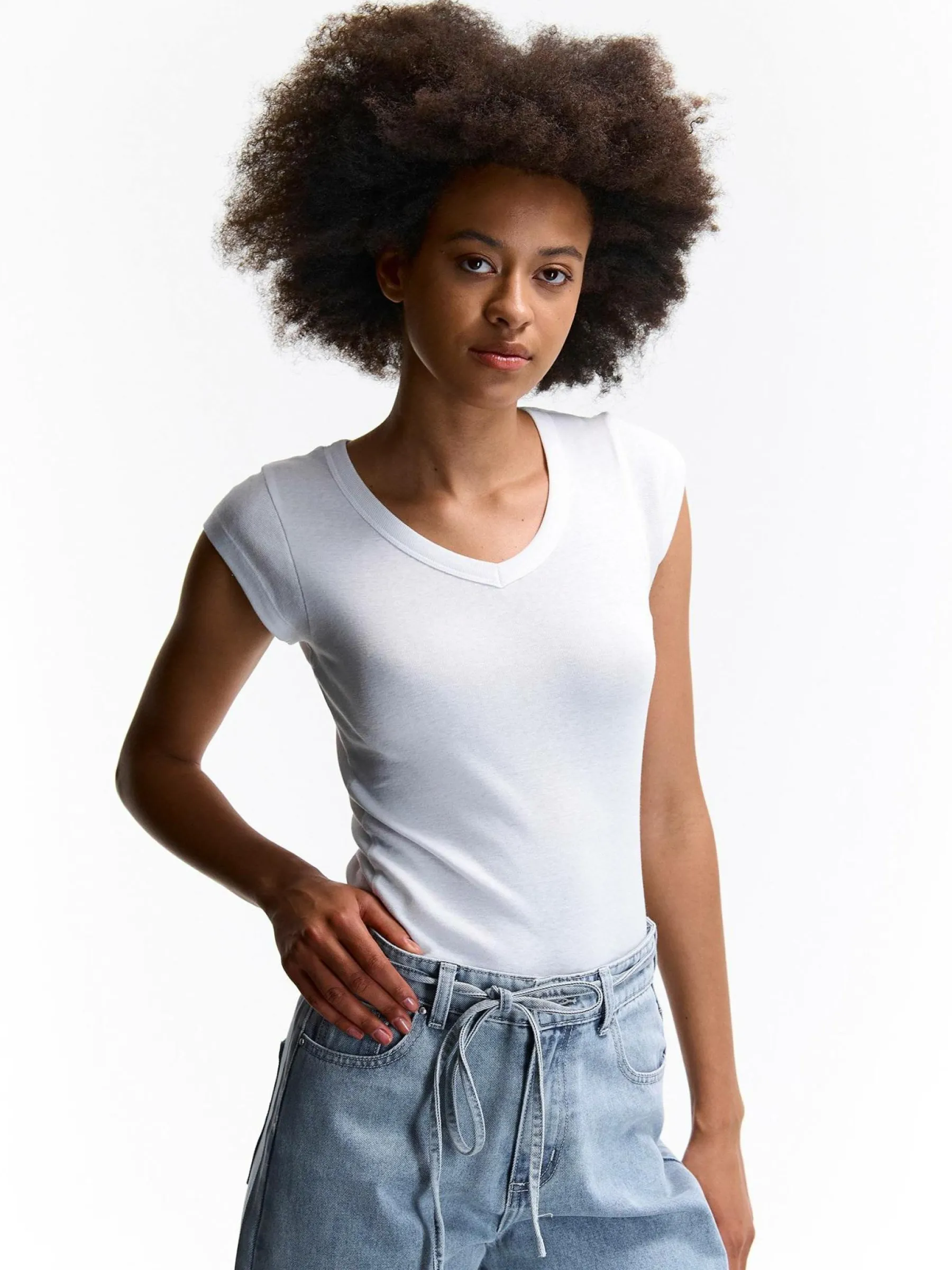 Kolor: białyKrój: regularTyp: koszulkaRekaw: krótki rękawDługość: krótkiPattern style: pojedynczy kolorDetal: na…