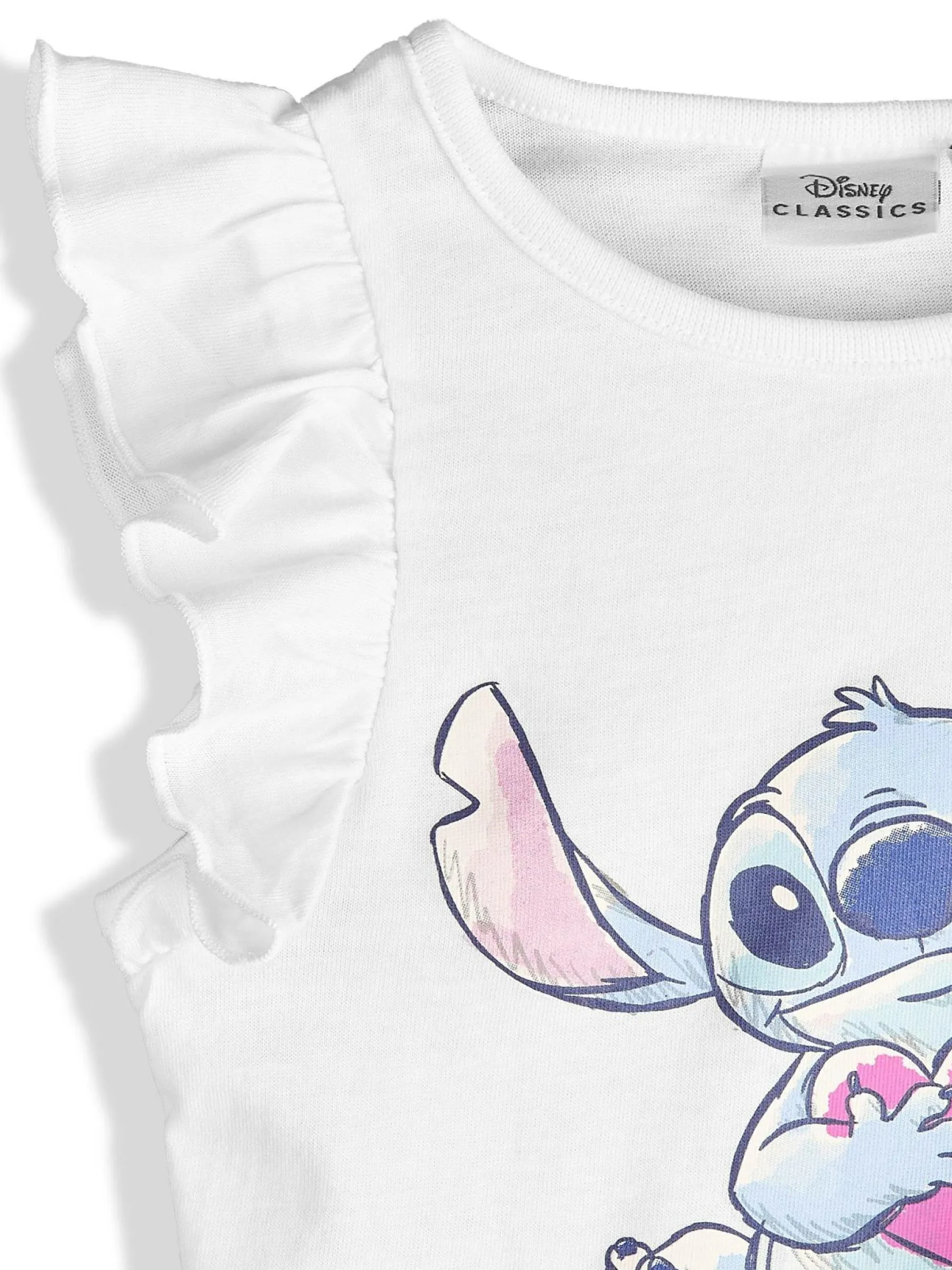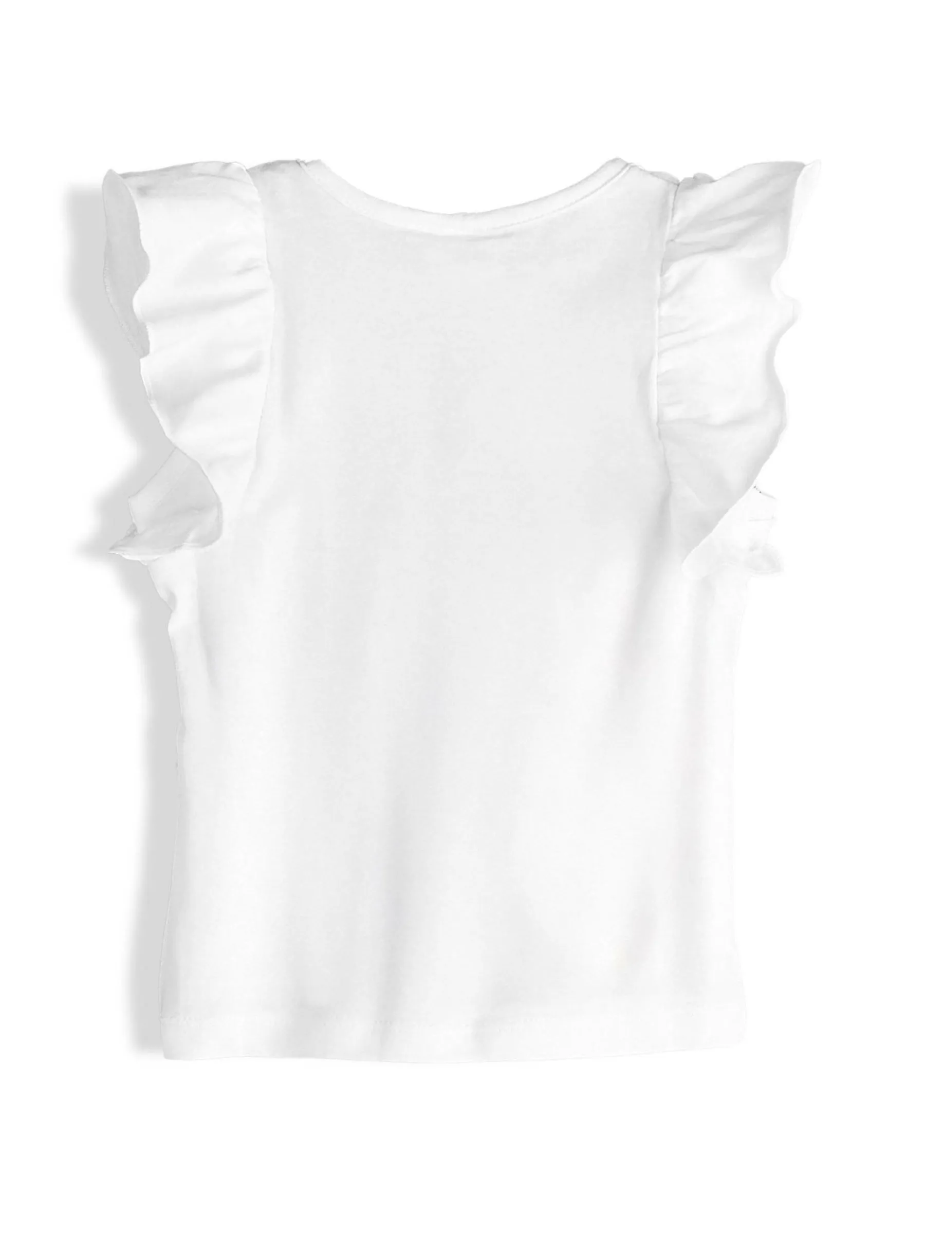 Kolor: białyKrój: z falbanąTyp: koszulkaRekaw: krótki rękawDługość: krótkiPattern style: z nadrukiemDetal: nad …