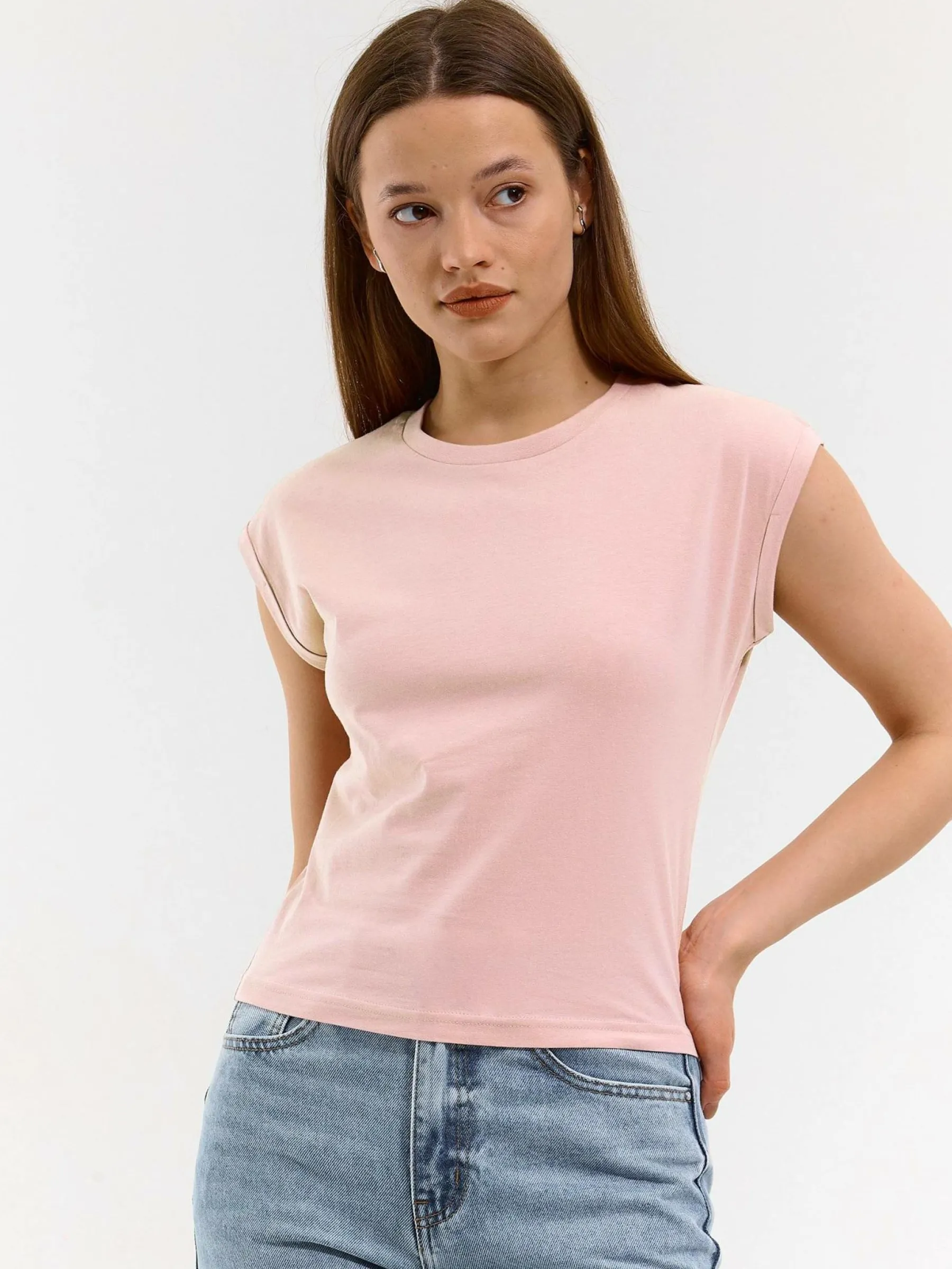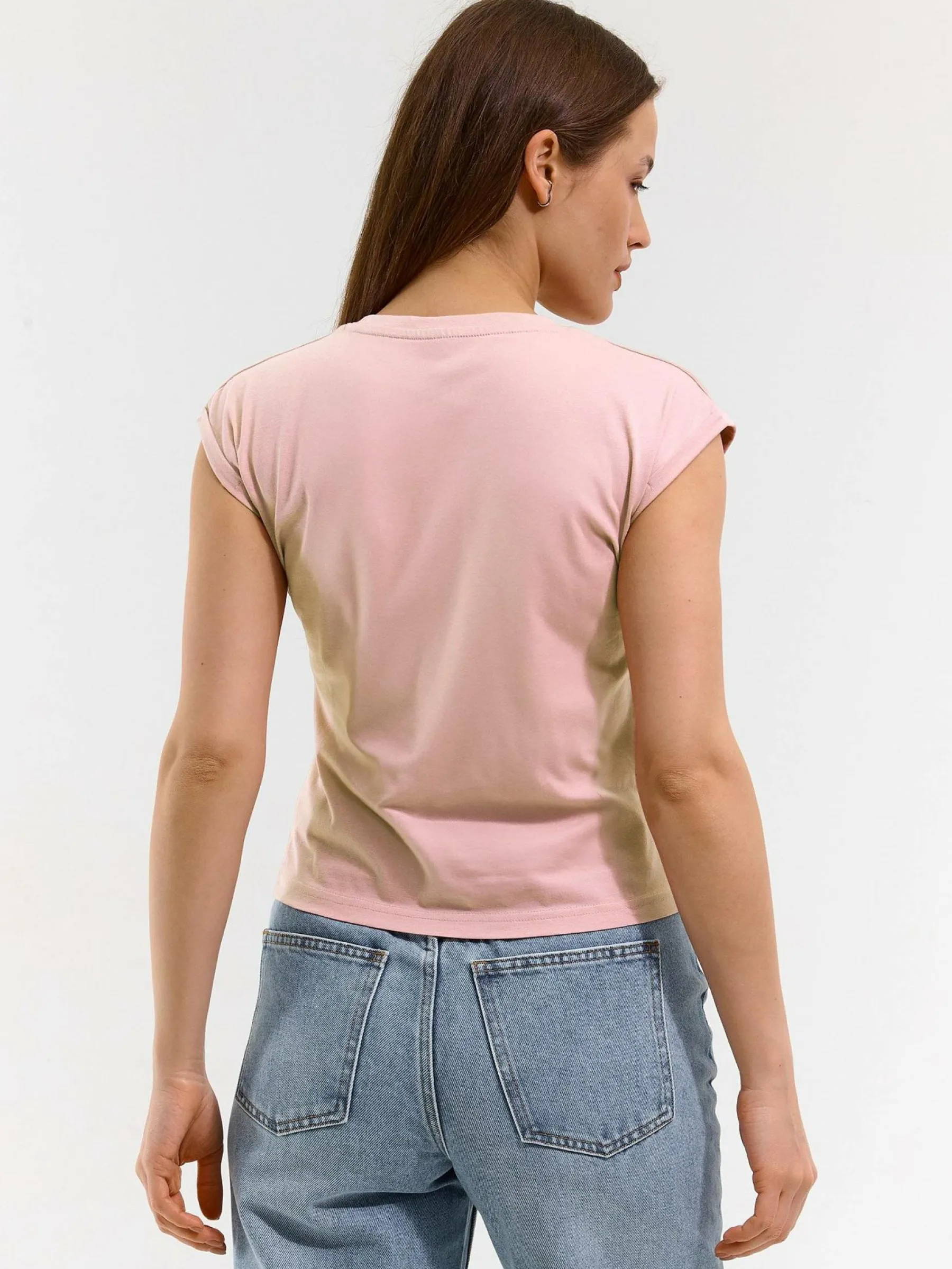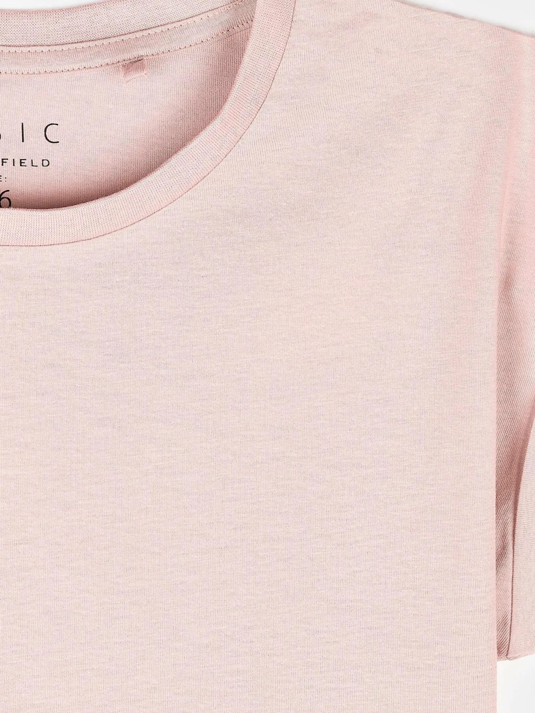 Kolor: różowyKrój: regularTyp: koszulkaRekaw: krótki rękawDługość: krótkiPattern style: pojedynczy kolorDetal: …