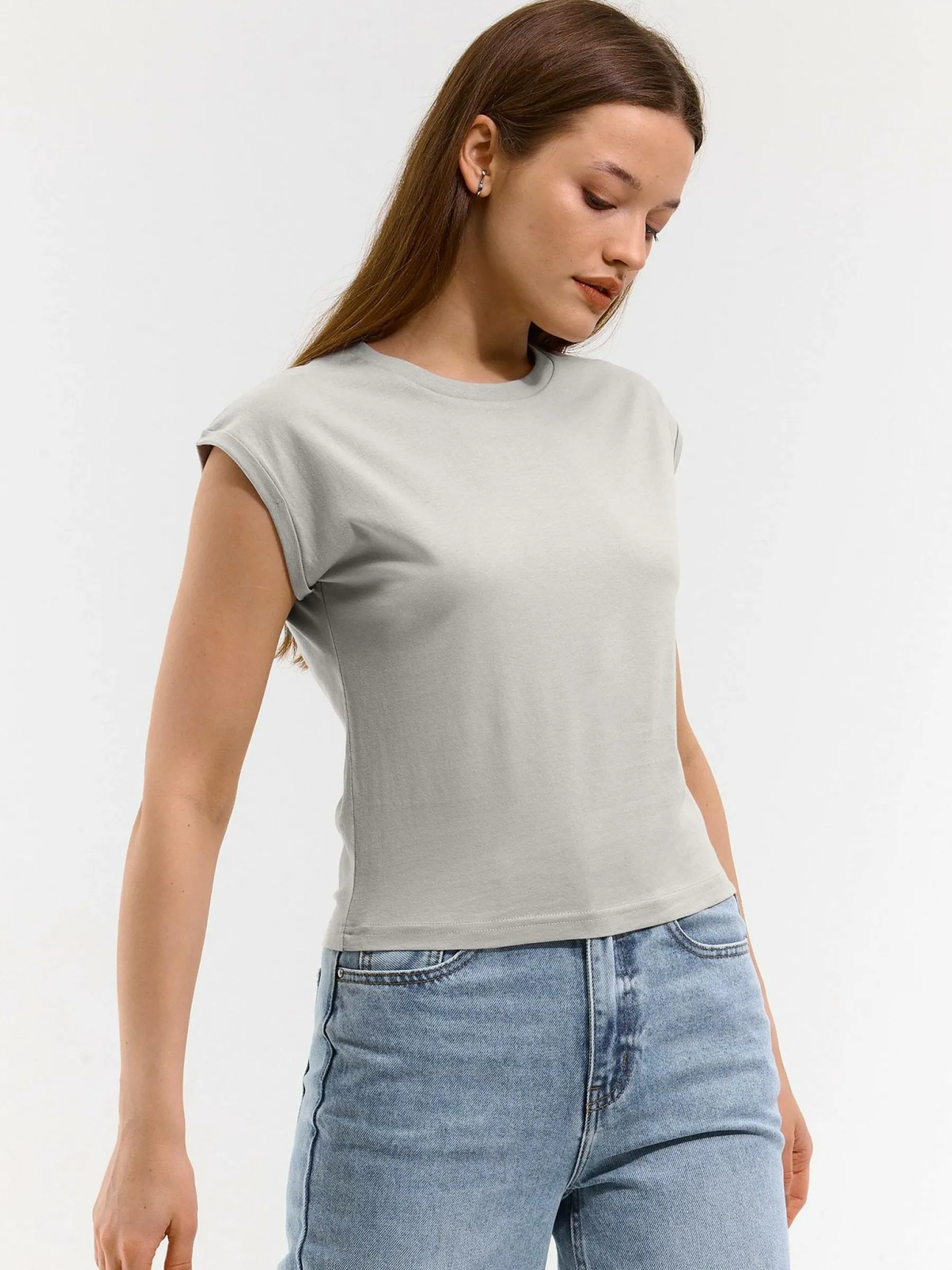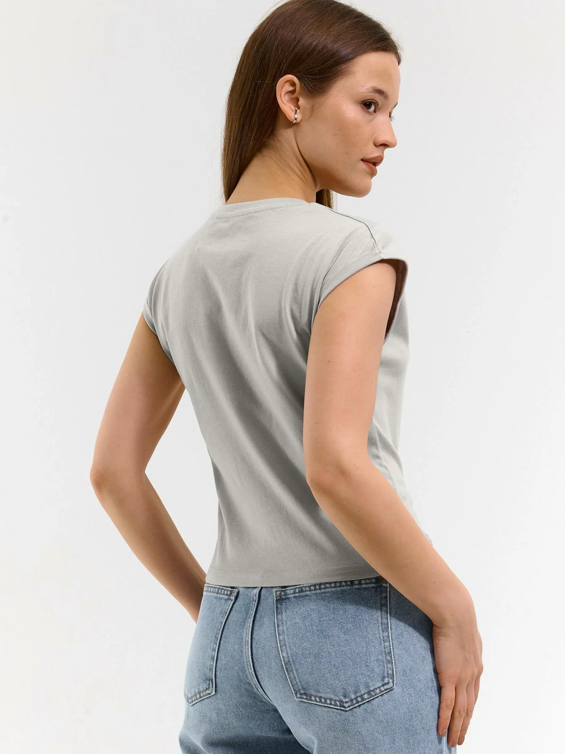 Kolor: szaryKrój: regularTyp: koszulkaRekaw: krótki rękawDługość: krótkiPattern style: pojedynczy kolorDetal: nad…