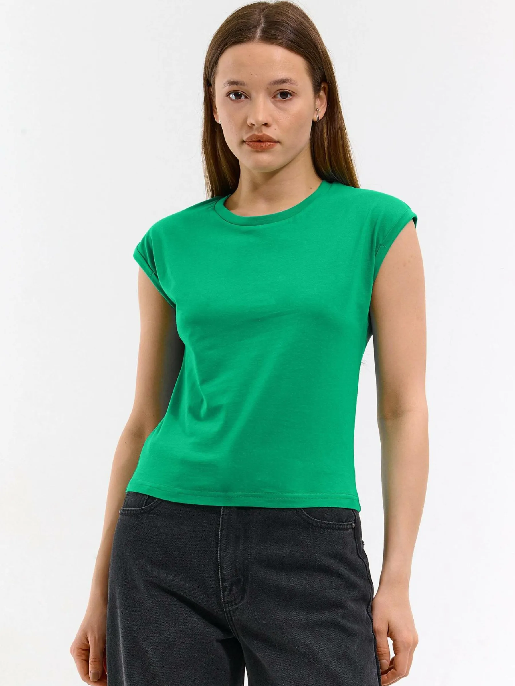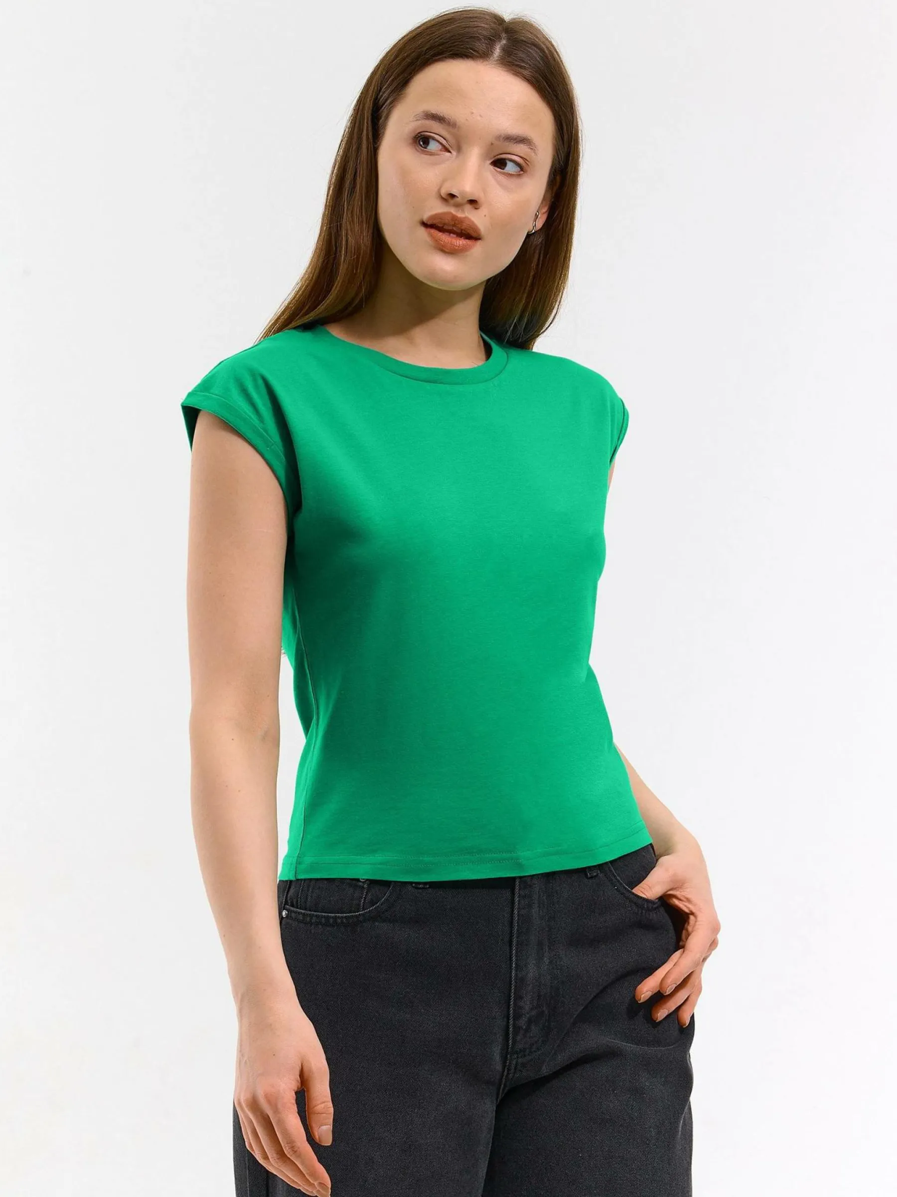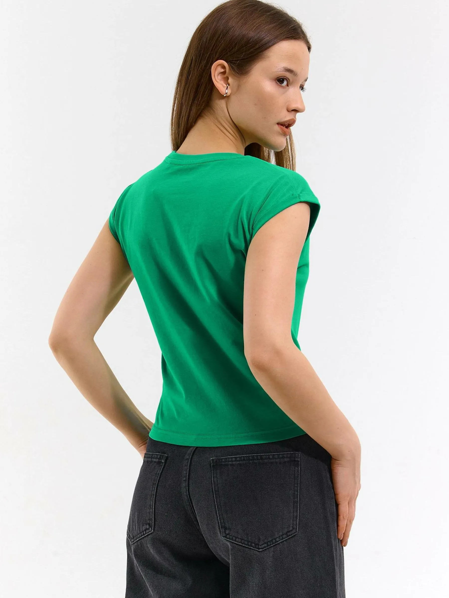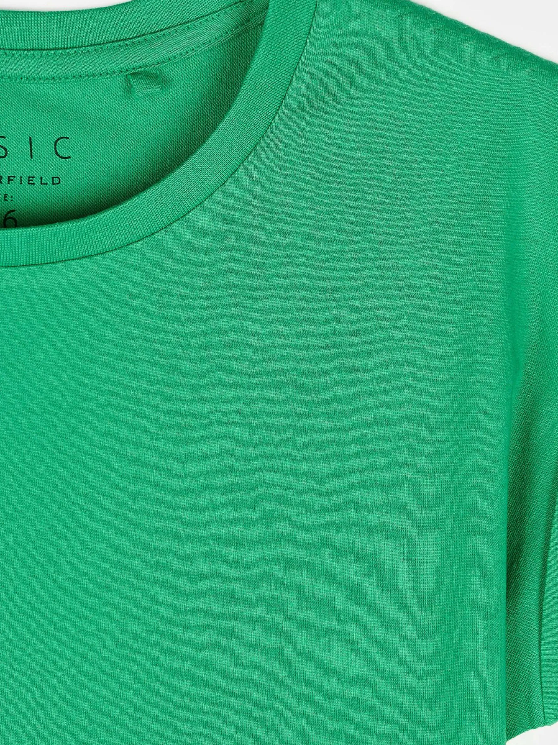 Kolor: zielonyKrój: regularTyp: koszulkaRekaw: krótki rękawDługość: krótkiPattern style: pojedynczy kolorDetal: n…