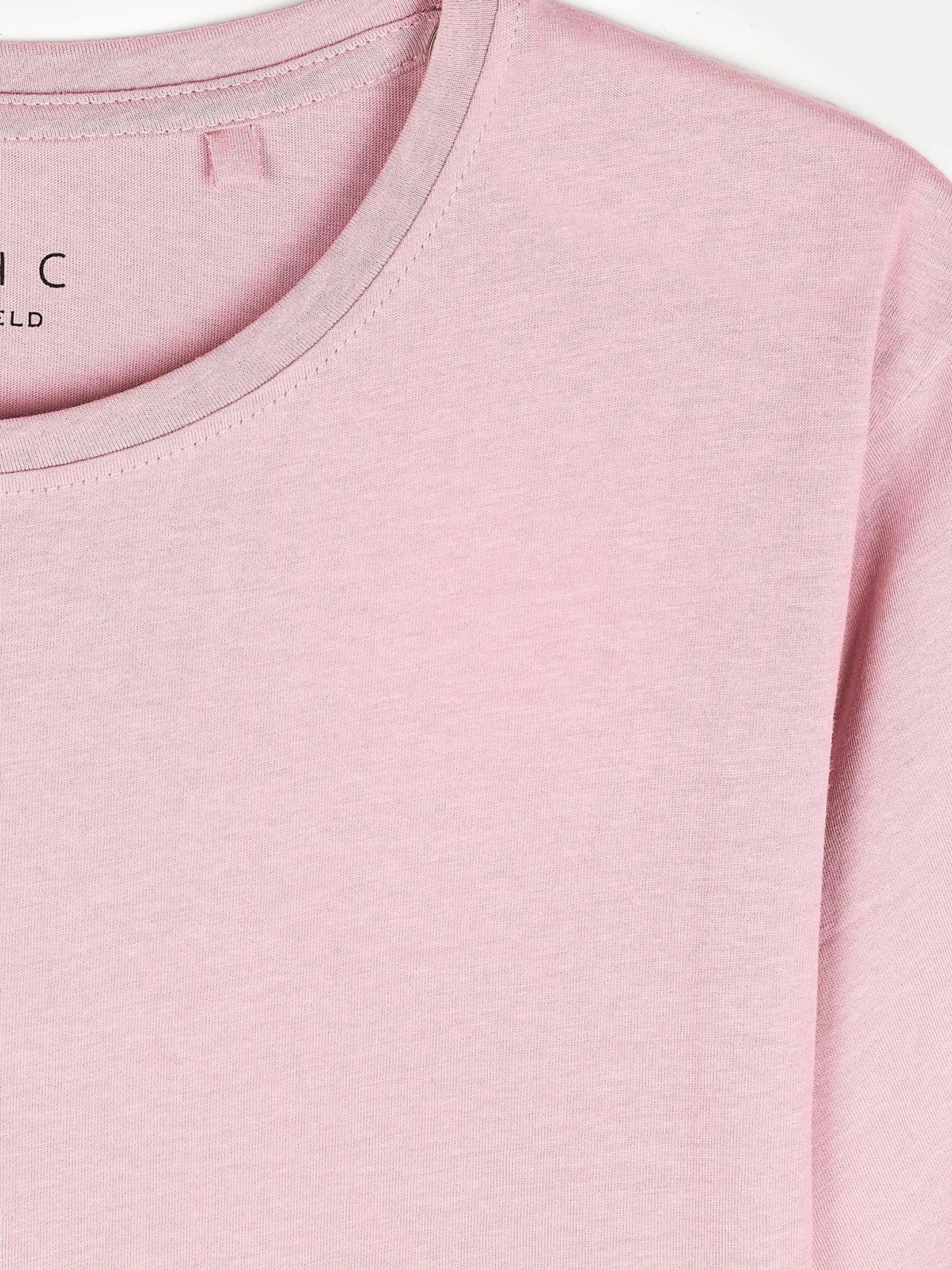 Zdjęcia z modelką mogą nie odpowiadać rzeczywistemu kolorowi produktu.Kolor: różowyKrój: regularTyp: koszulkaReka…