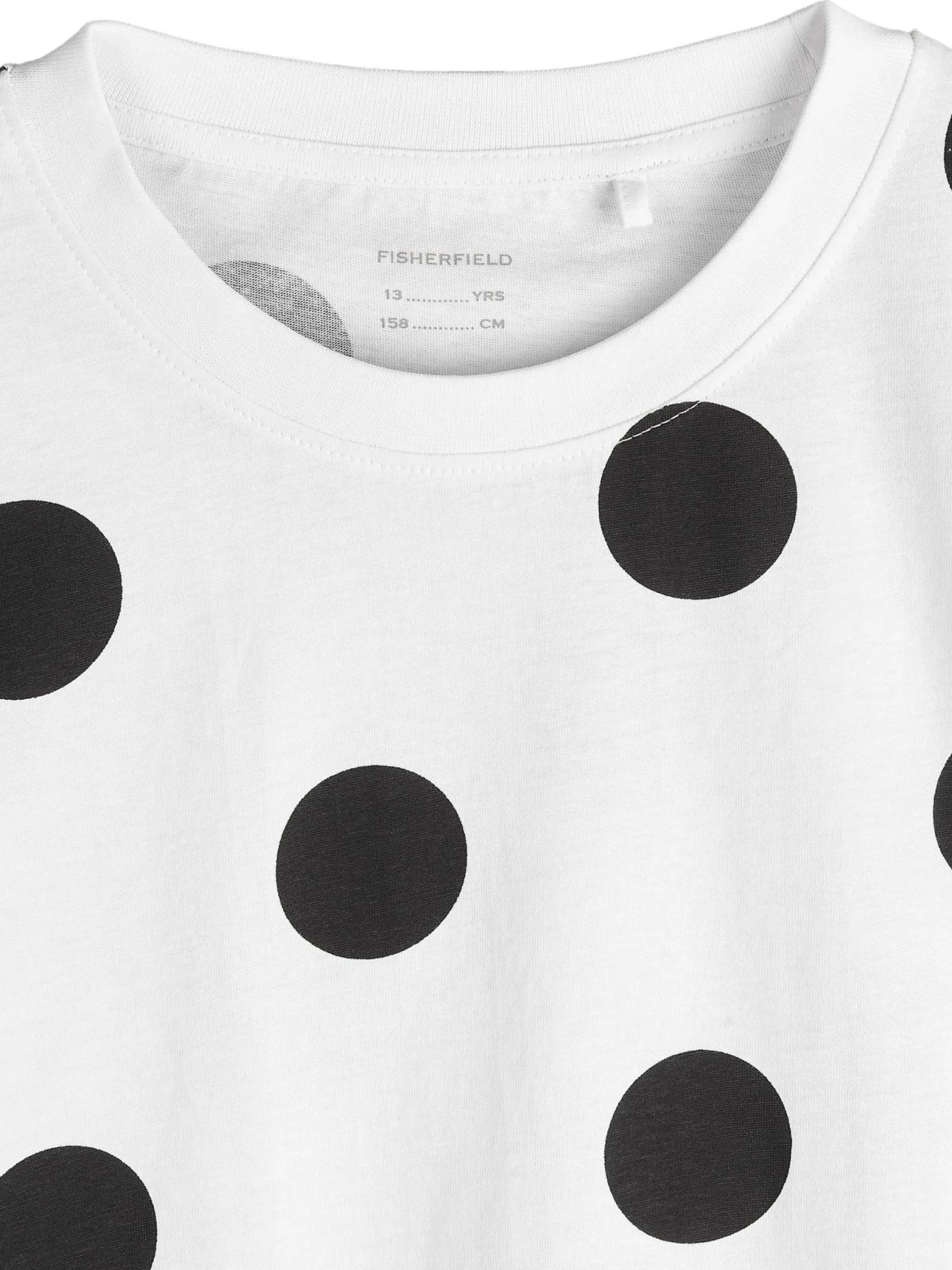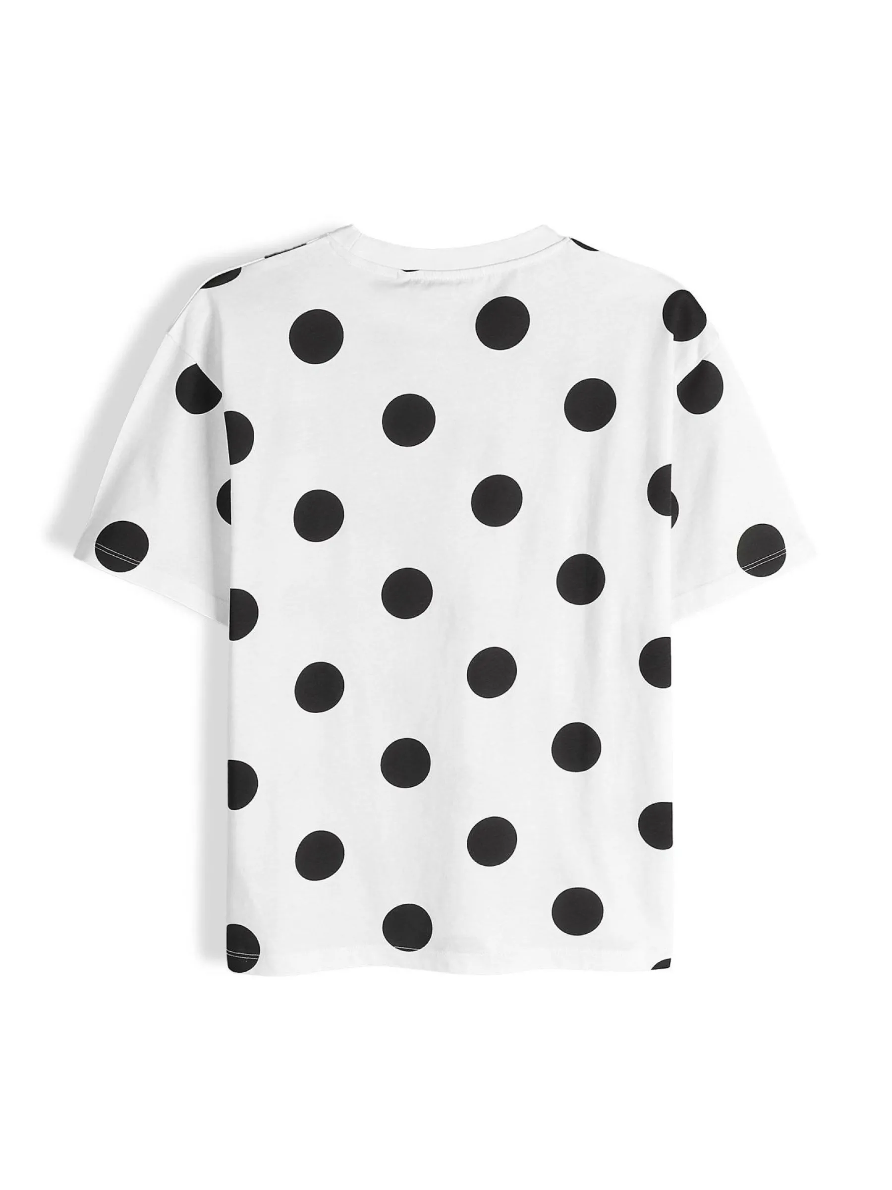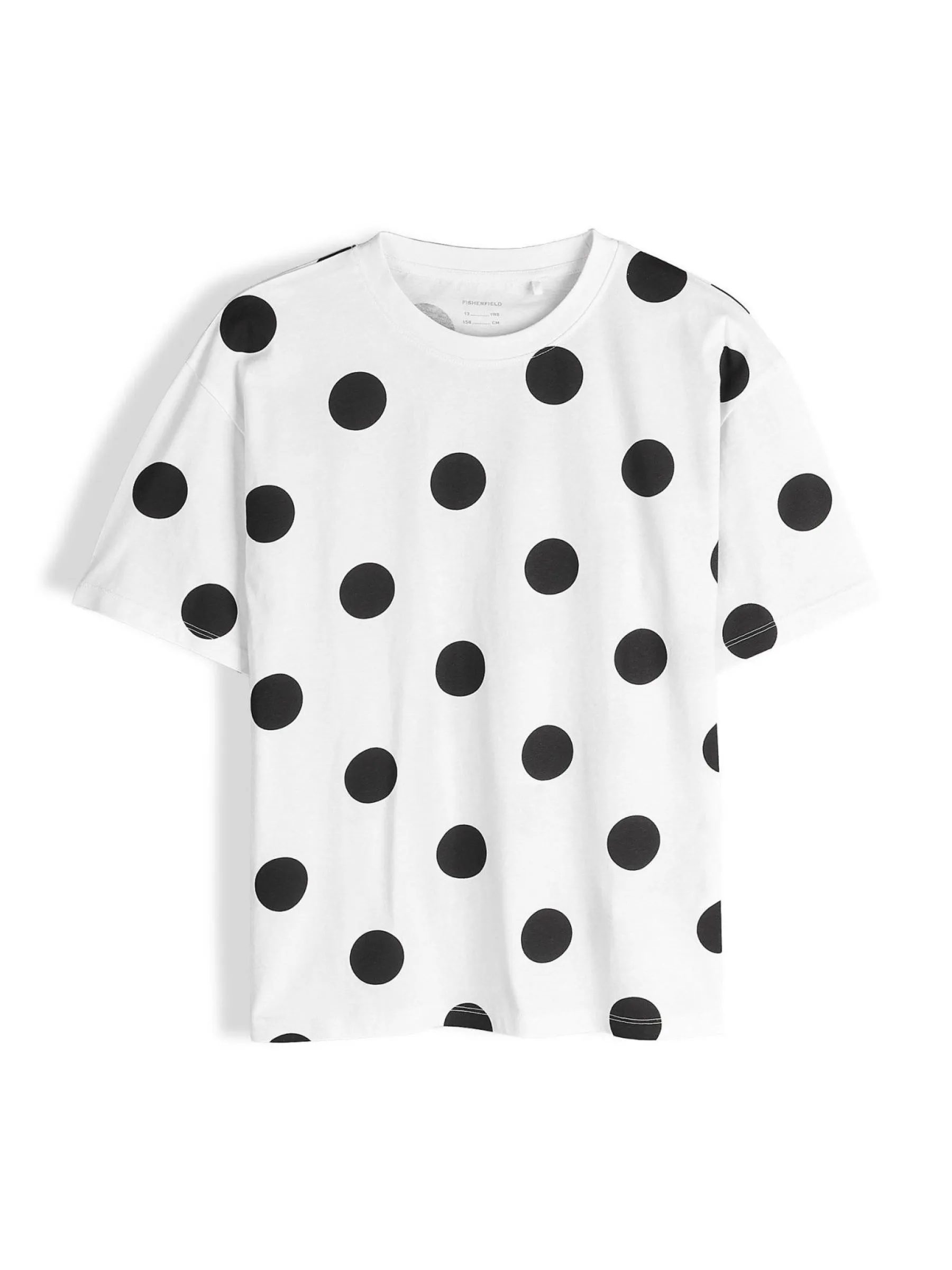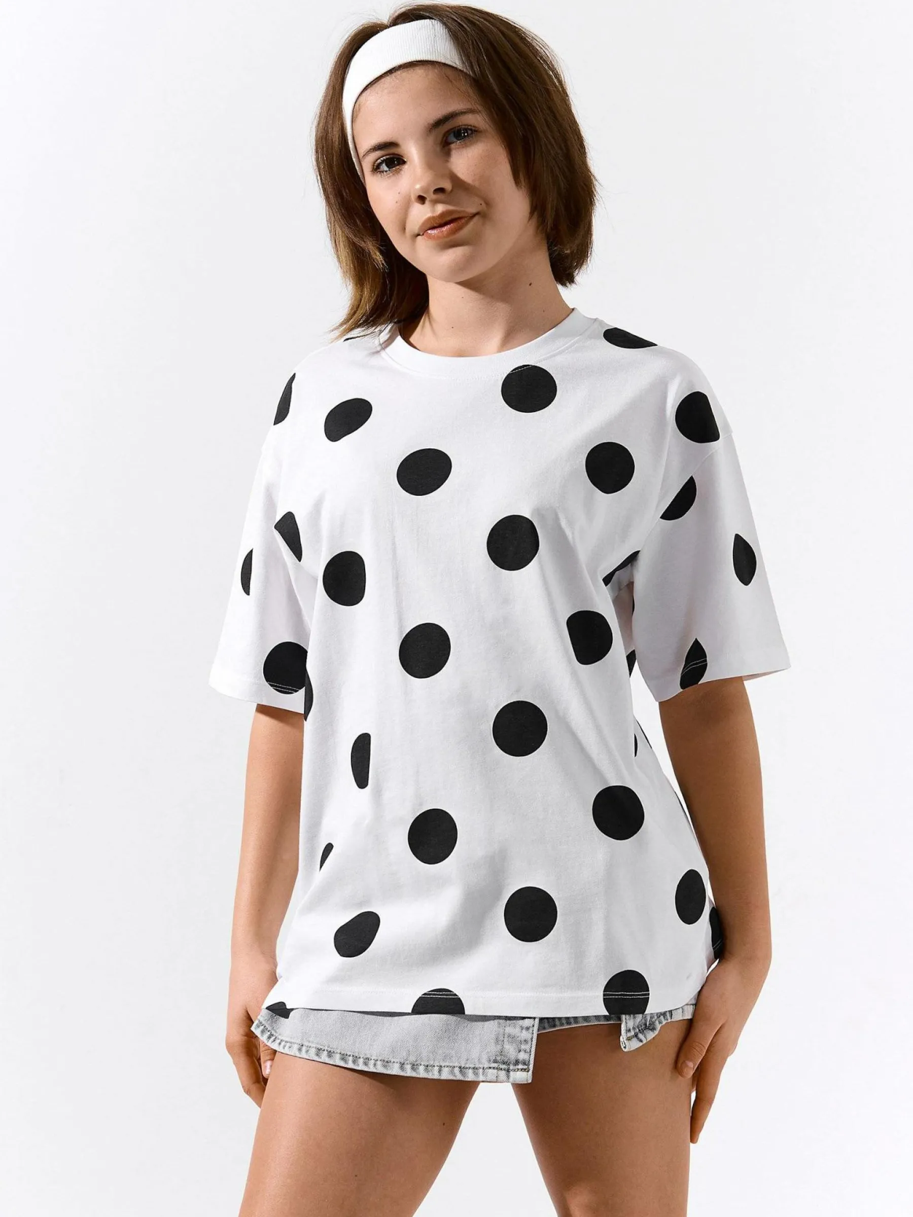 Kolor: czarnyKrój: oversizedTyp: koszulkaRekaw: krótki rękawDługość: krótkiPattern style: w grochyDetal: nad gło…