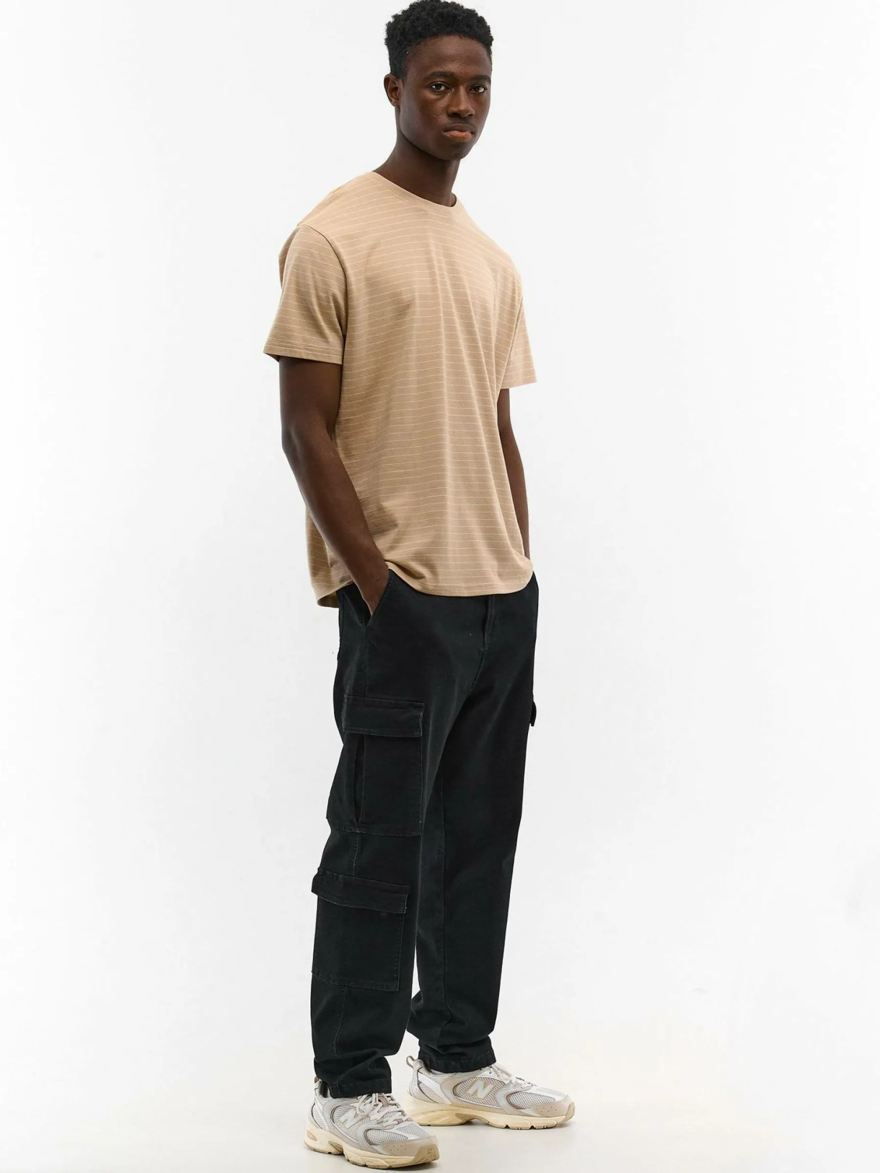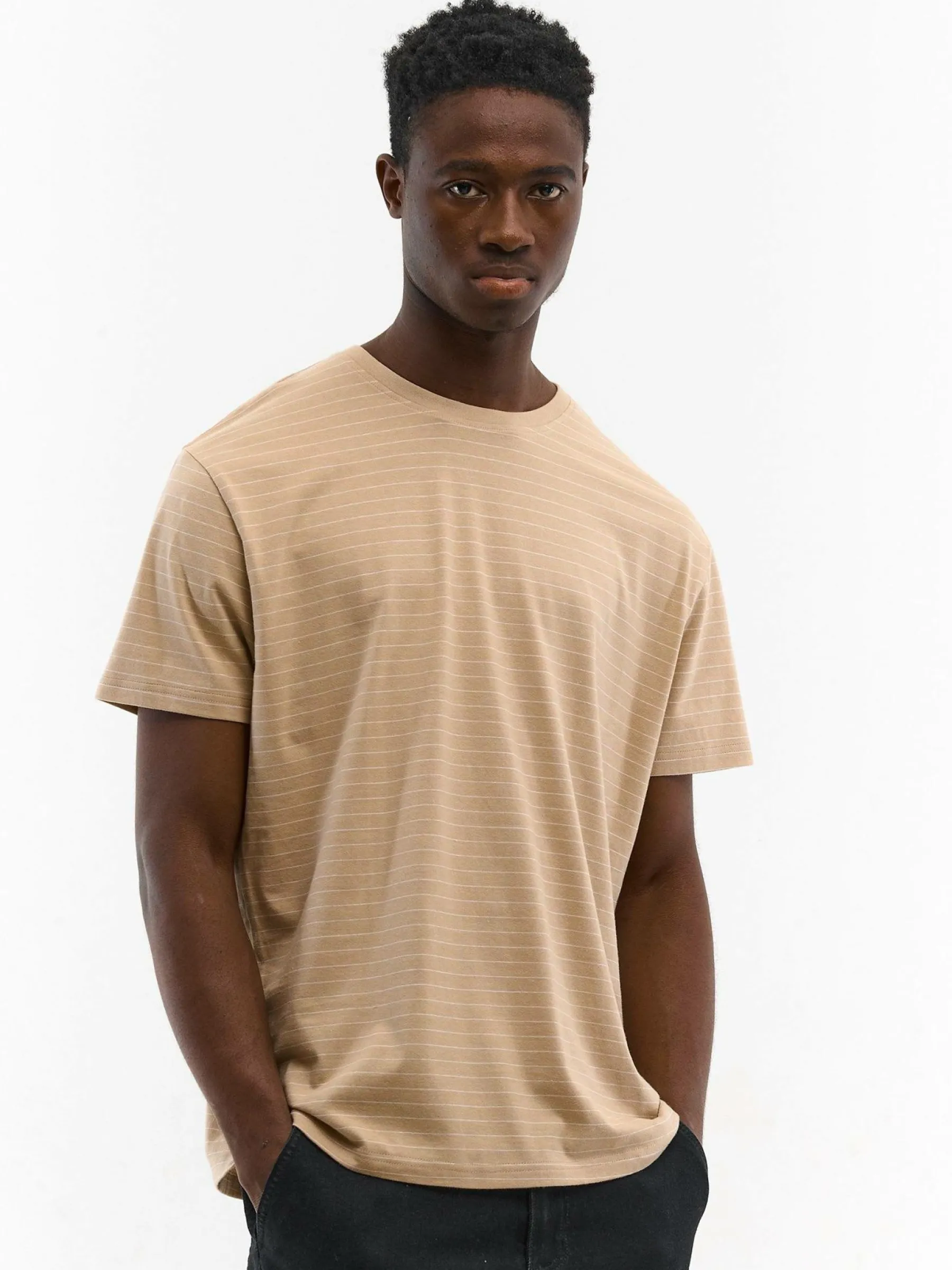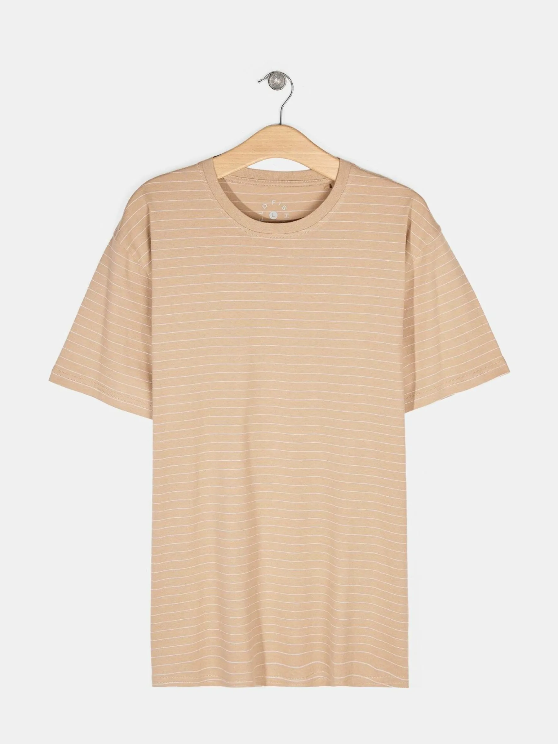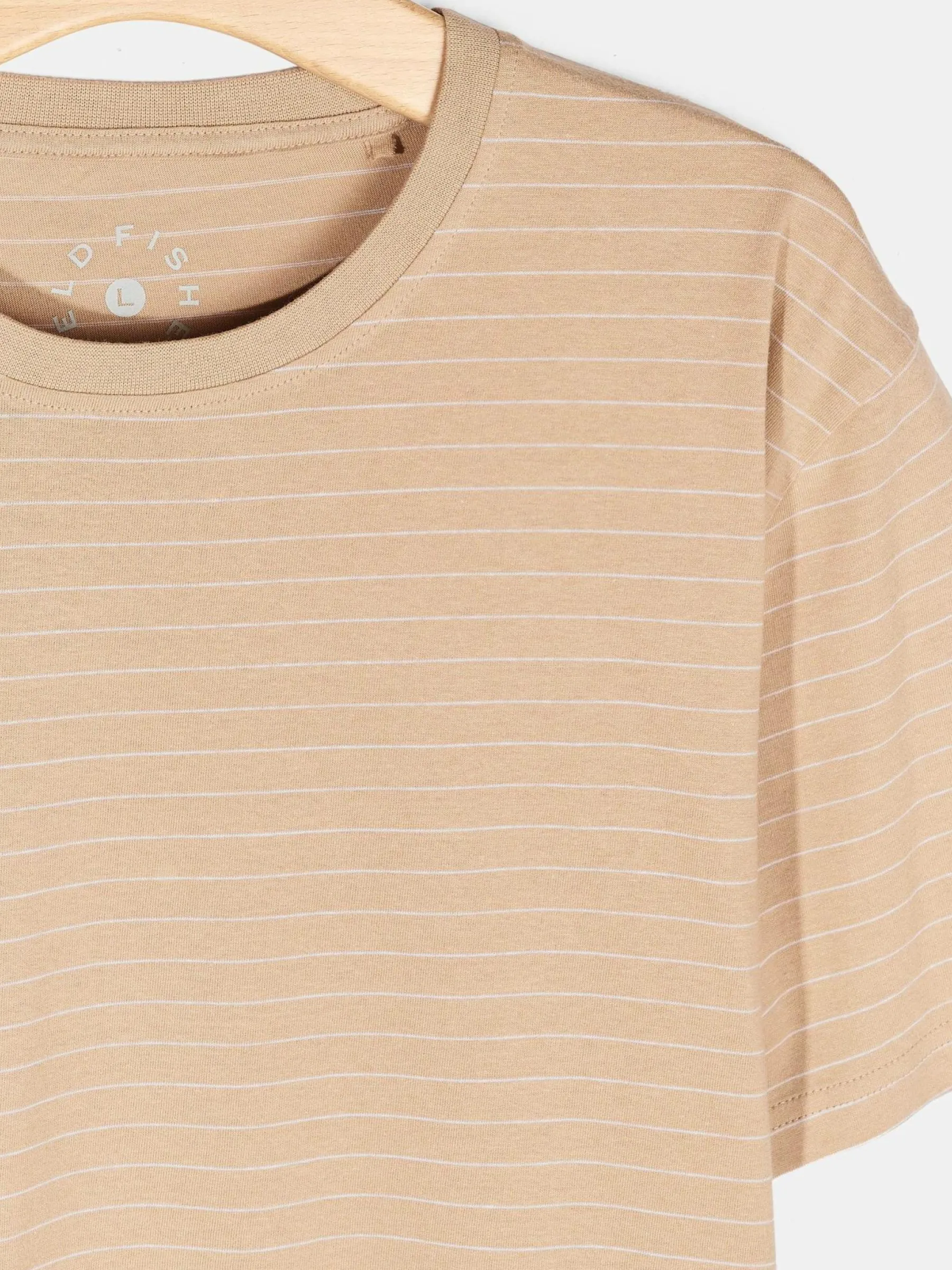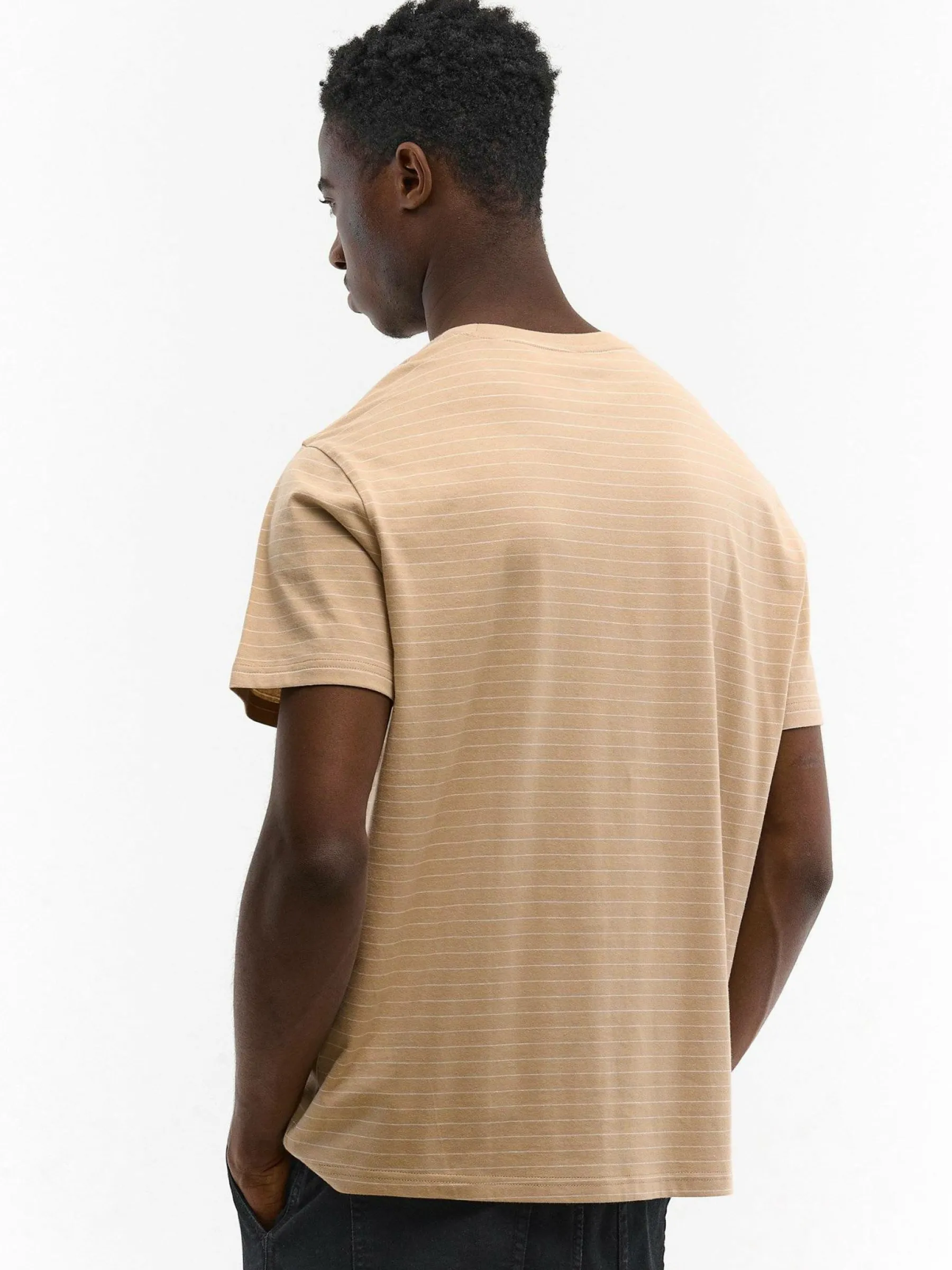 Kolor: beżowy, brązowyKrój: regularTyp: koszulkaRekaw: krótki rękawPattern style: w prążkiDetal: nad głowąMater…