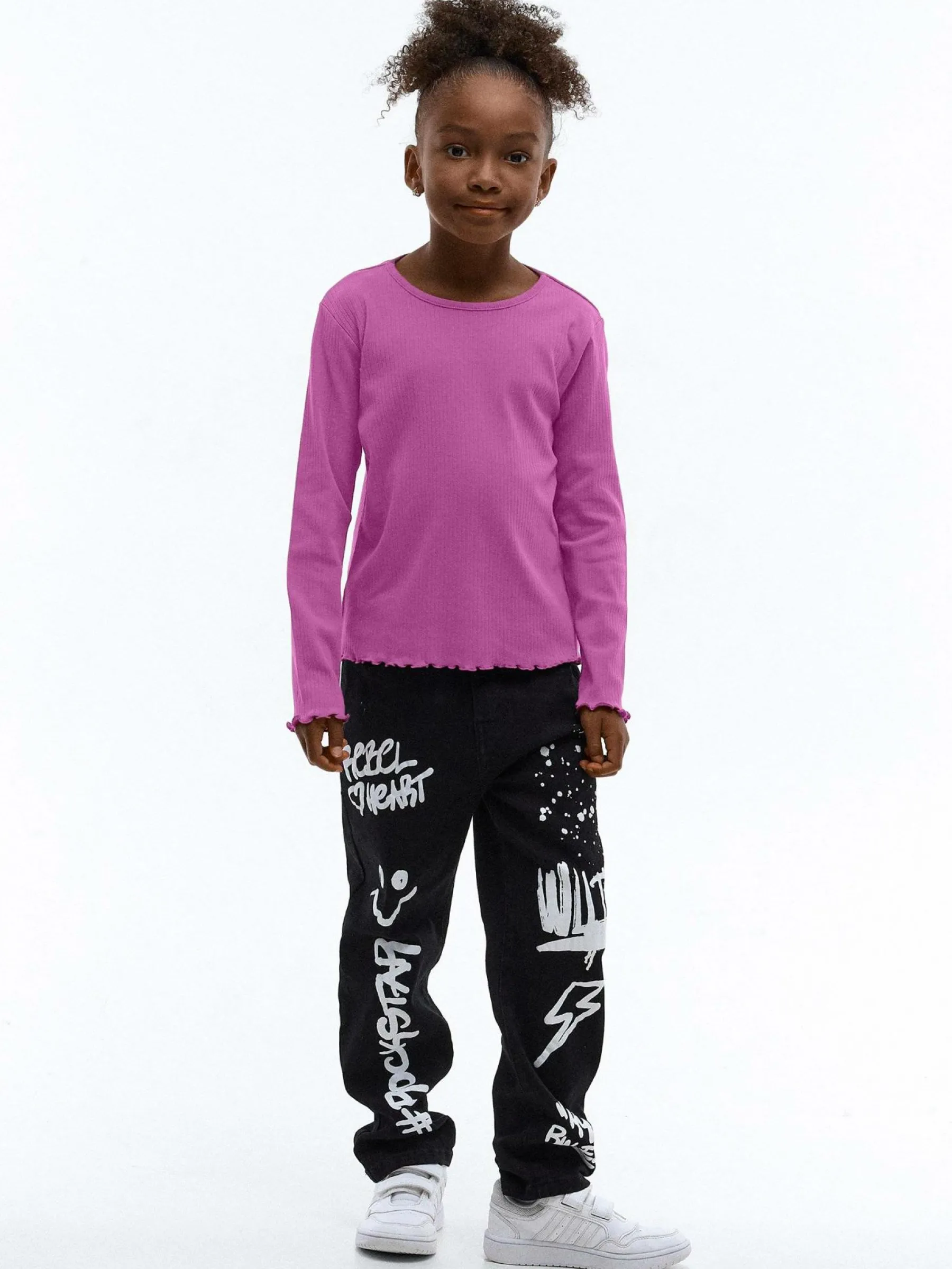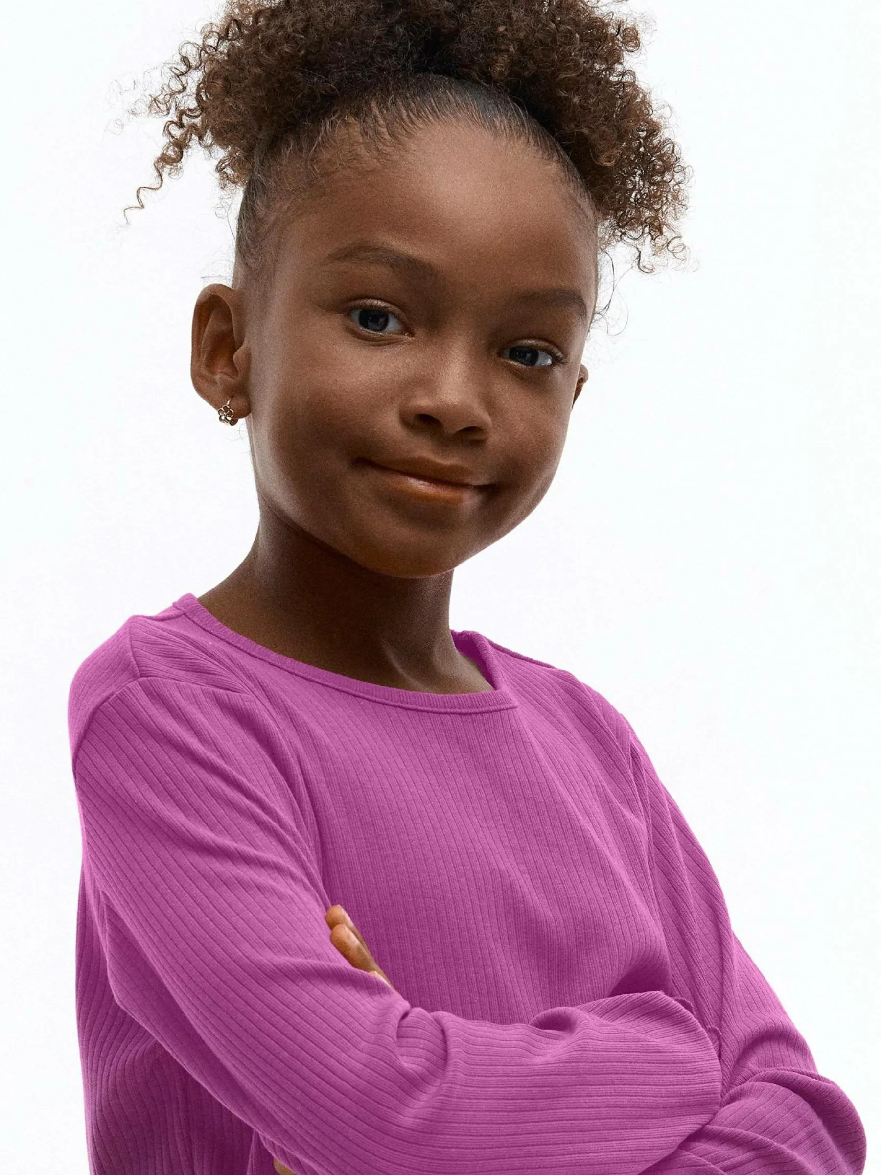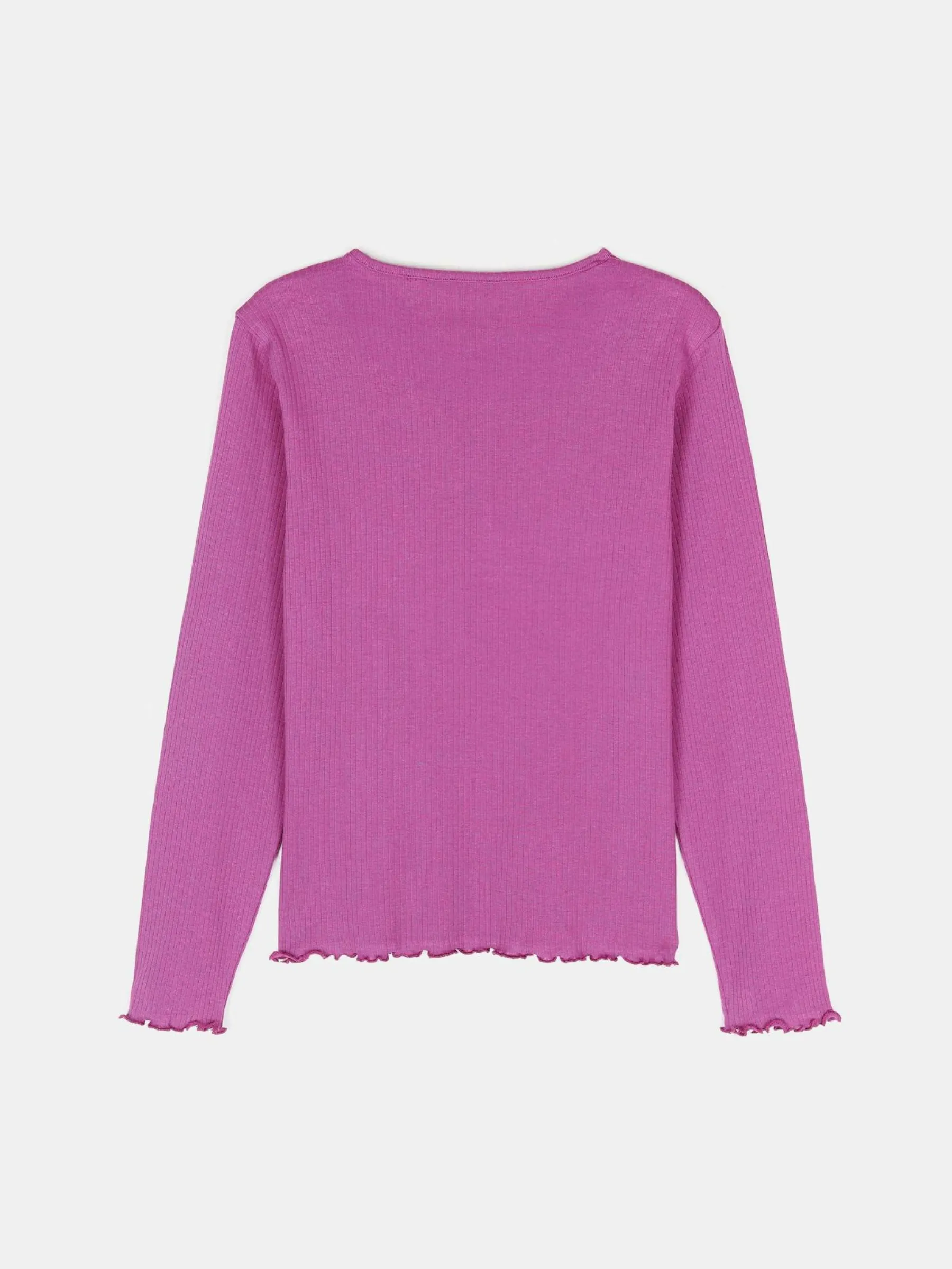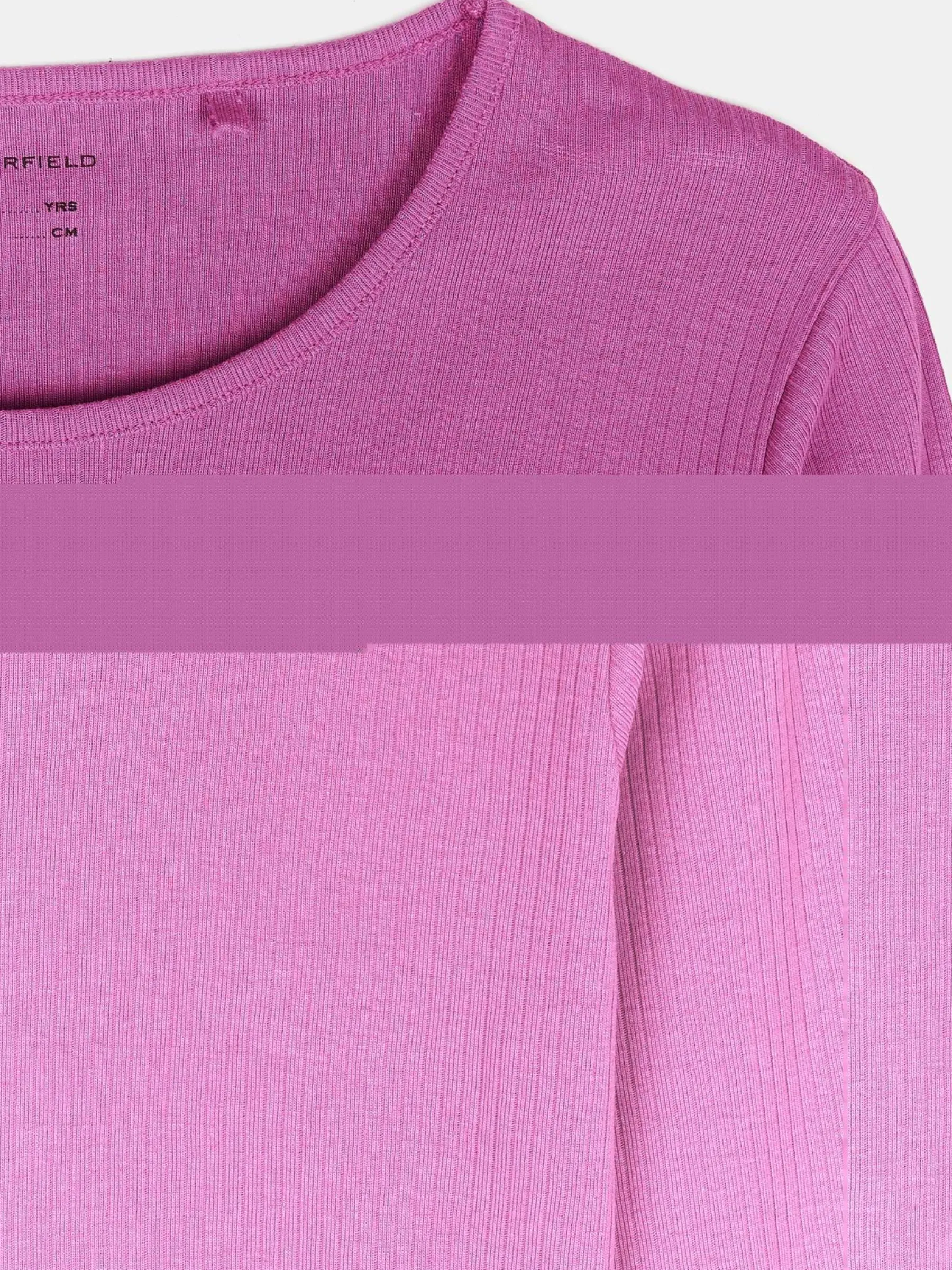 Kolor: purpurowyKrój: regularTyp: koszulkaRekaw: długi rękawDługość: krótkiPattern style: pojedynczy kolor, żebr…