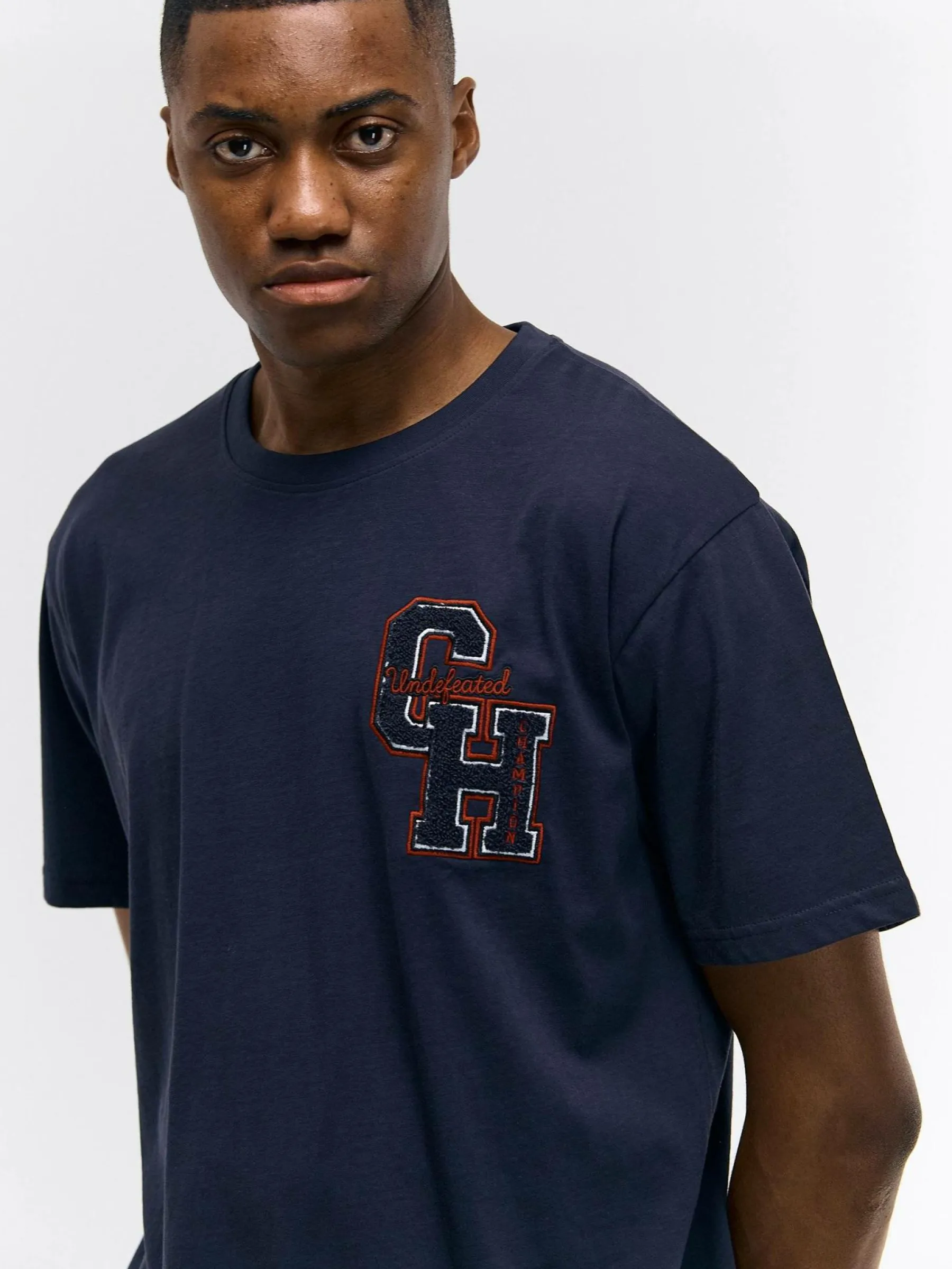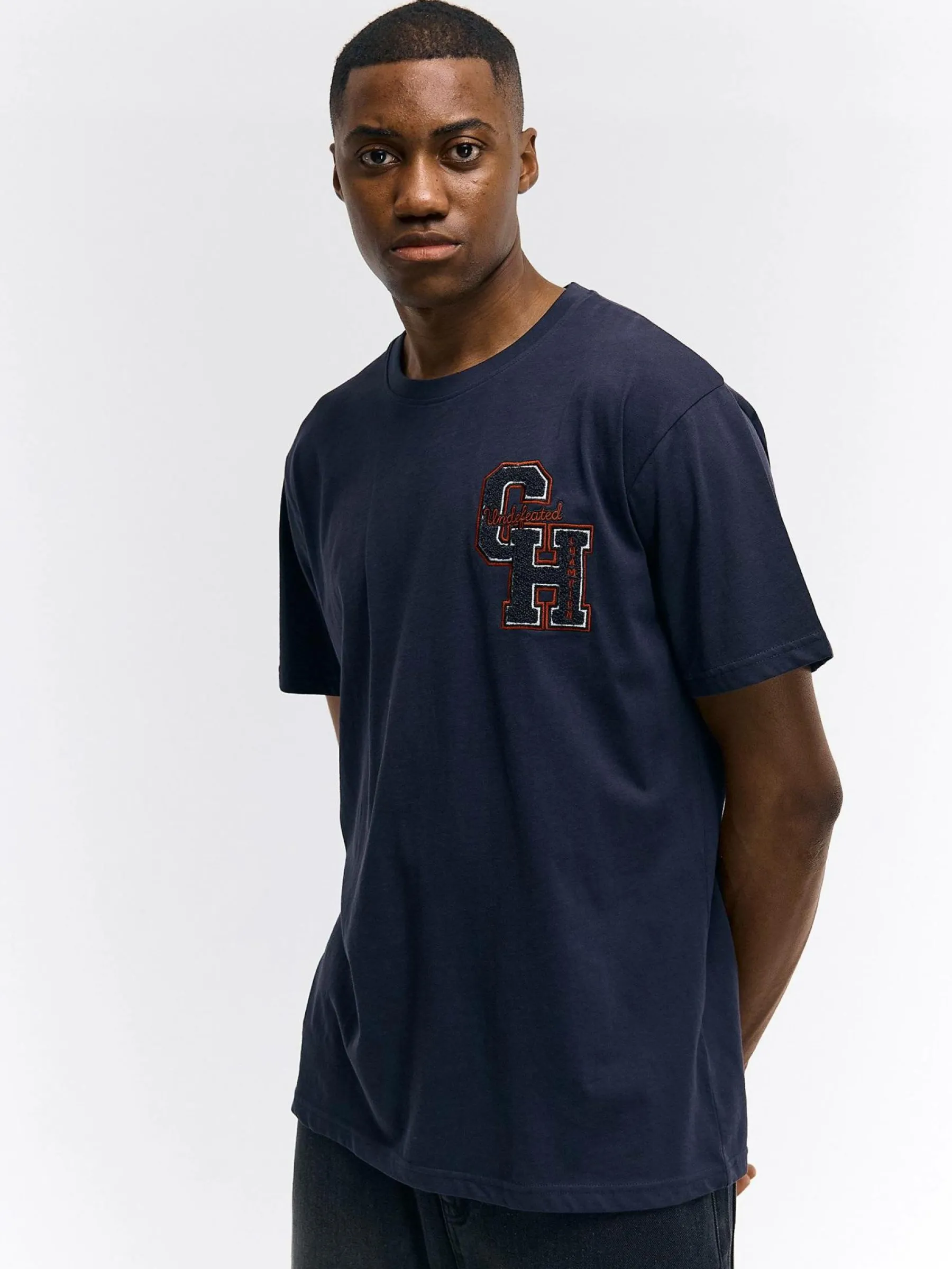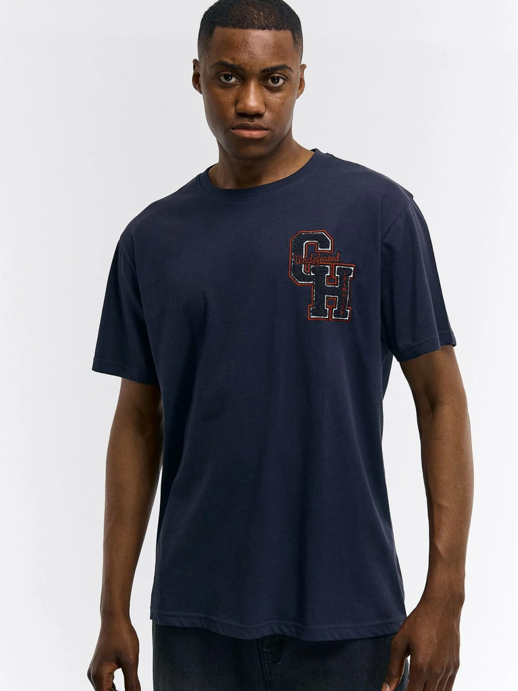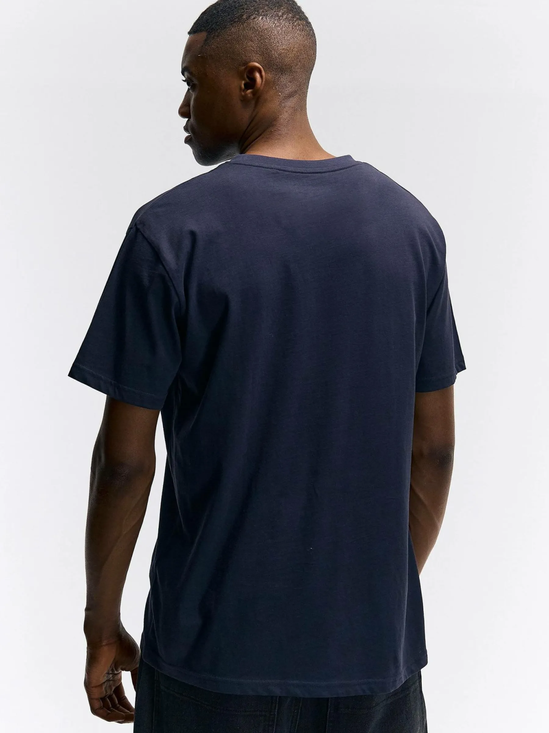 Kolor: granatowy, niebieskiKrój: regularTyp: koszulkaRekaw: krótki rękawPattern style: pojedynczy kolorDetal: nad gł…