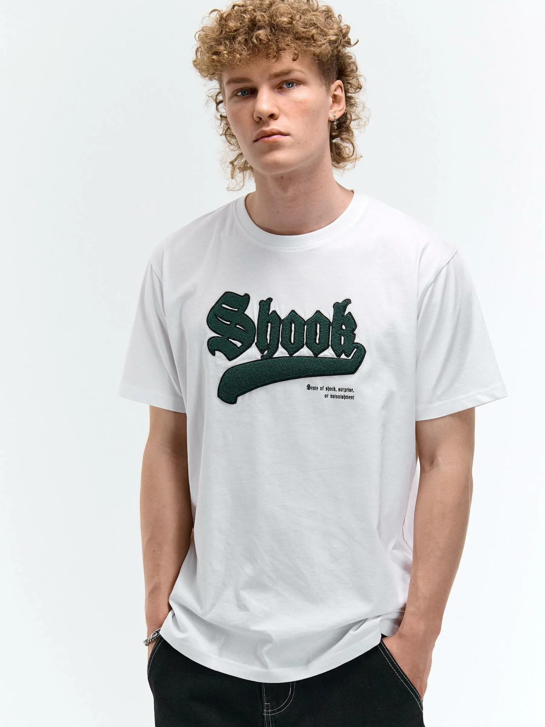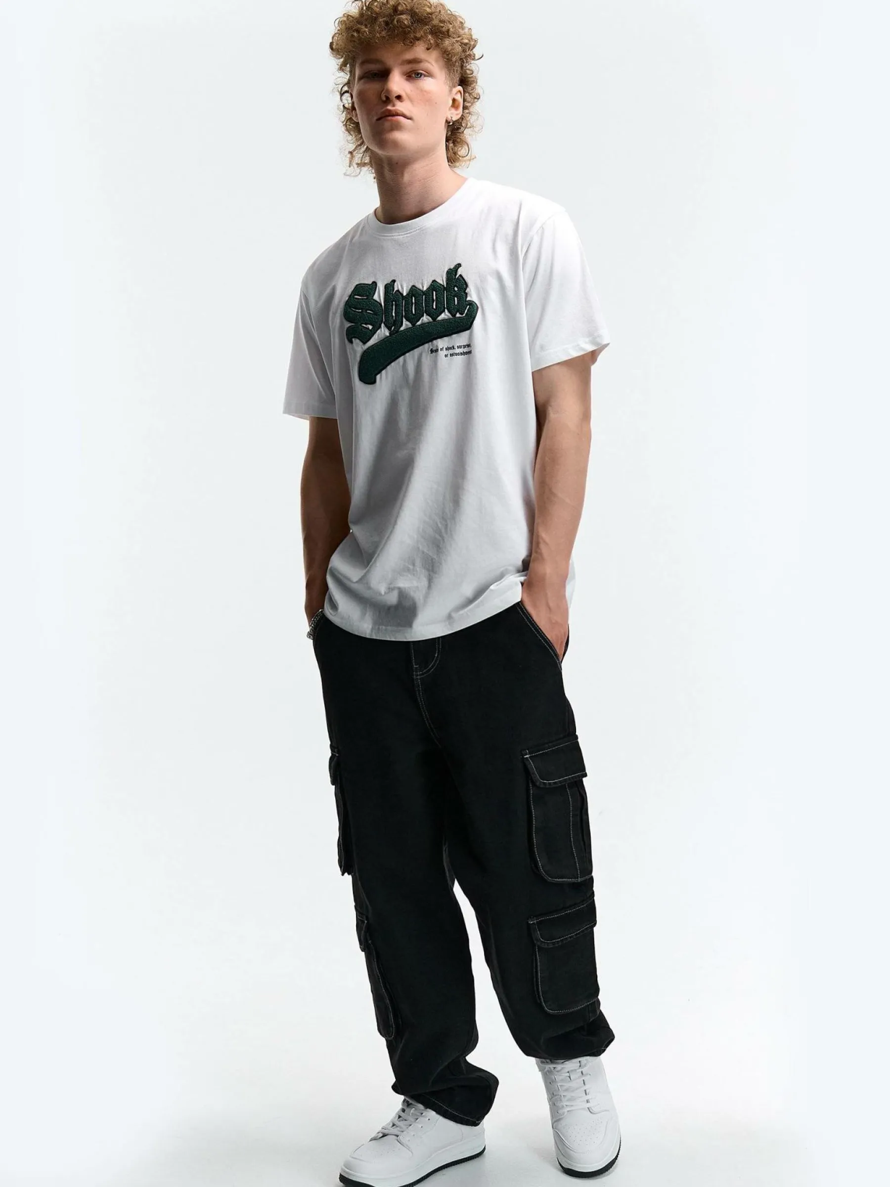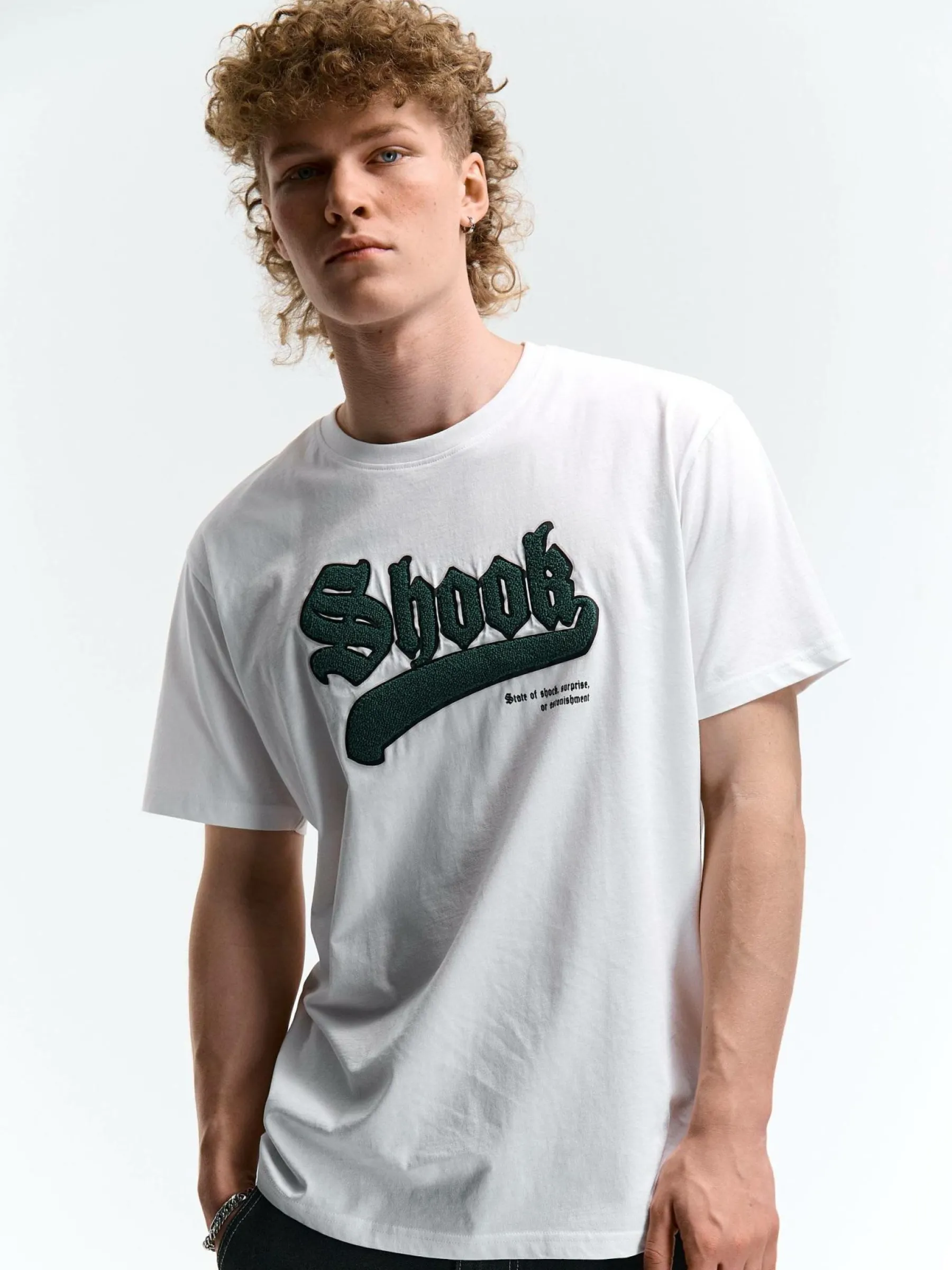 Kolor: białyKrój: regularTyp: koszulkaRekaw: krótki rękawPattern style: z napisemDetal: nad głowąMateriał: baweł…
