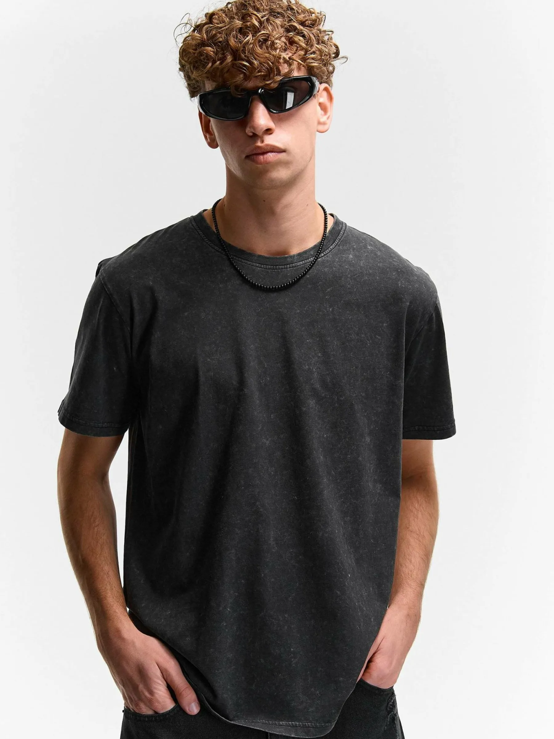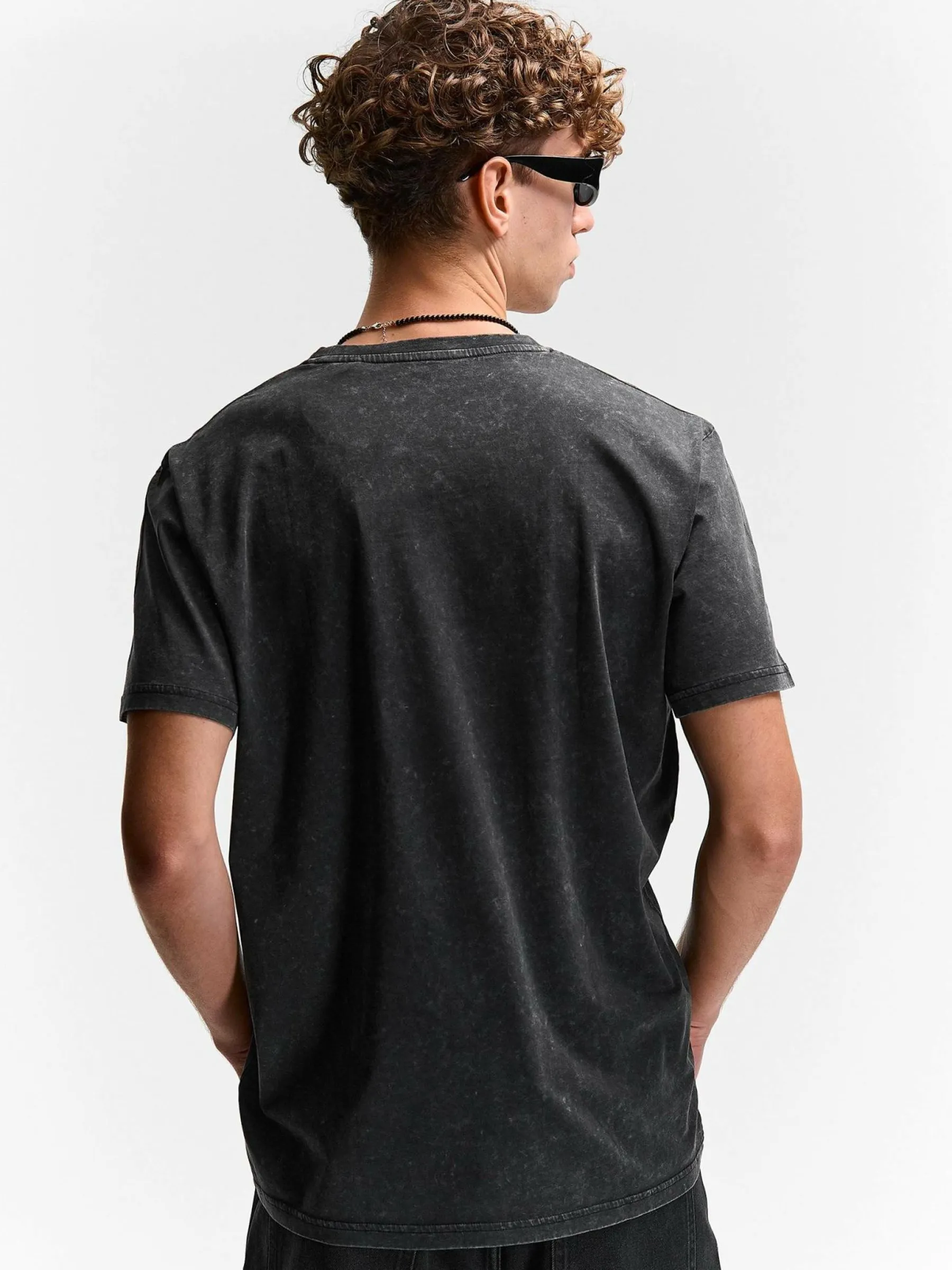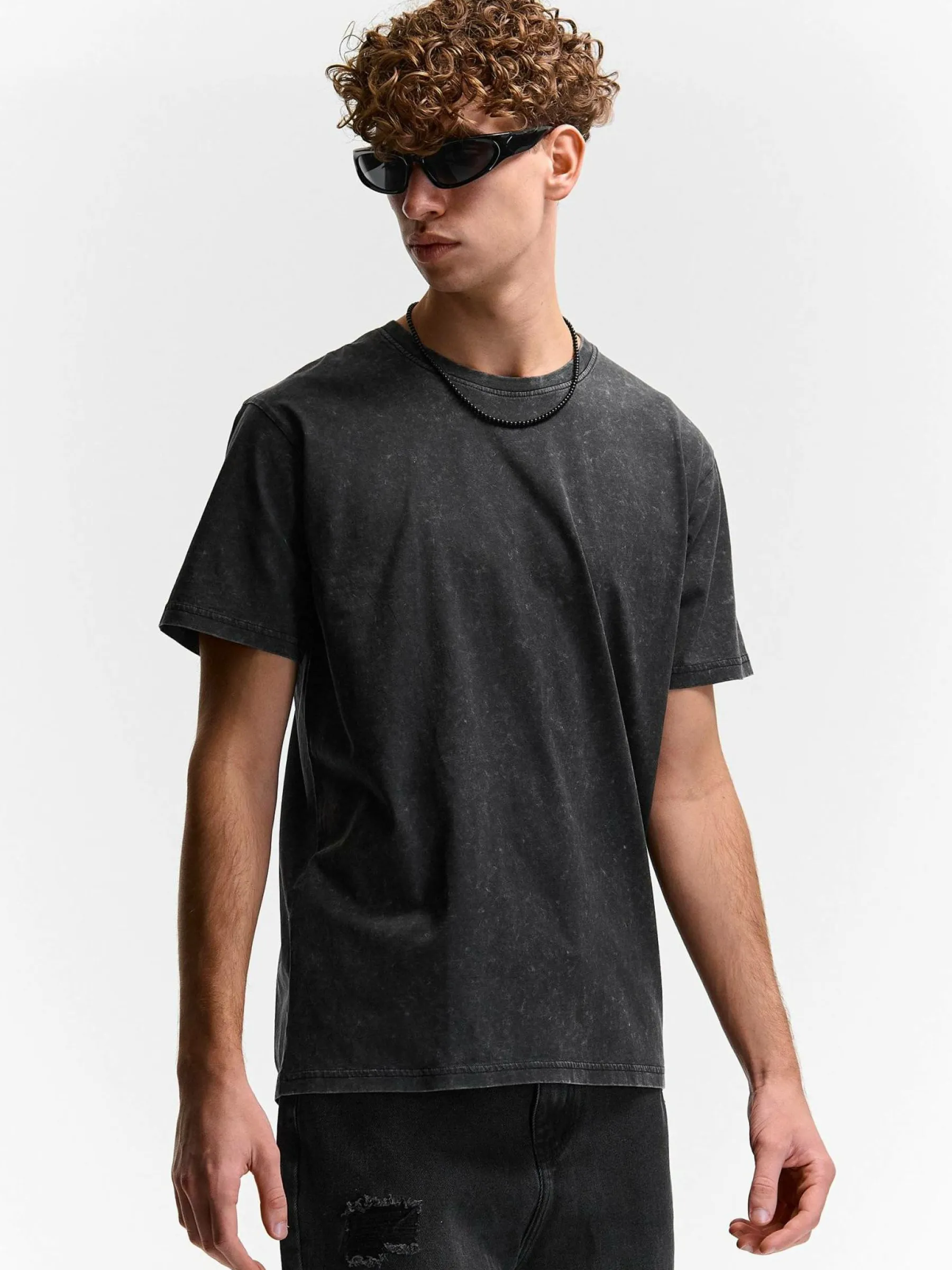 Kolor: czarnyKrój: regularTyp: koszulkaRekaw: krótki rękawPattern style: pojedynczy kolorDetal: nad głowąMateriał:…