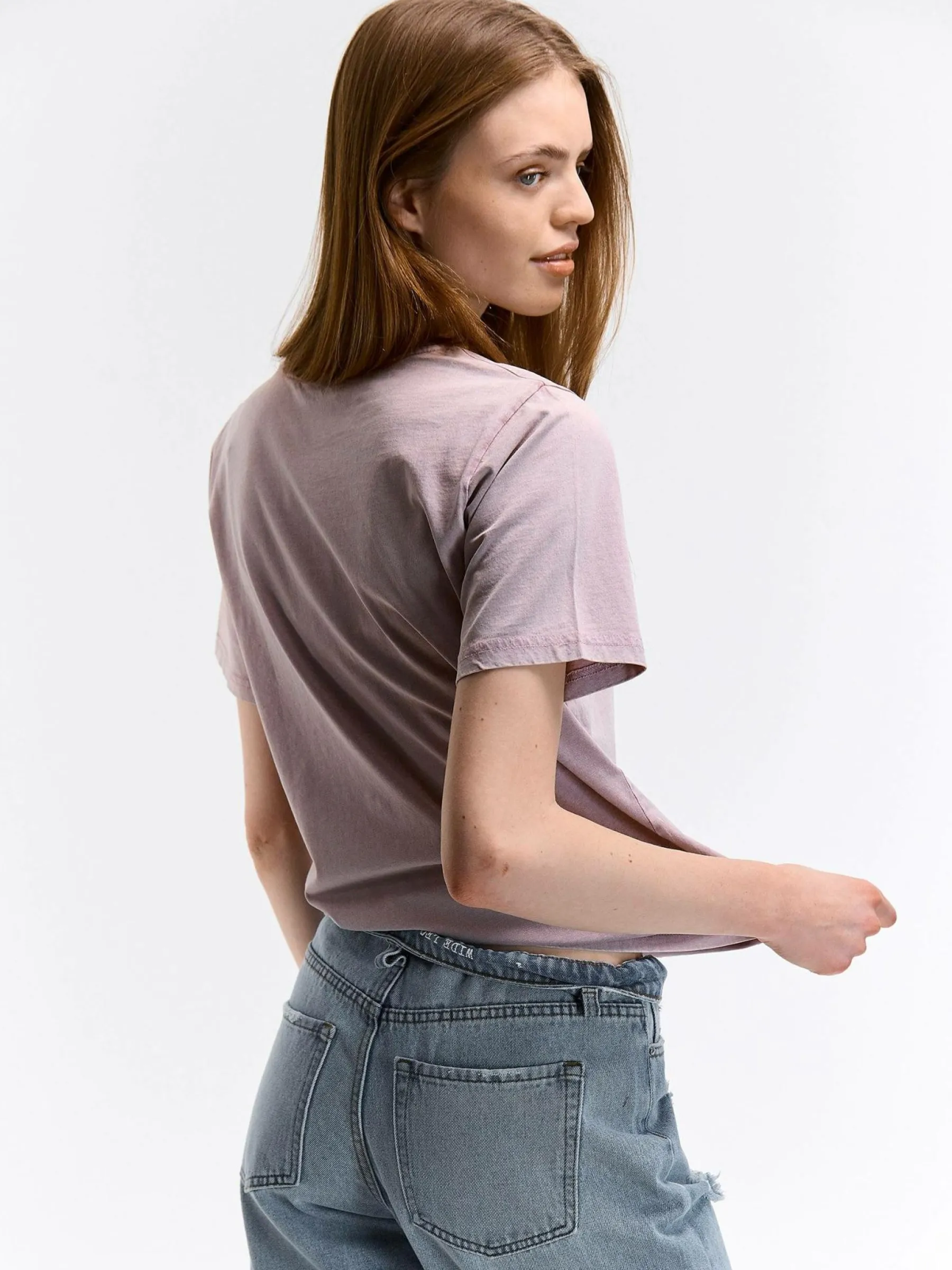 Kolor: purpurowyKrój: regularTyp: koszulkaRekaw: krótki rękawDługość: krótkiPattern style: pojedynczy kolorDetal:…