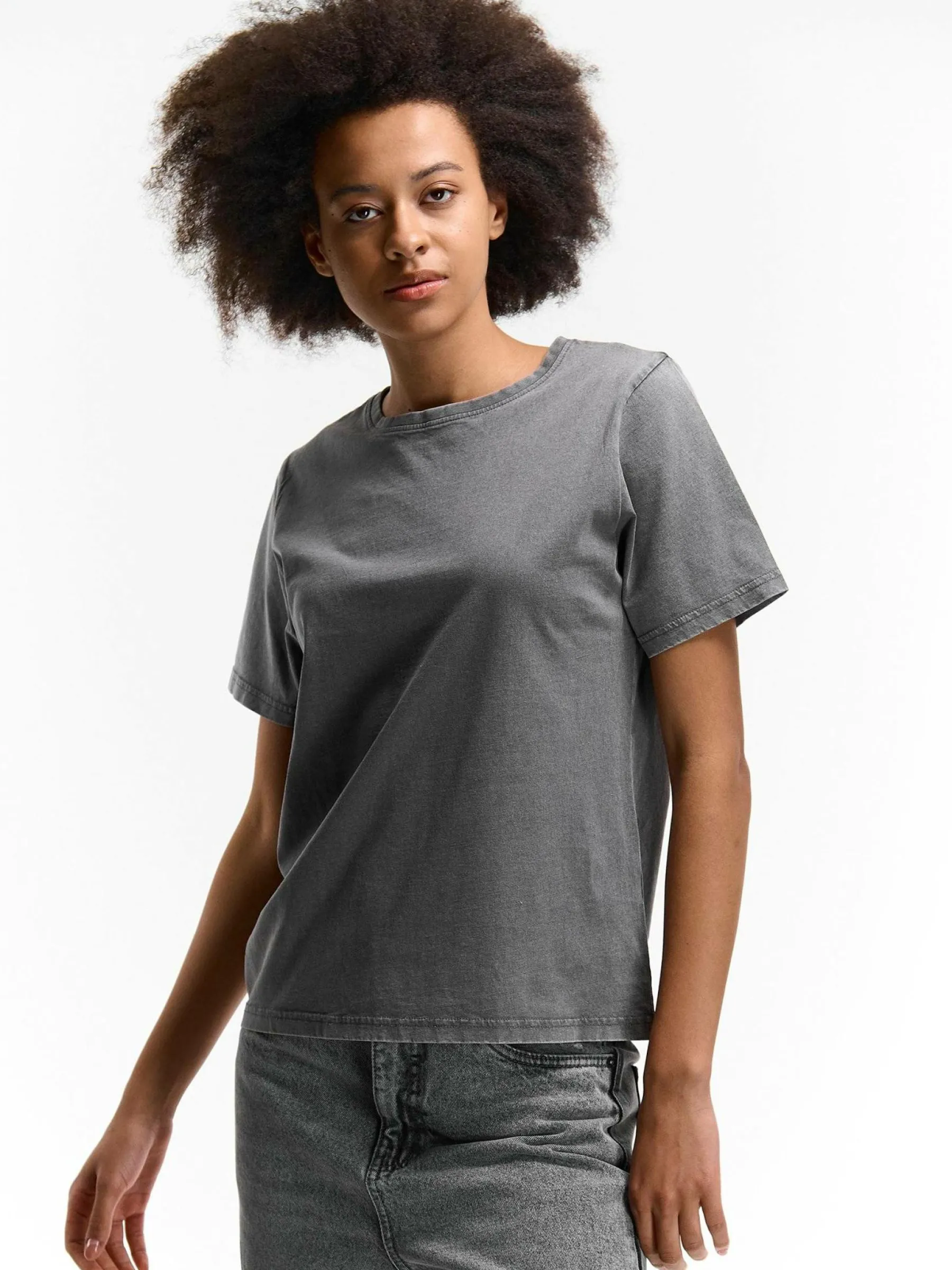 Kolor: szaryKrój: podstawowyTyp: koszulkaRekaw: krótki rękawDługość: krótkiPattern style: pojedynczy kolorDetal: …