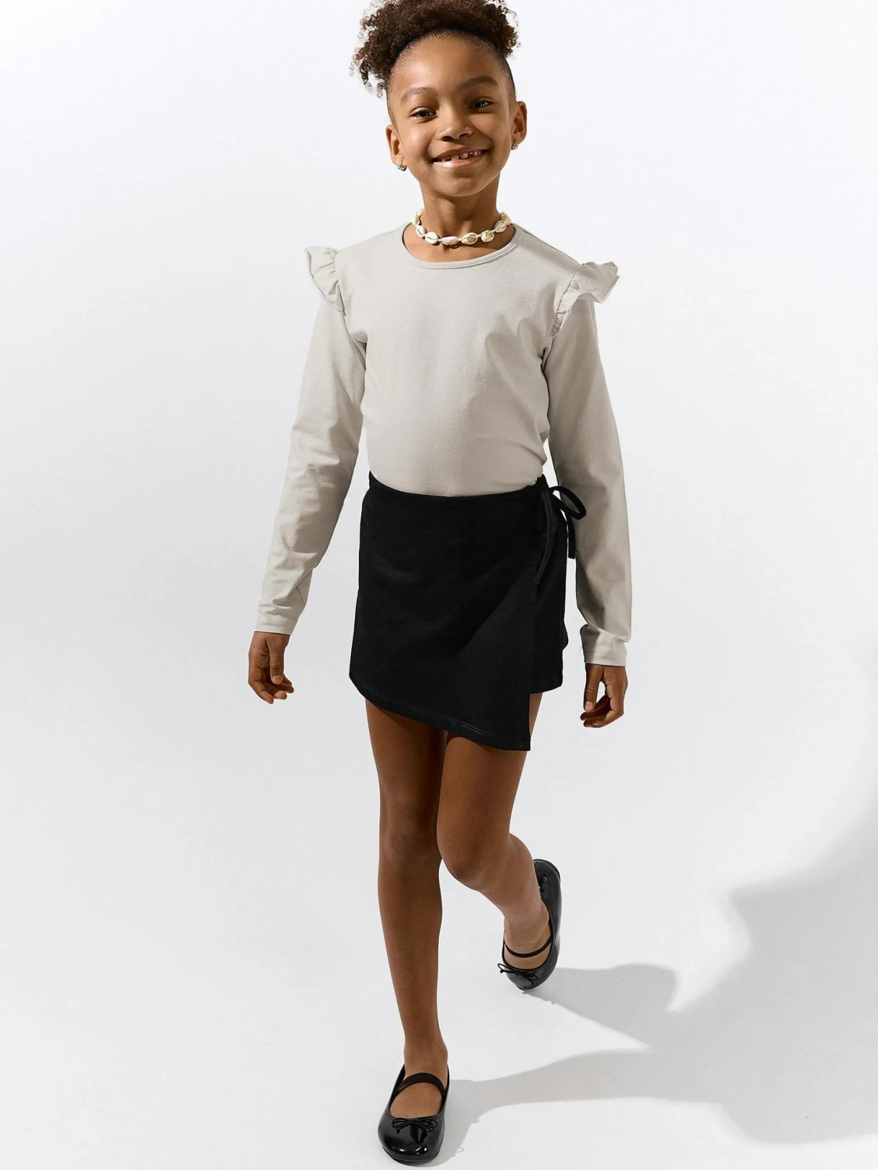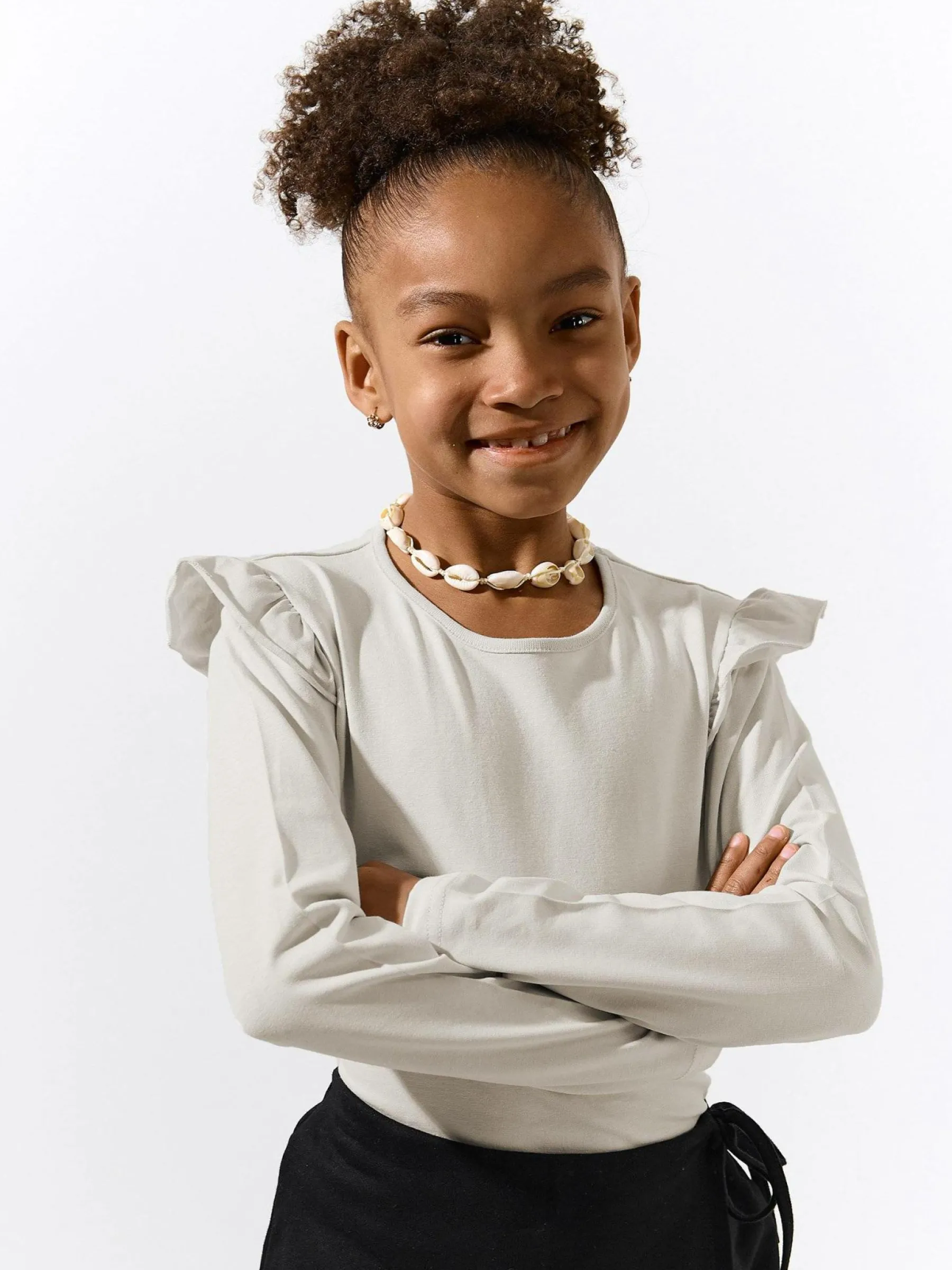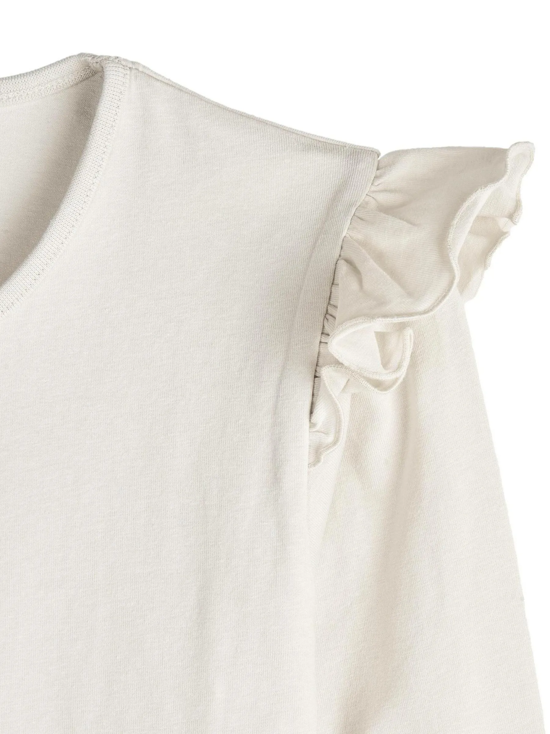 Kolor: beżowyKrój: z falbanąTyp: koszulkaRekaw: długi rękawDługość: krótkiPattern style: pojedynczy kolorDetal:…