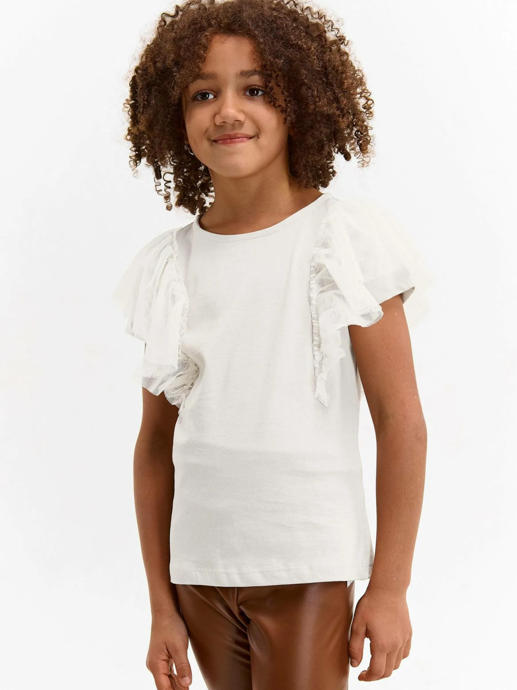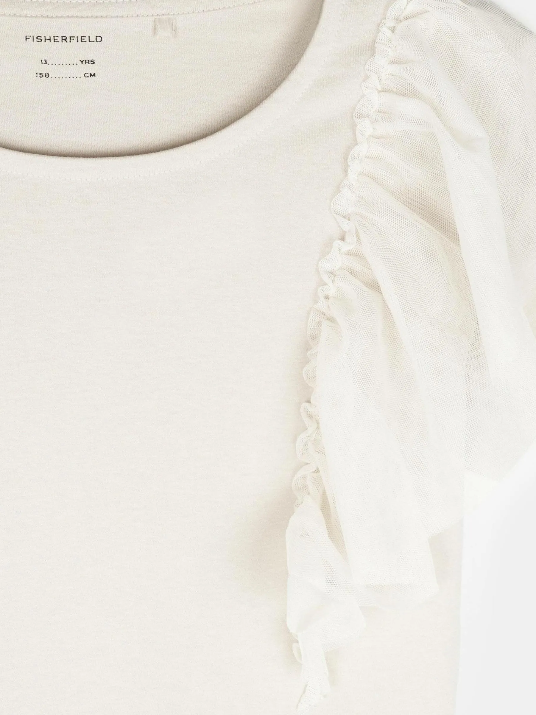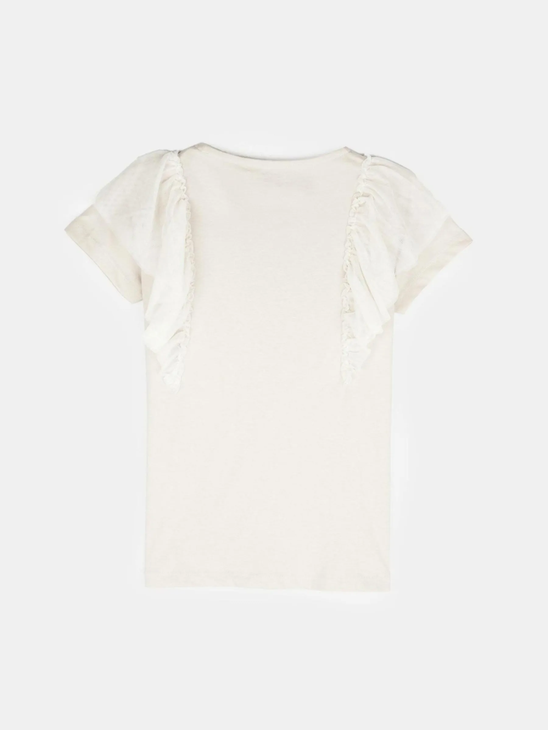 Zdjęcia z modelką mogą nie odpowiadać rzeczywistemu kolorowi produktu.Kolor: beżowyKrój: z falbanąTyp: koszulkaRe…