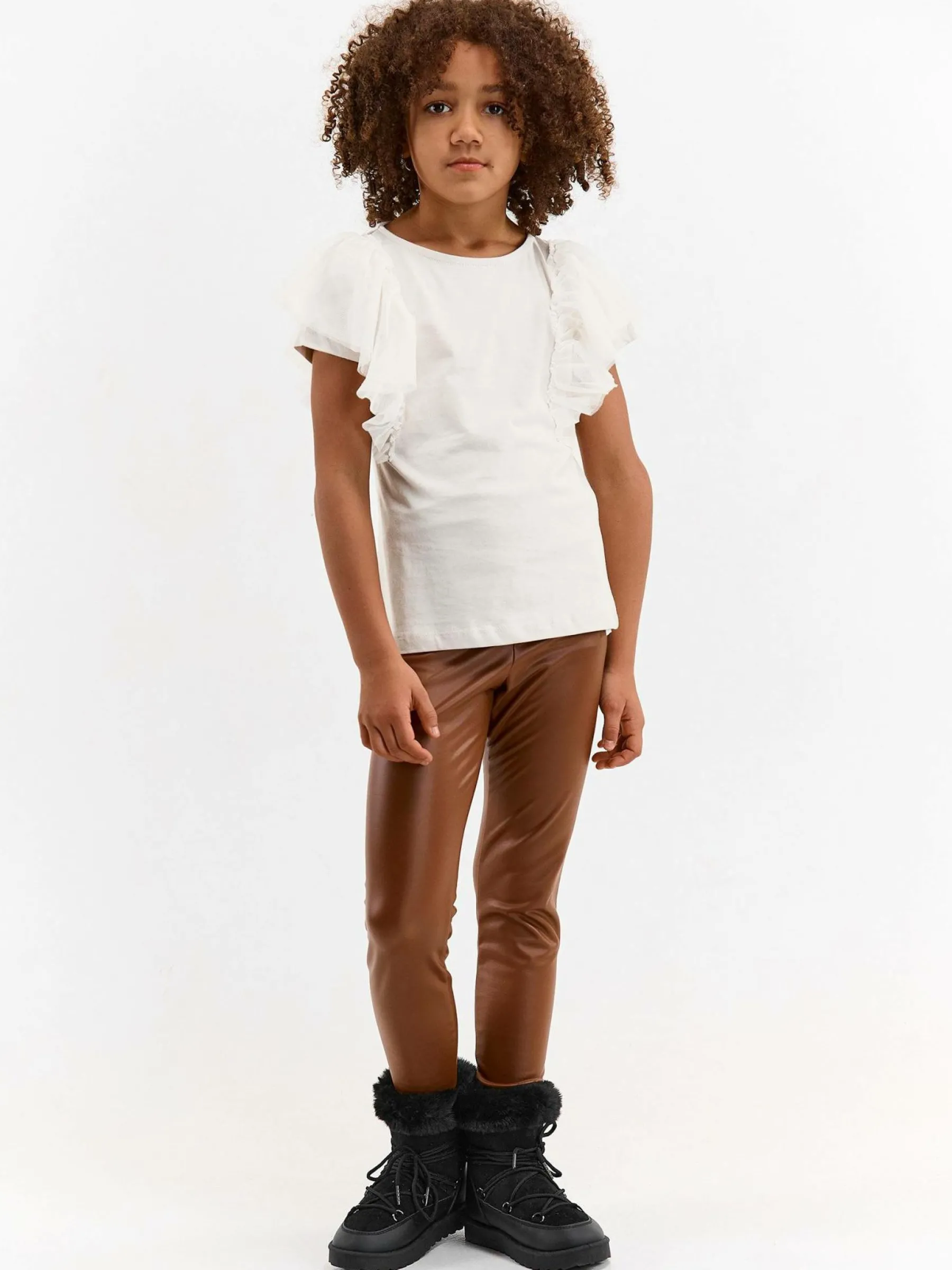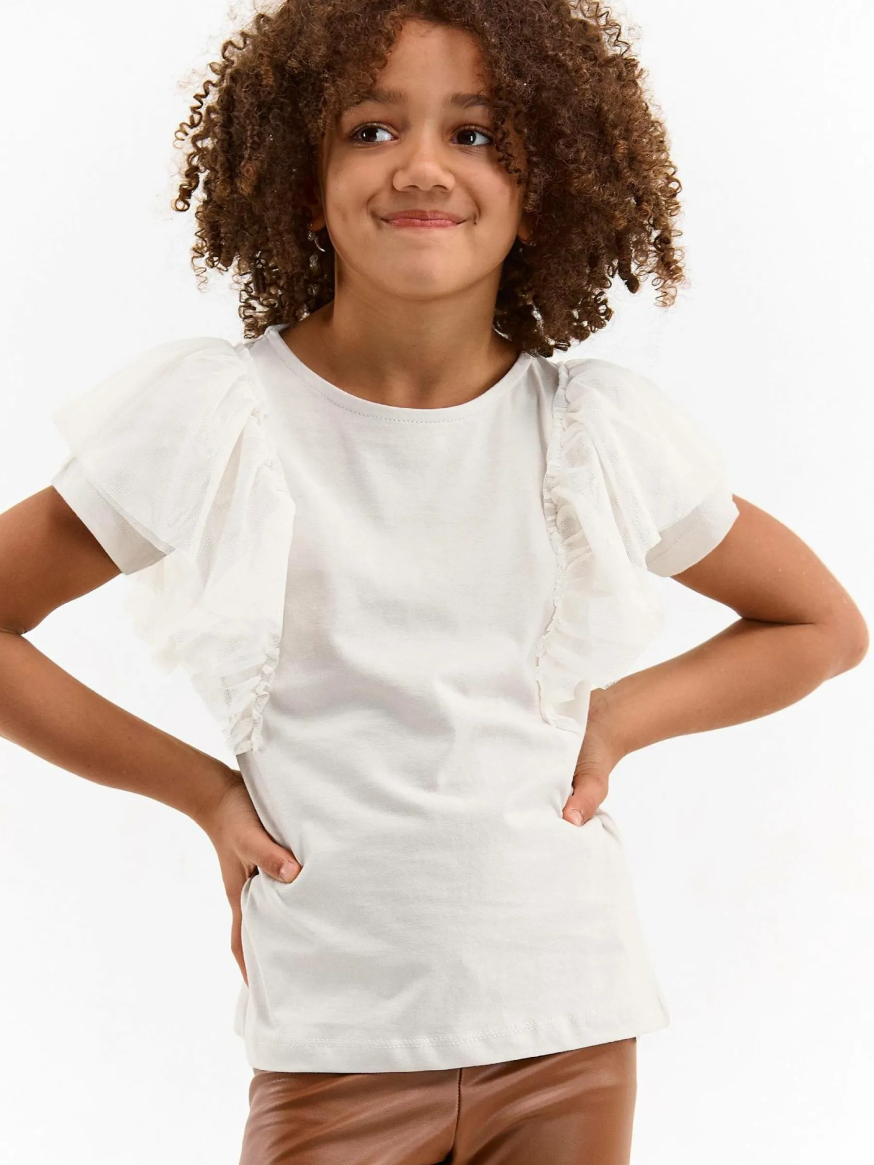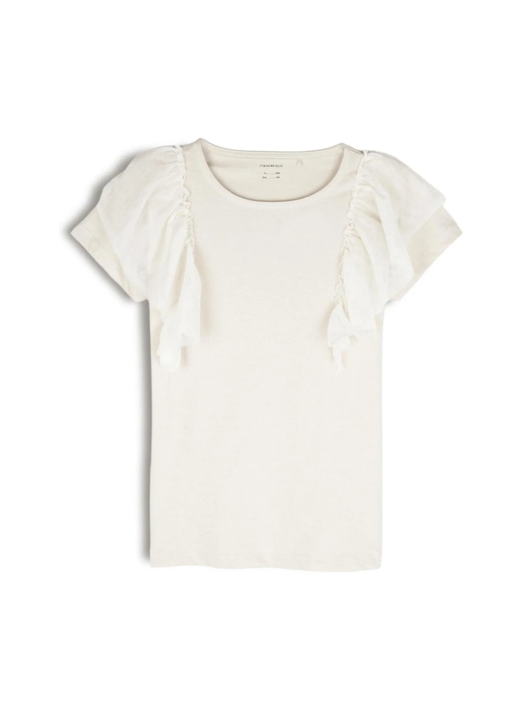 Zdjęcia z modelką mogą nie odpowiadać rzeczywistemu kolorowi produktu.Kolor: beżowyKrój: z falbanąTyp: koszulkaRe…
