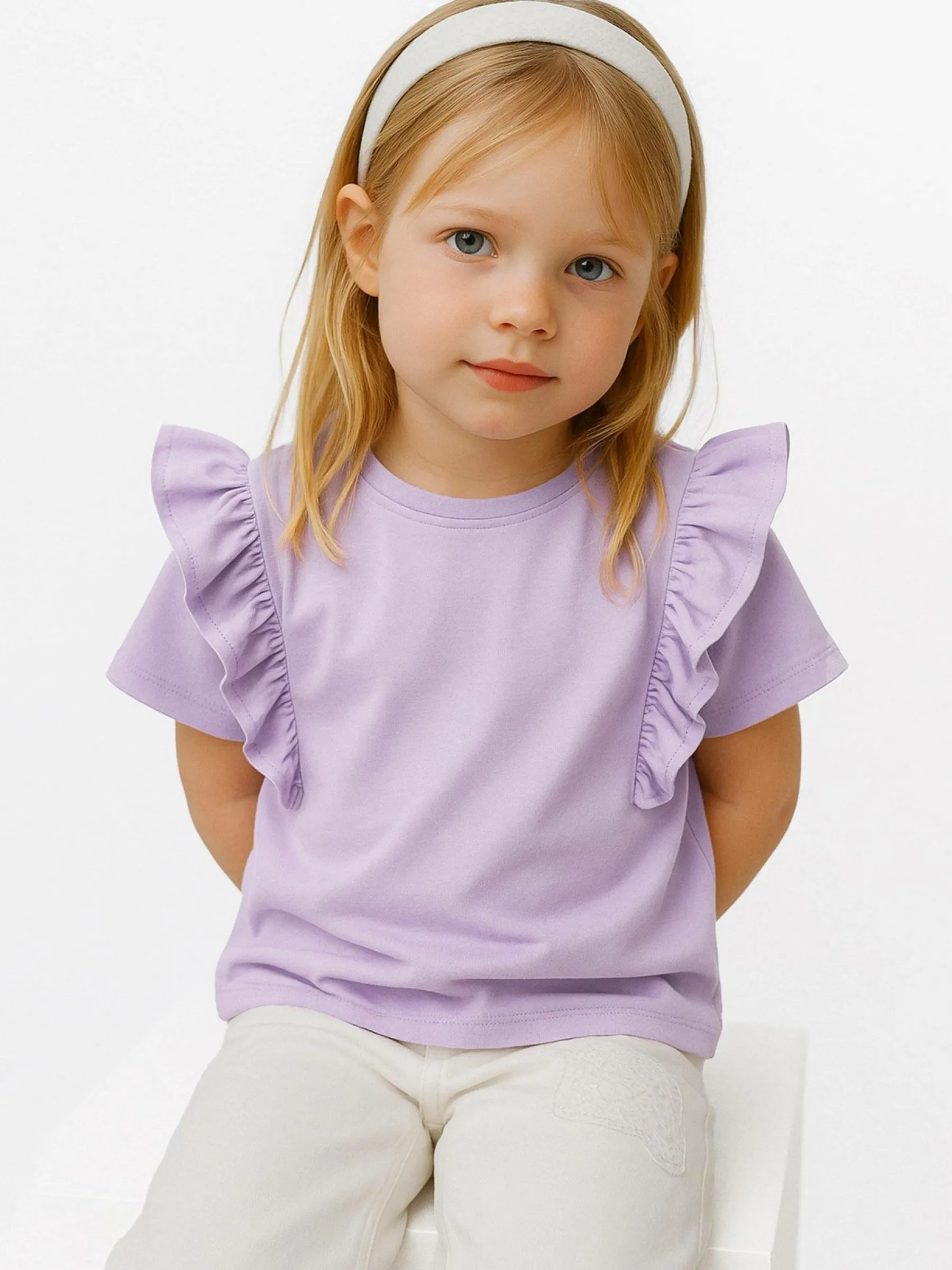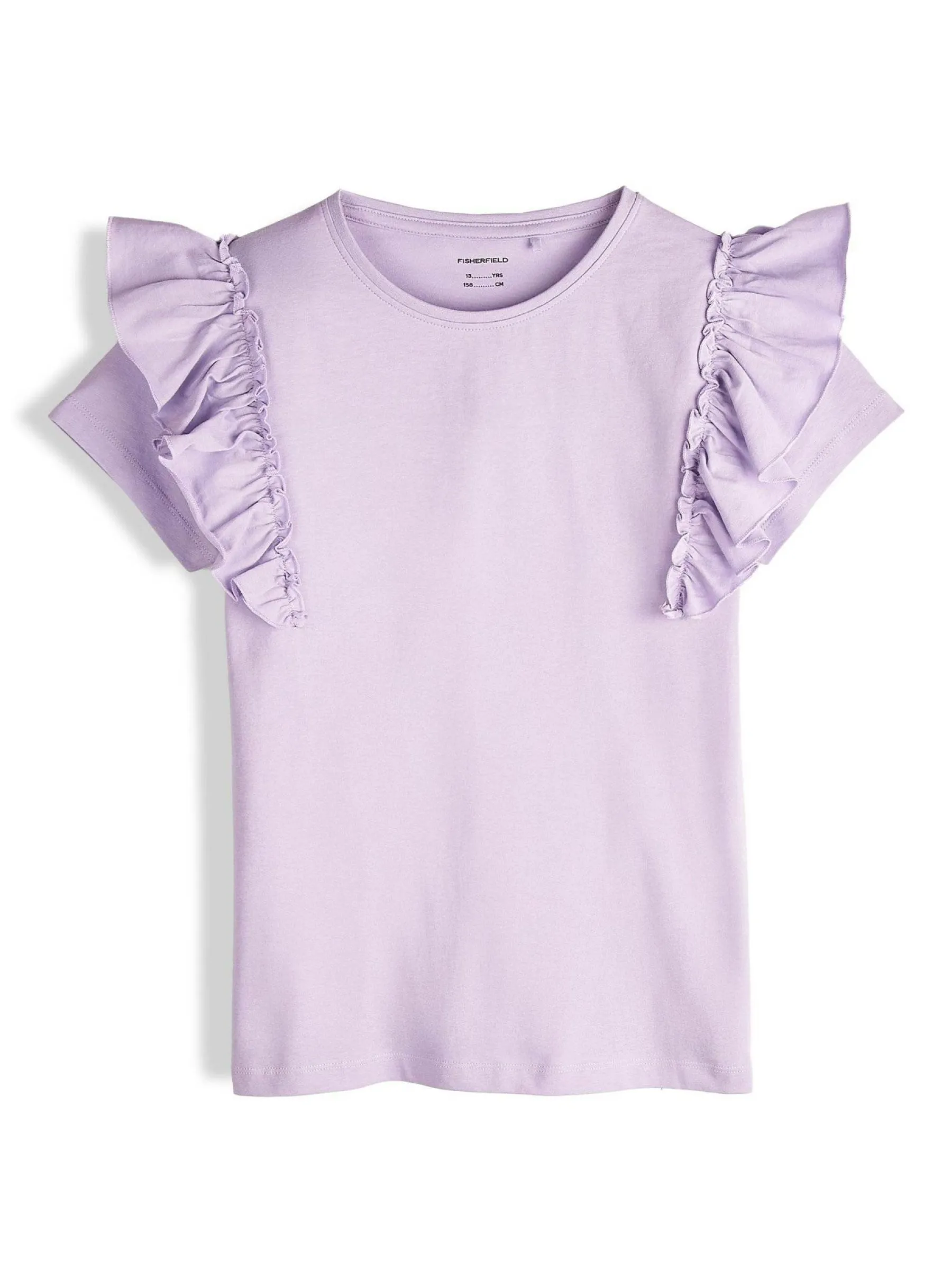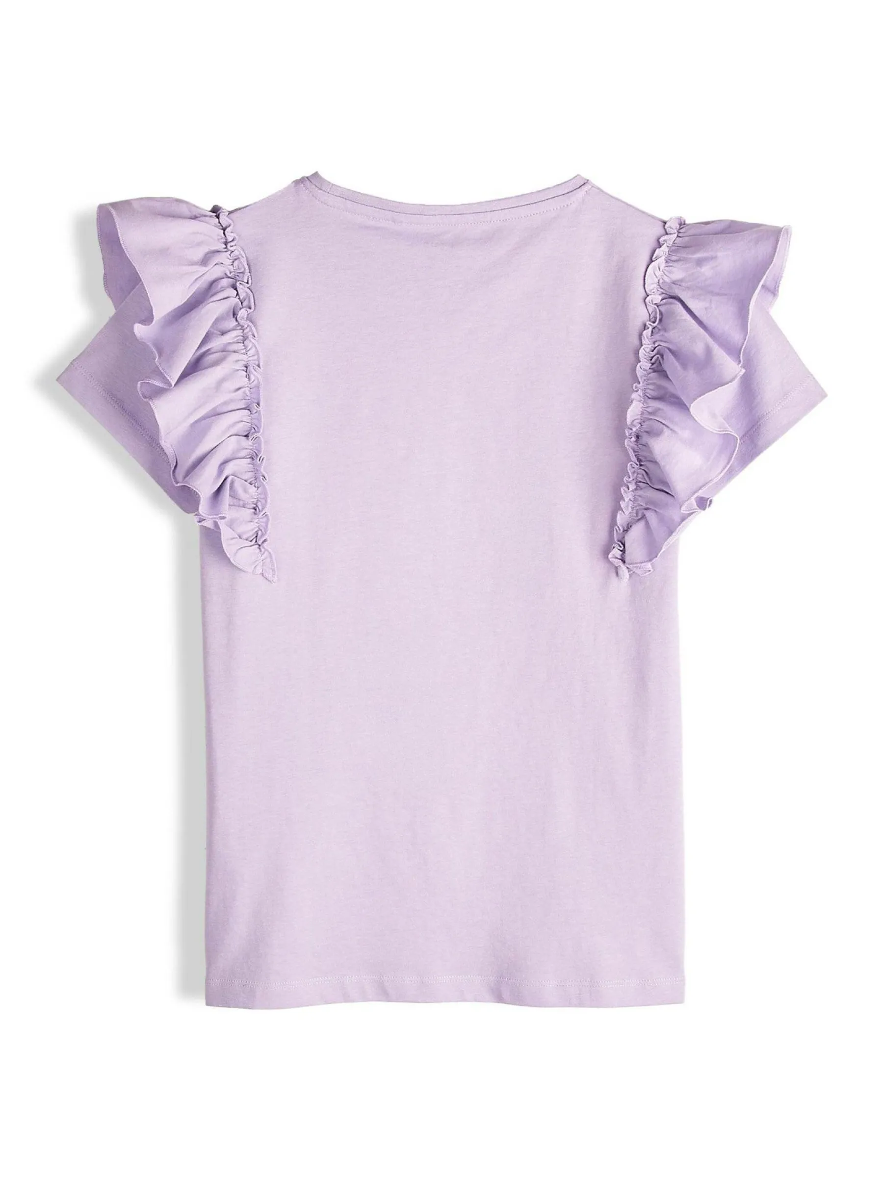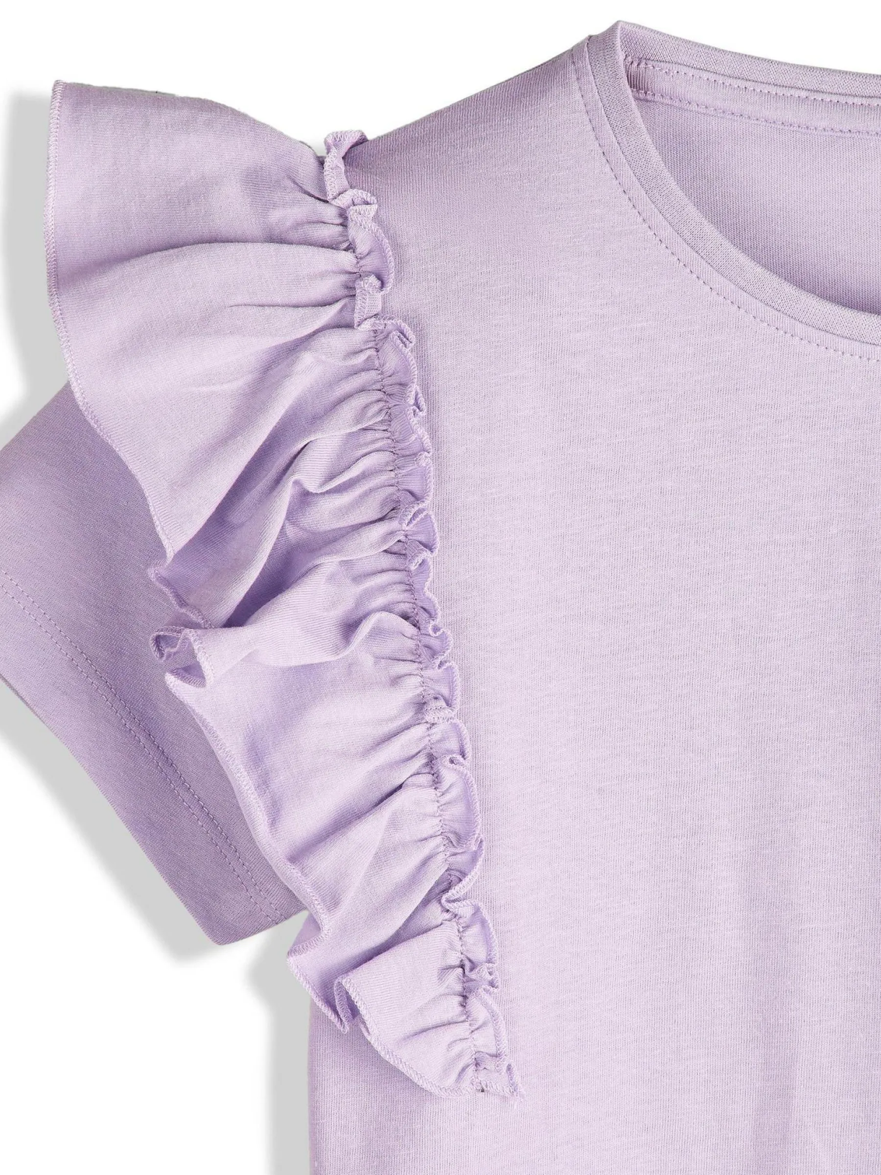 Kolor: purpurowyKrój: z falbanąTyp: koszulkaRekaw: krótki rękawDługość: krótkiPattern style: pojedynczy kolorDet…