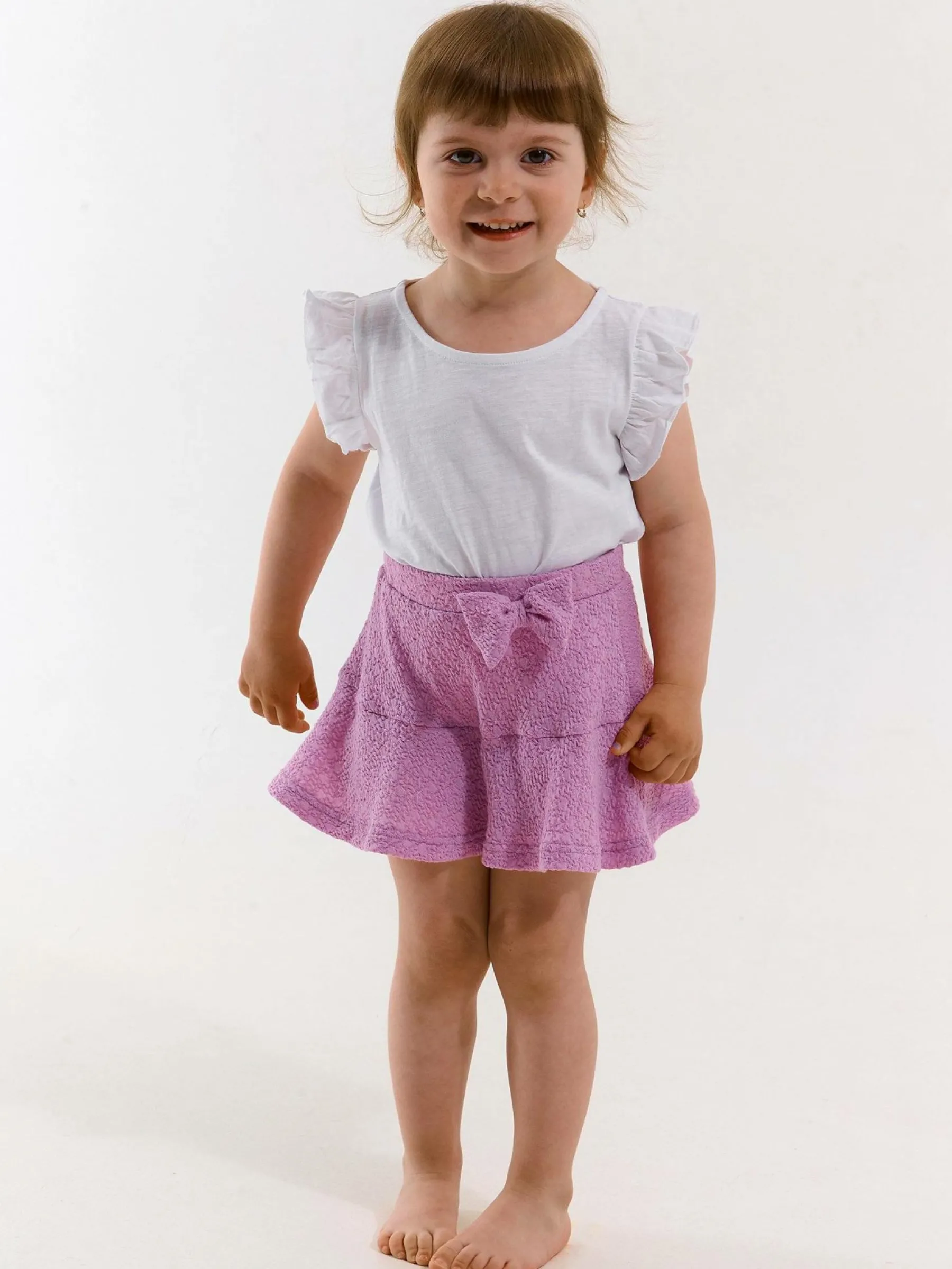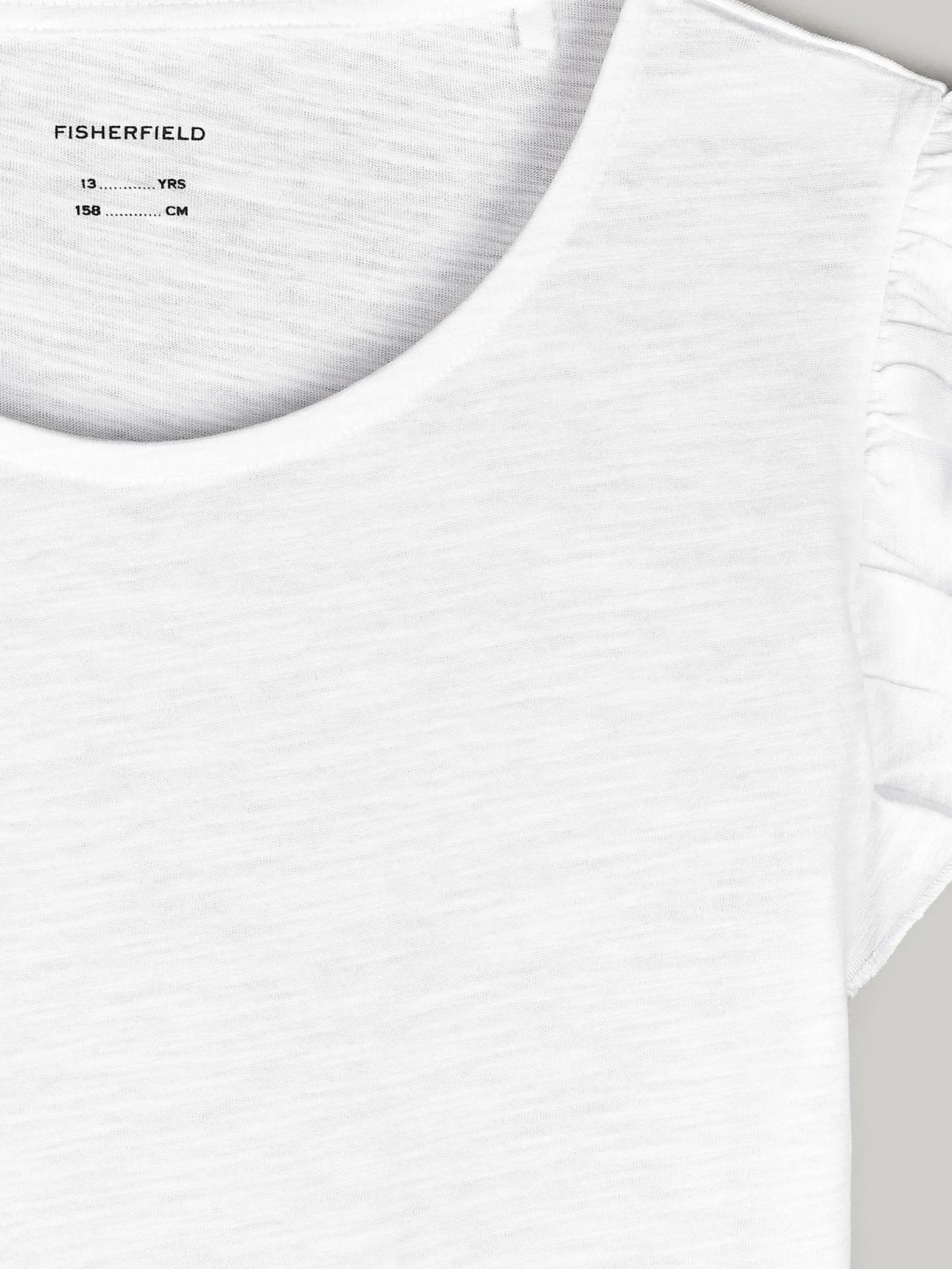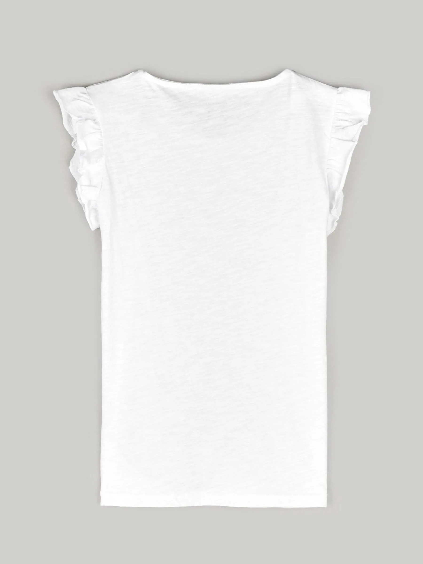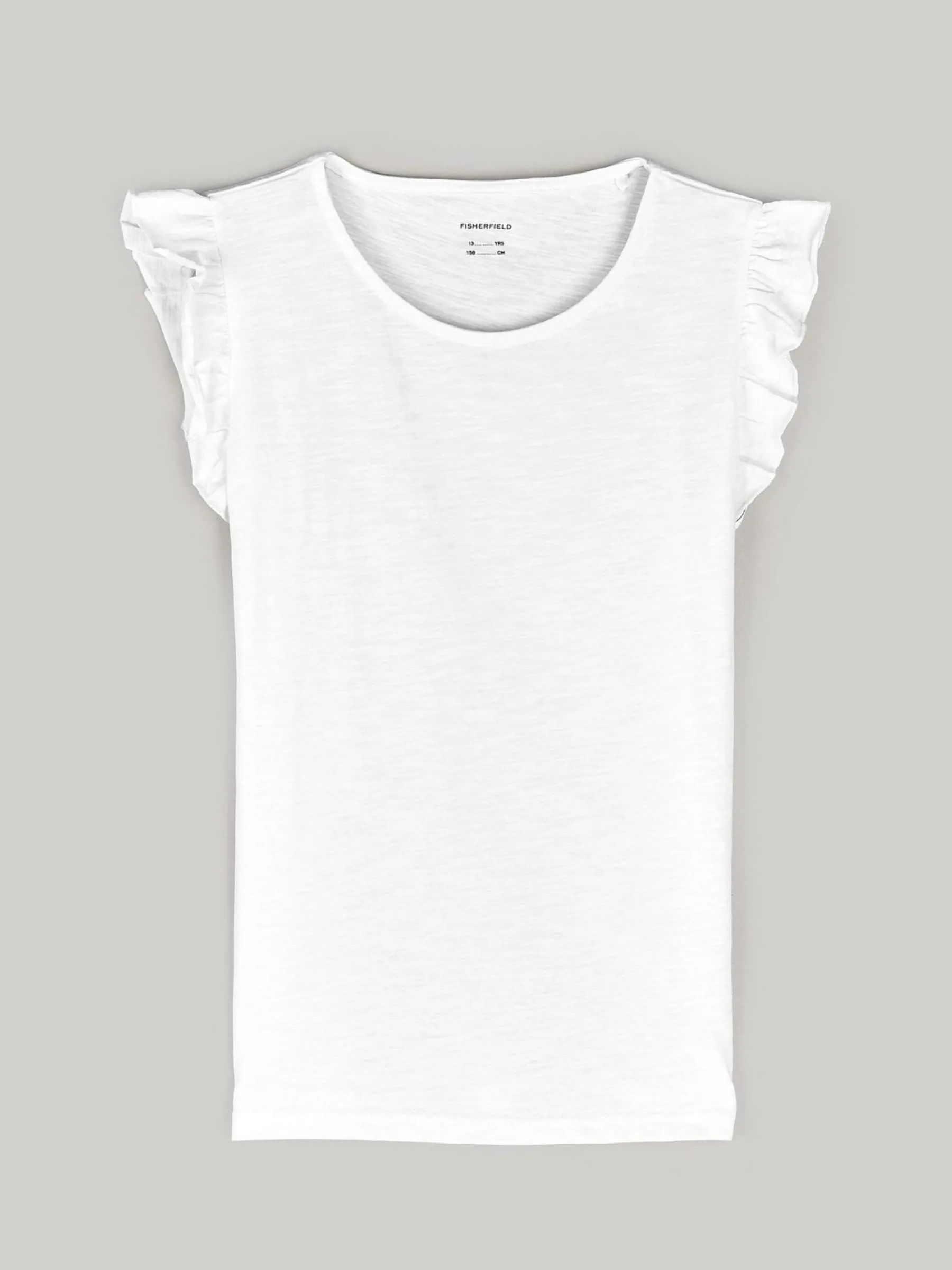 Kolor: białyKrój: z falbanąTyp: koszulkaRekaw: krótki rękawDługość: krótkiPattern style: pojedynczy kolorDetal:…