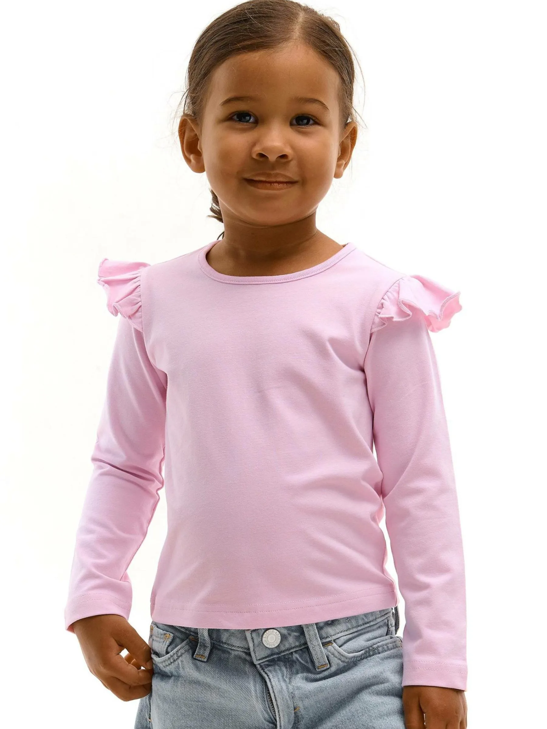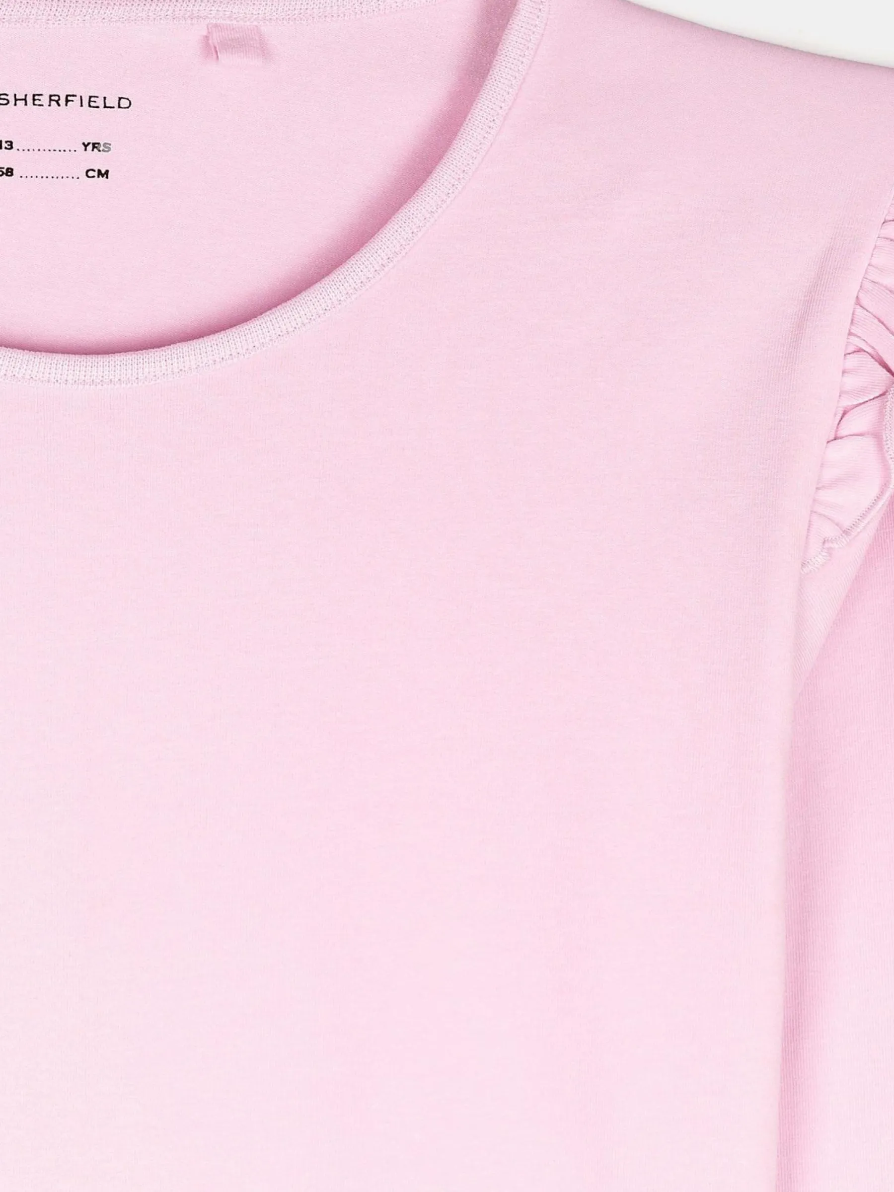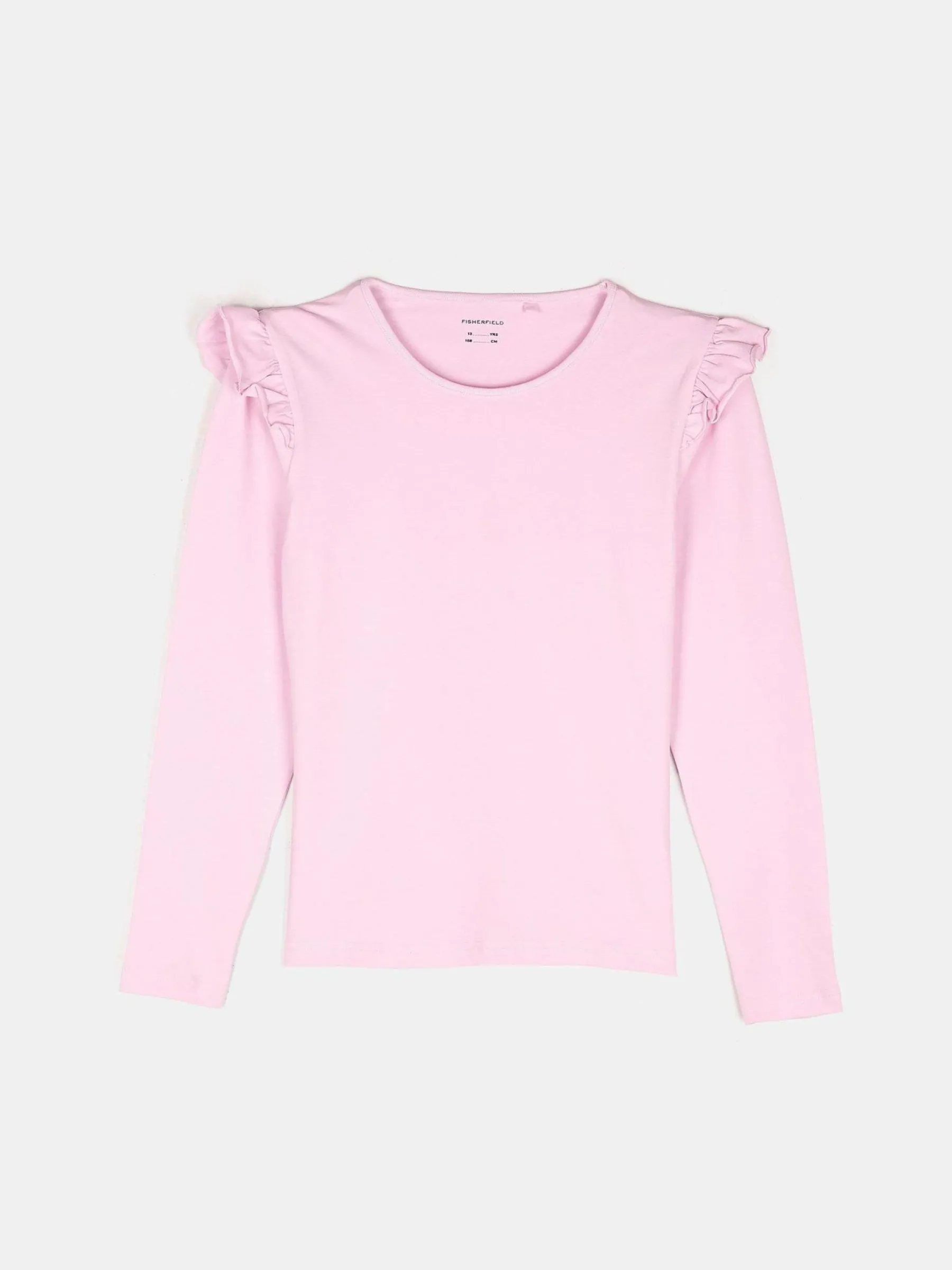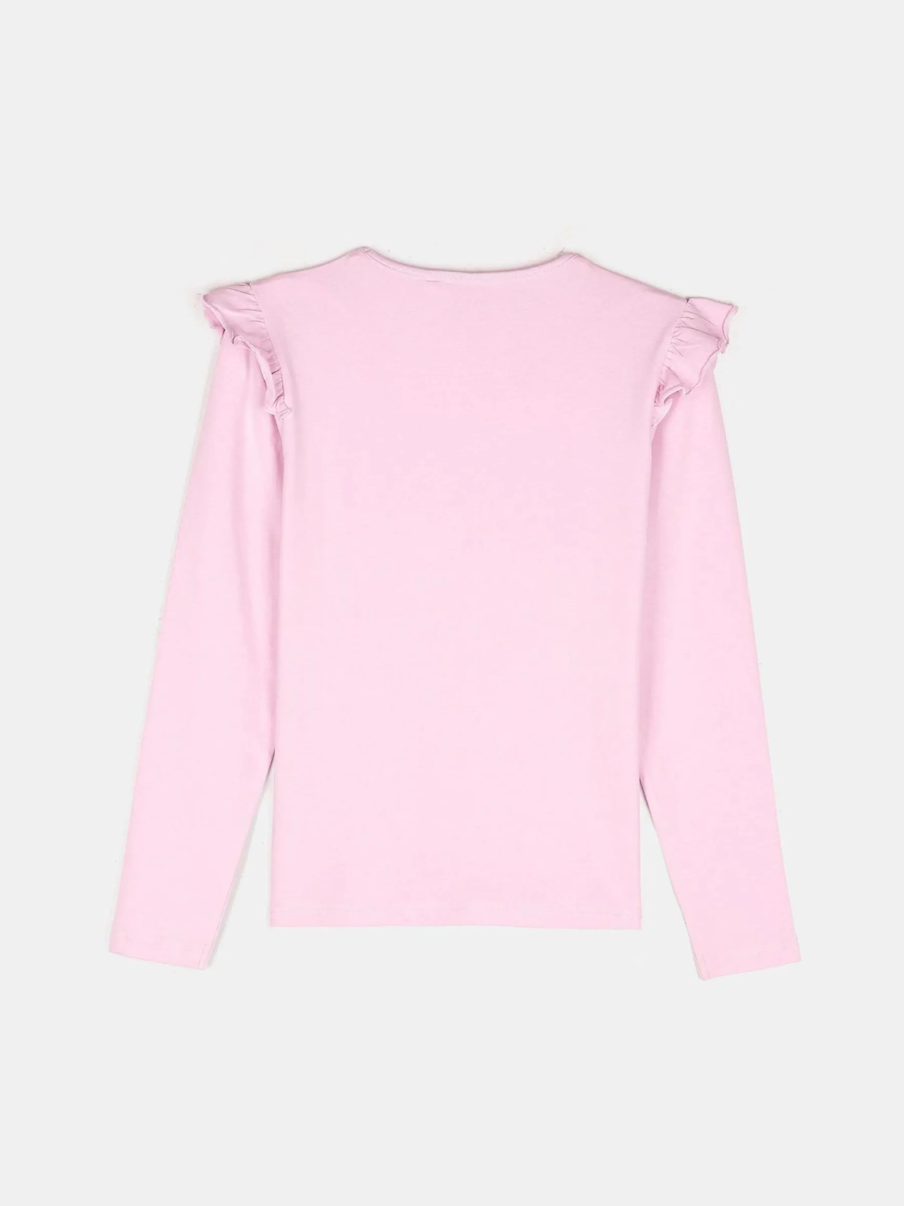 Zdjęcia z modelką mogą nie odpowiadać rzeczywistemu kolorowi produktu.Kolor: różowyKrój: z falbanąTyp: koszulkaR…