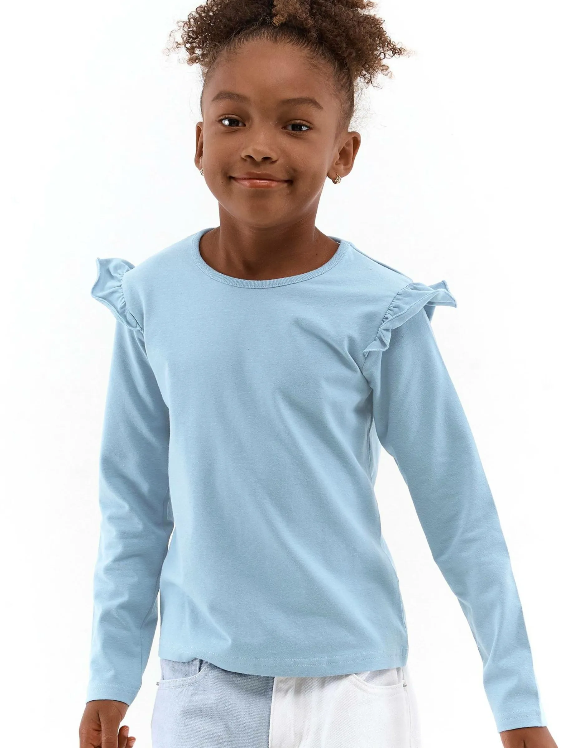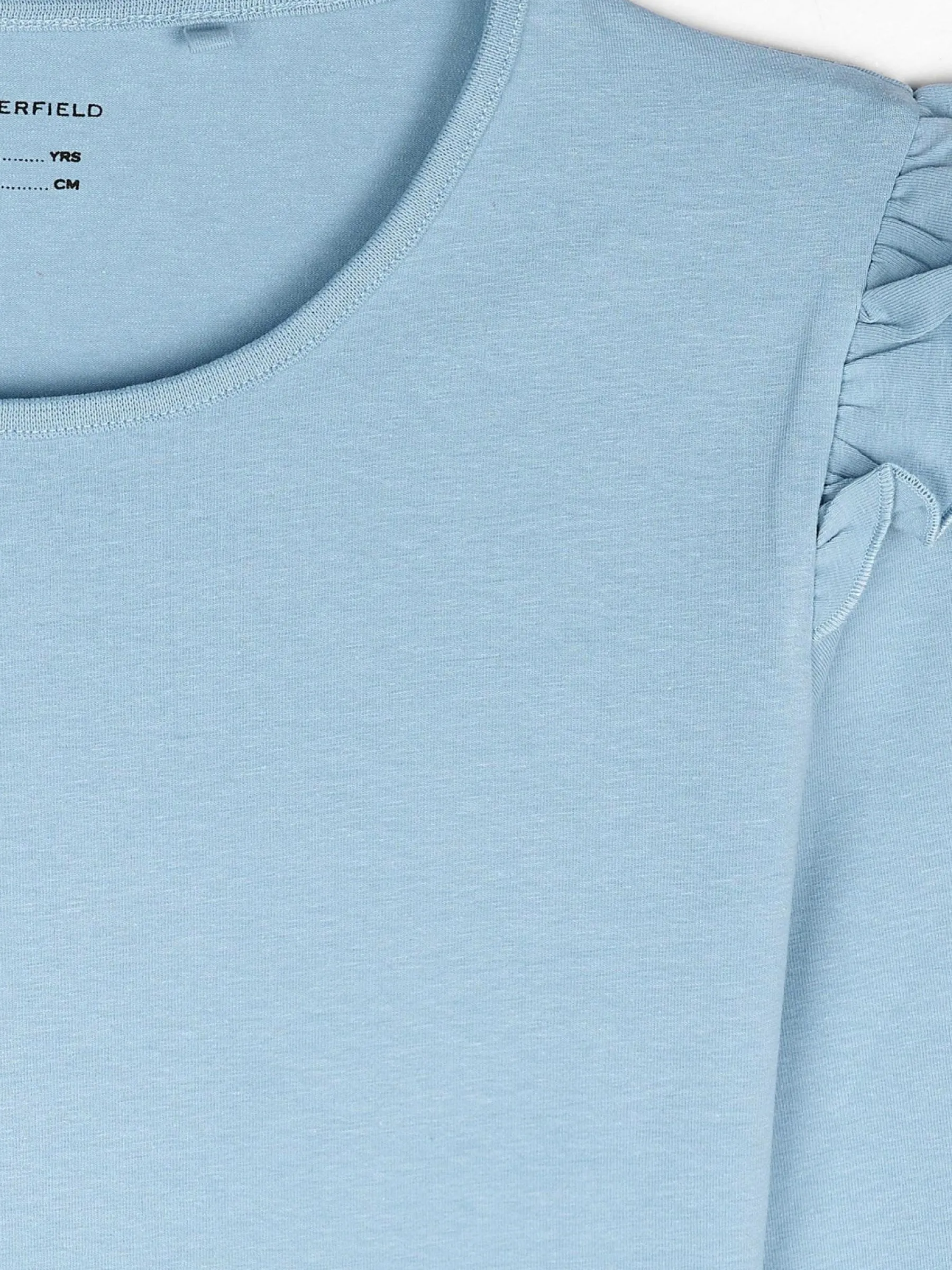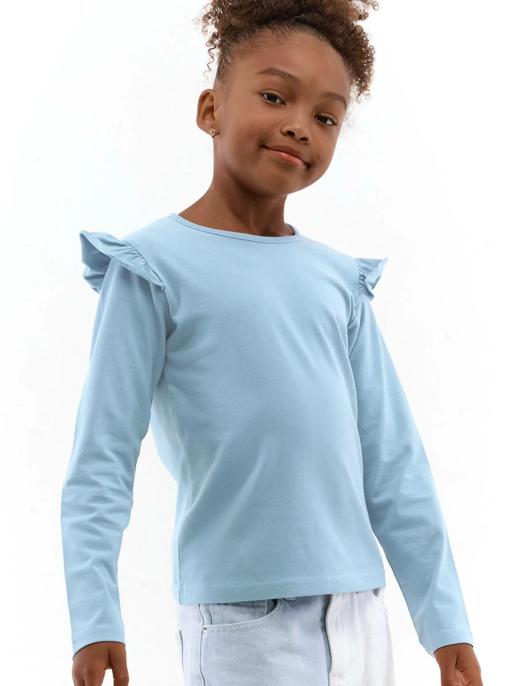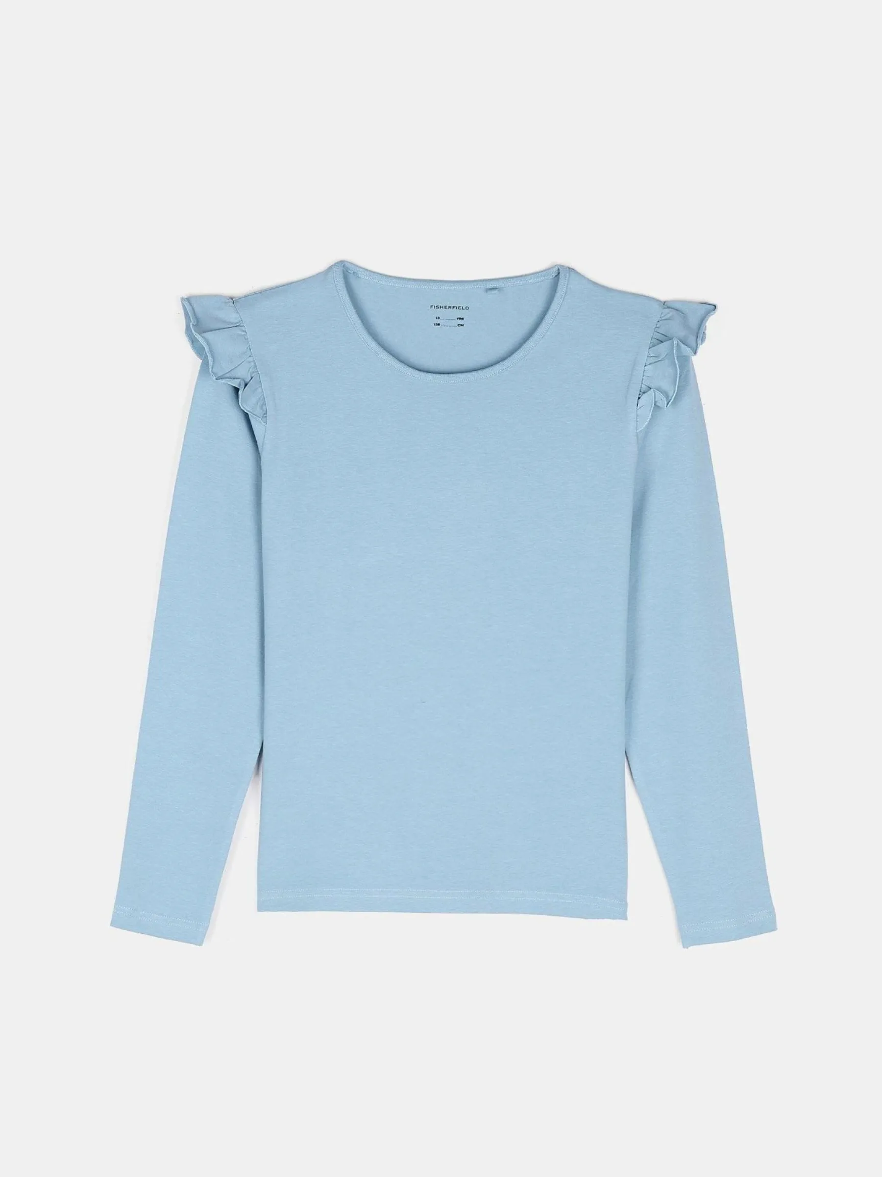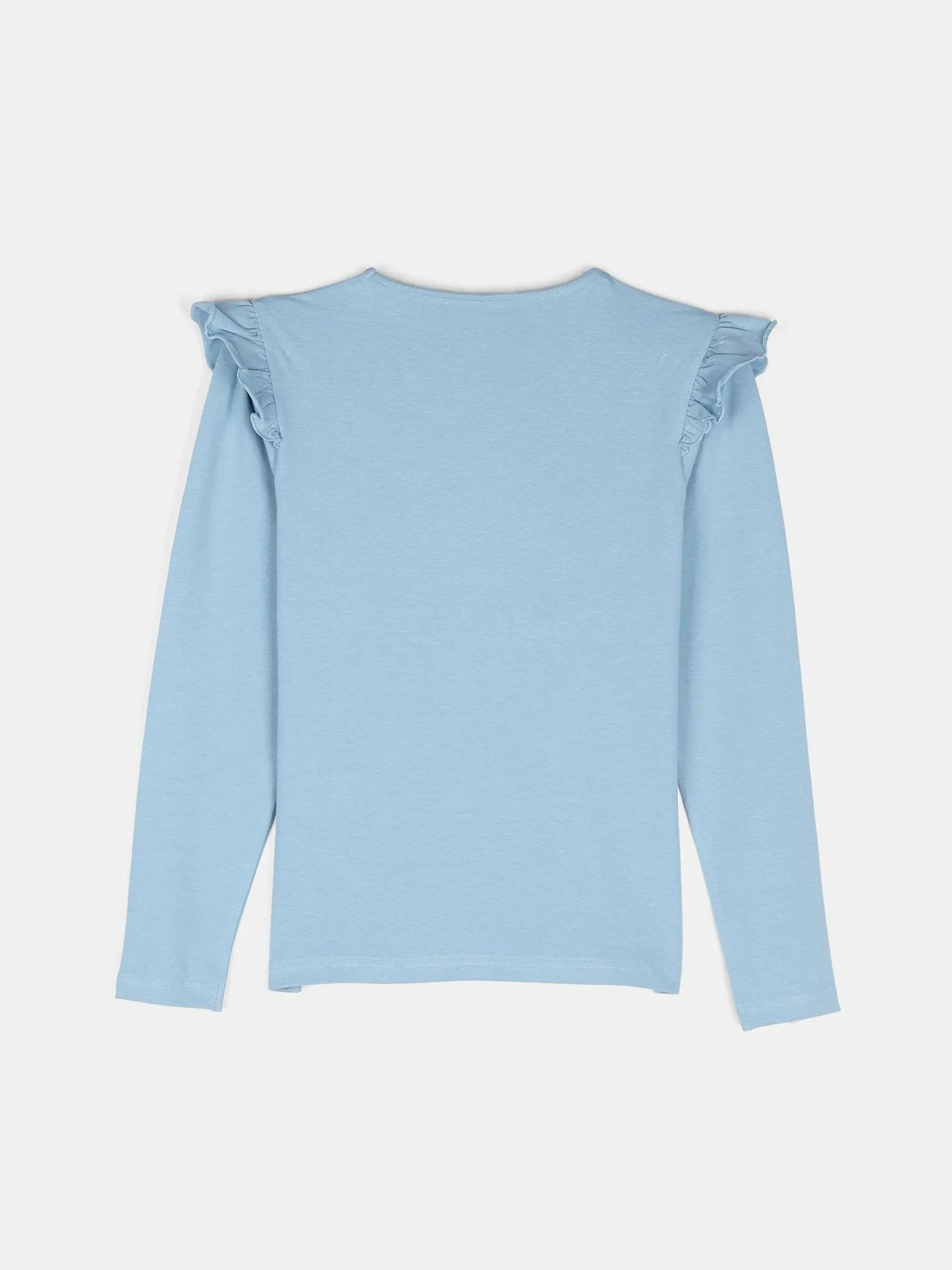Zdjęcia z modelką mogą nie odpowiadać rzeczywistemu kolorowi produktu.Kolor: niebieskiKrój: z falbanąTyp: koszulka…