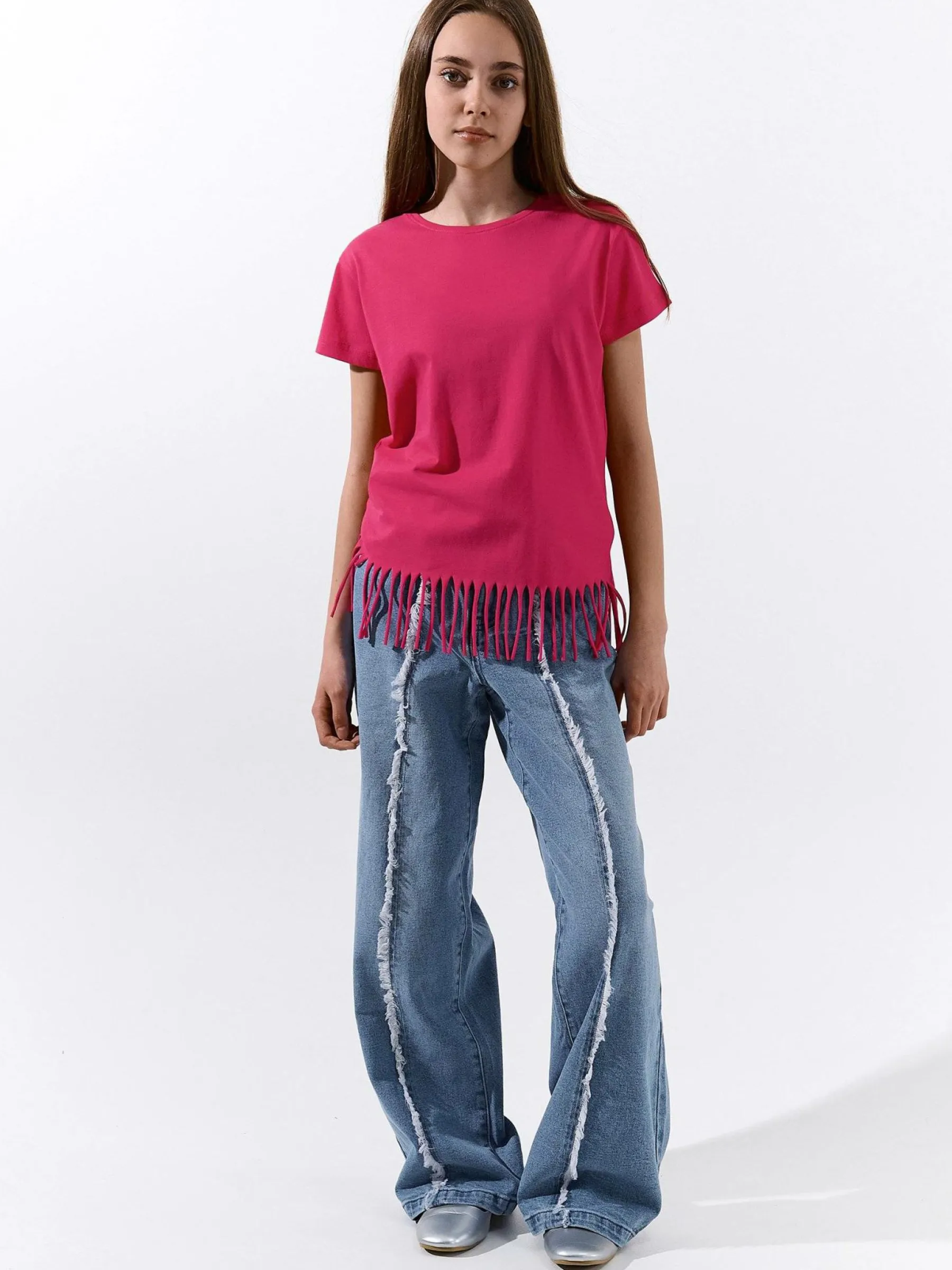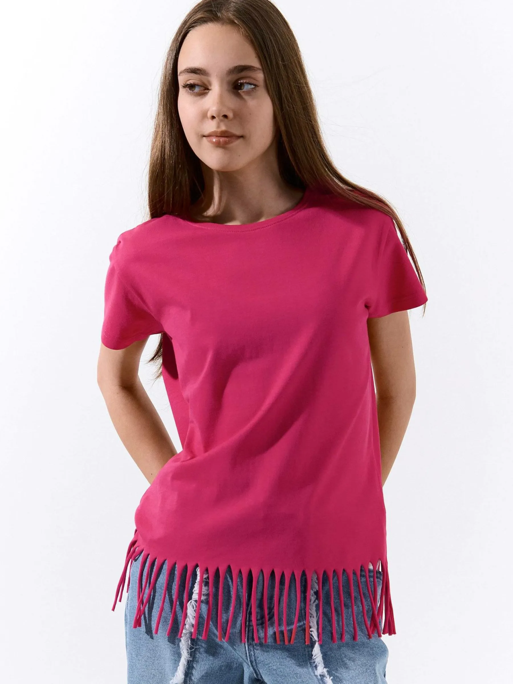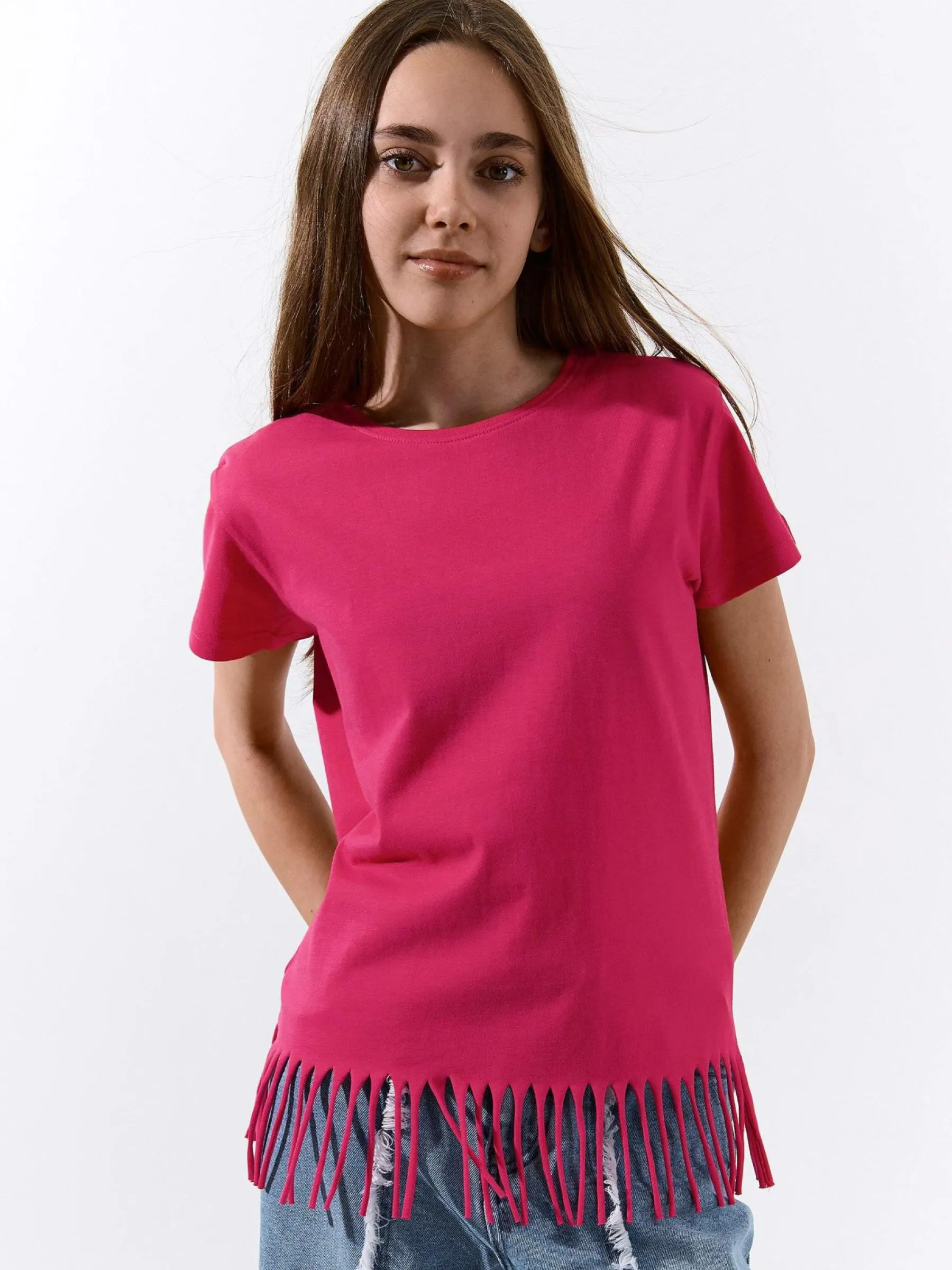 Kolor: różowyKrój: regularTyp: koszulkaRekaw: krótki rękawDługość: krótkiPattern style: pojedynczy kolorDetal: …