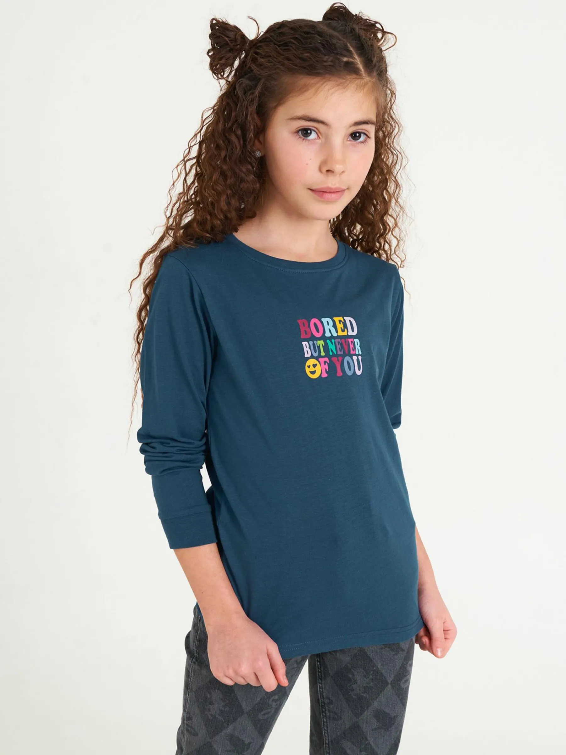 Kolor: granatowy, niebieskiKrój: regularTyp: koszulkaRekaw: długi rękawDługość: krótkiPattern style: z napisemDet…