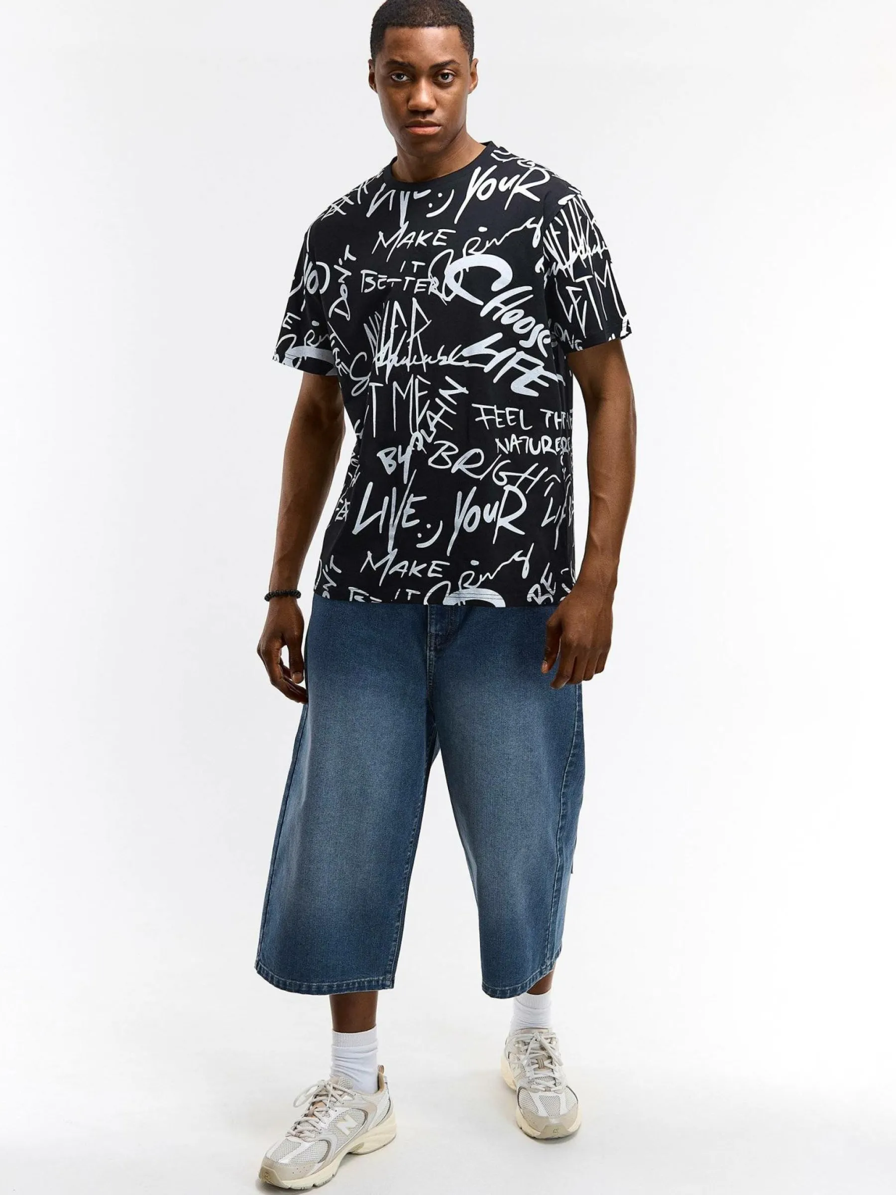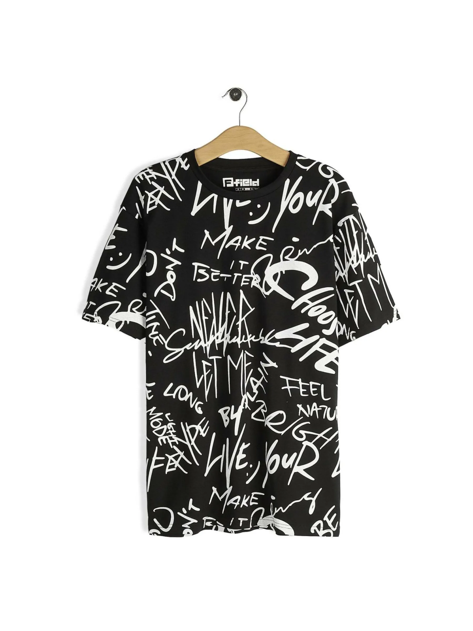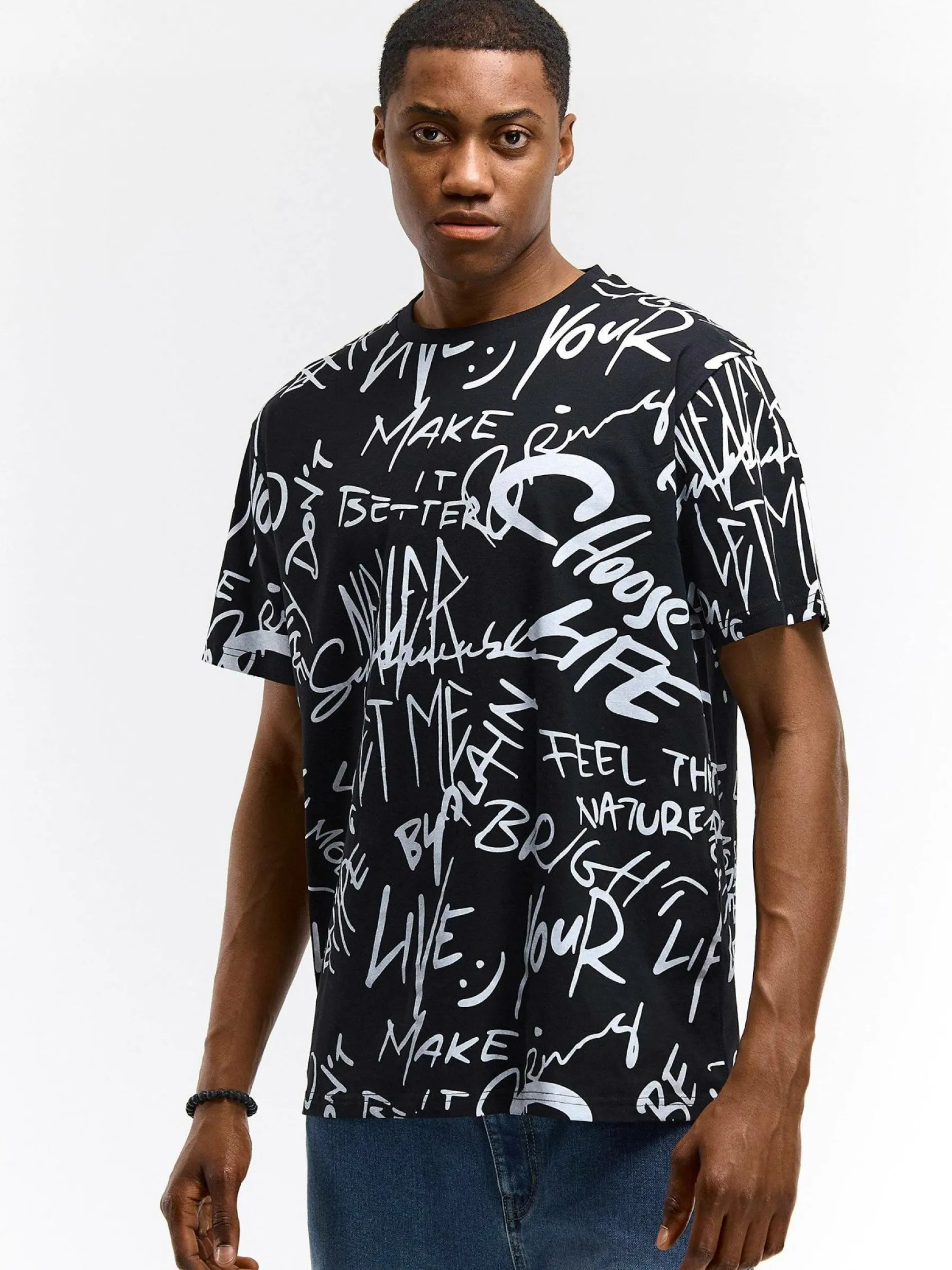 Kolor: czarnyKrój: regularTyp: koszulkaRekaw: krótki rękawPattern style: wzorzysteDetal: nad głowąMateriał: baweł…