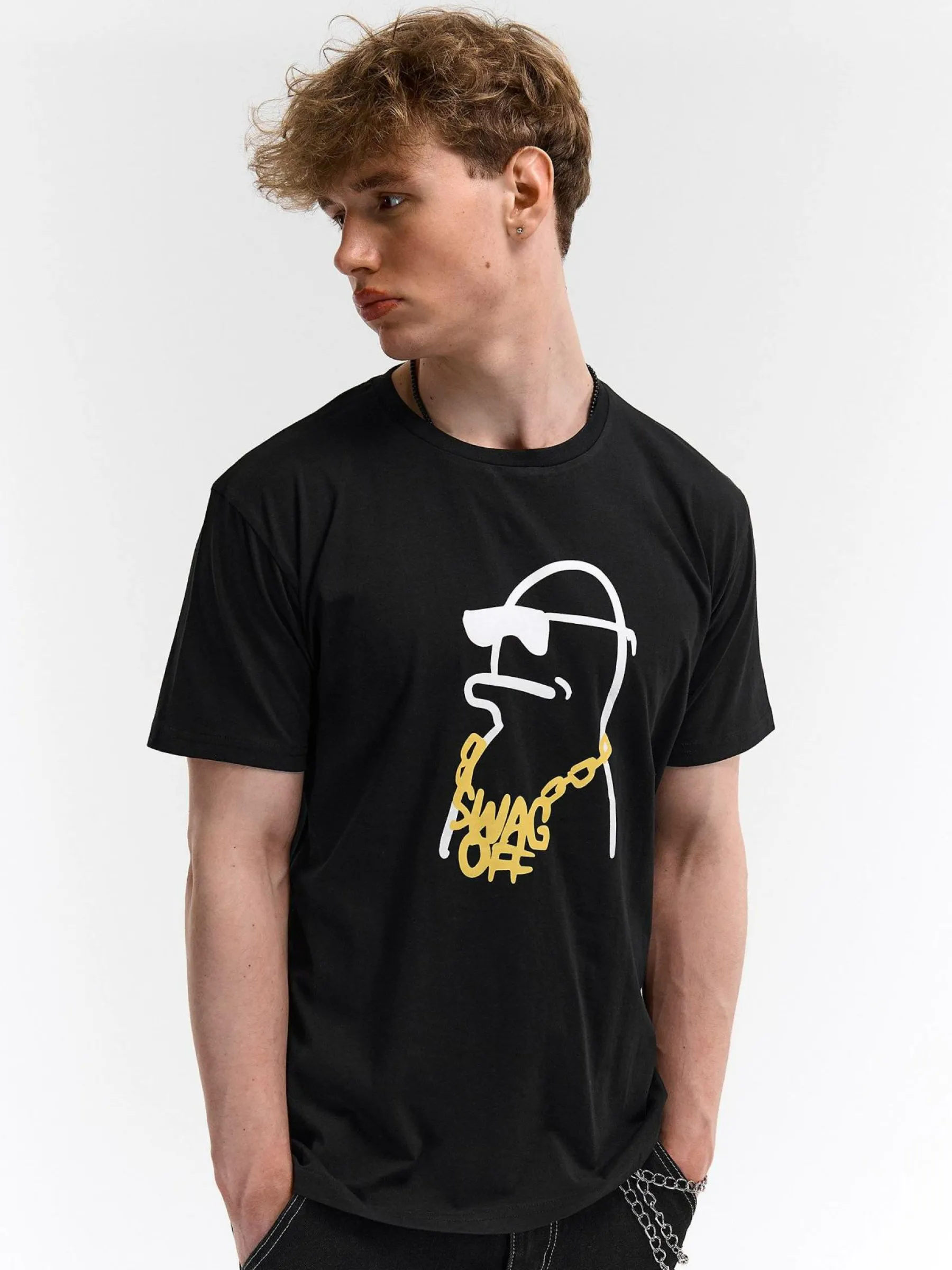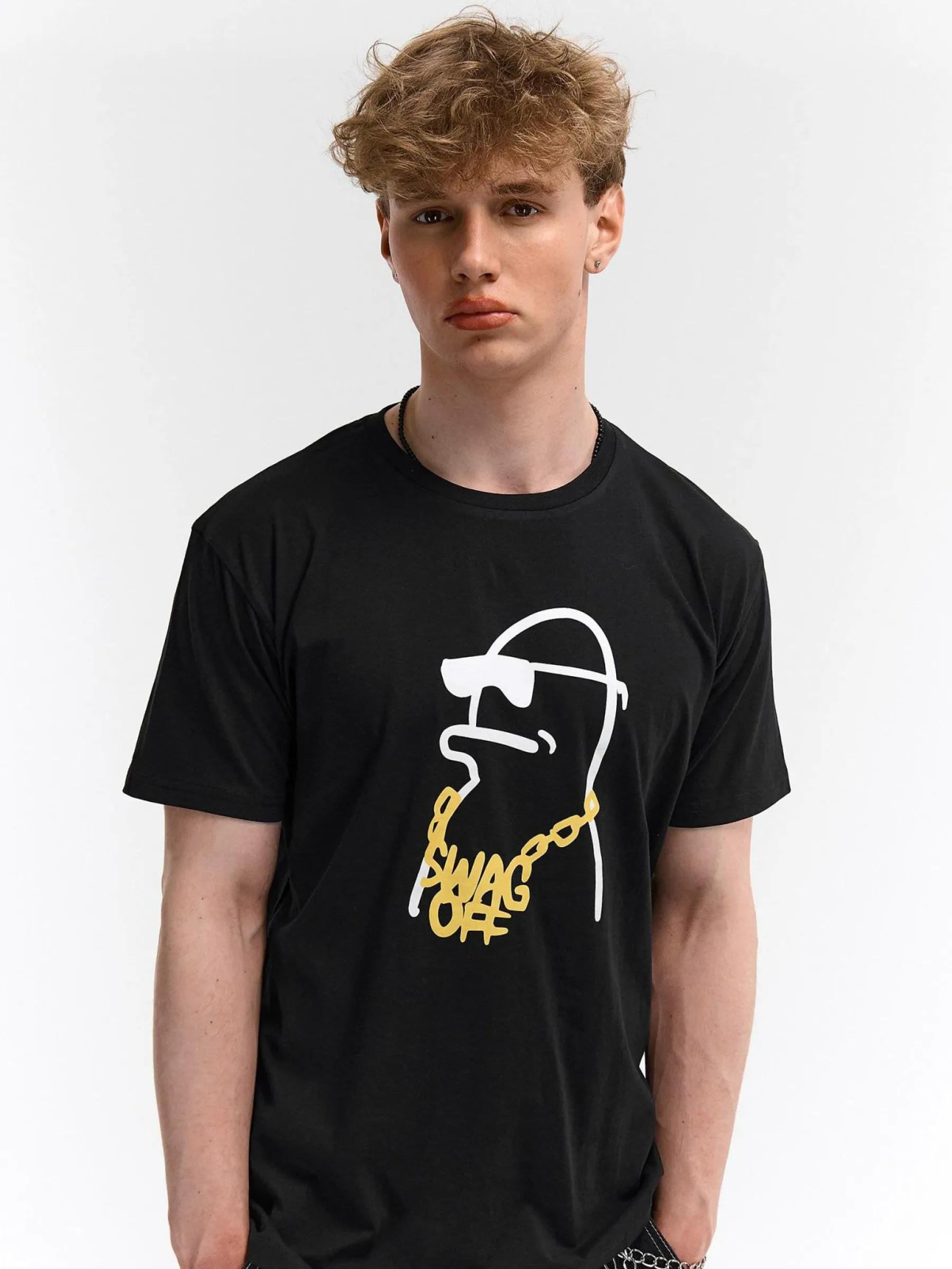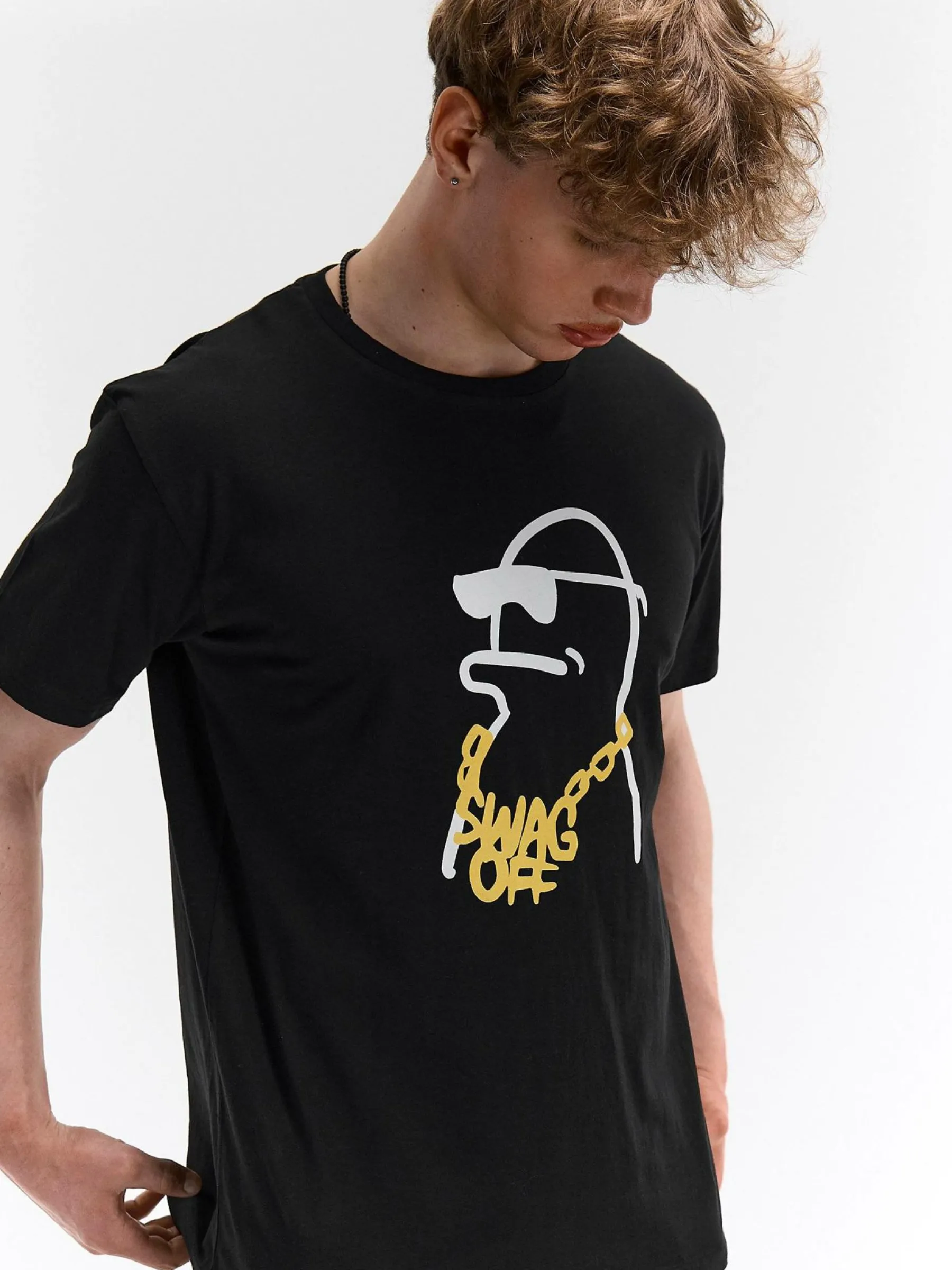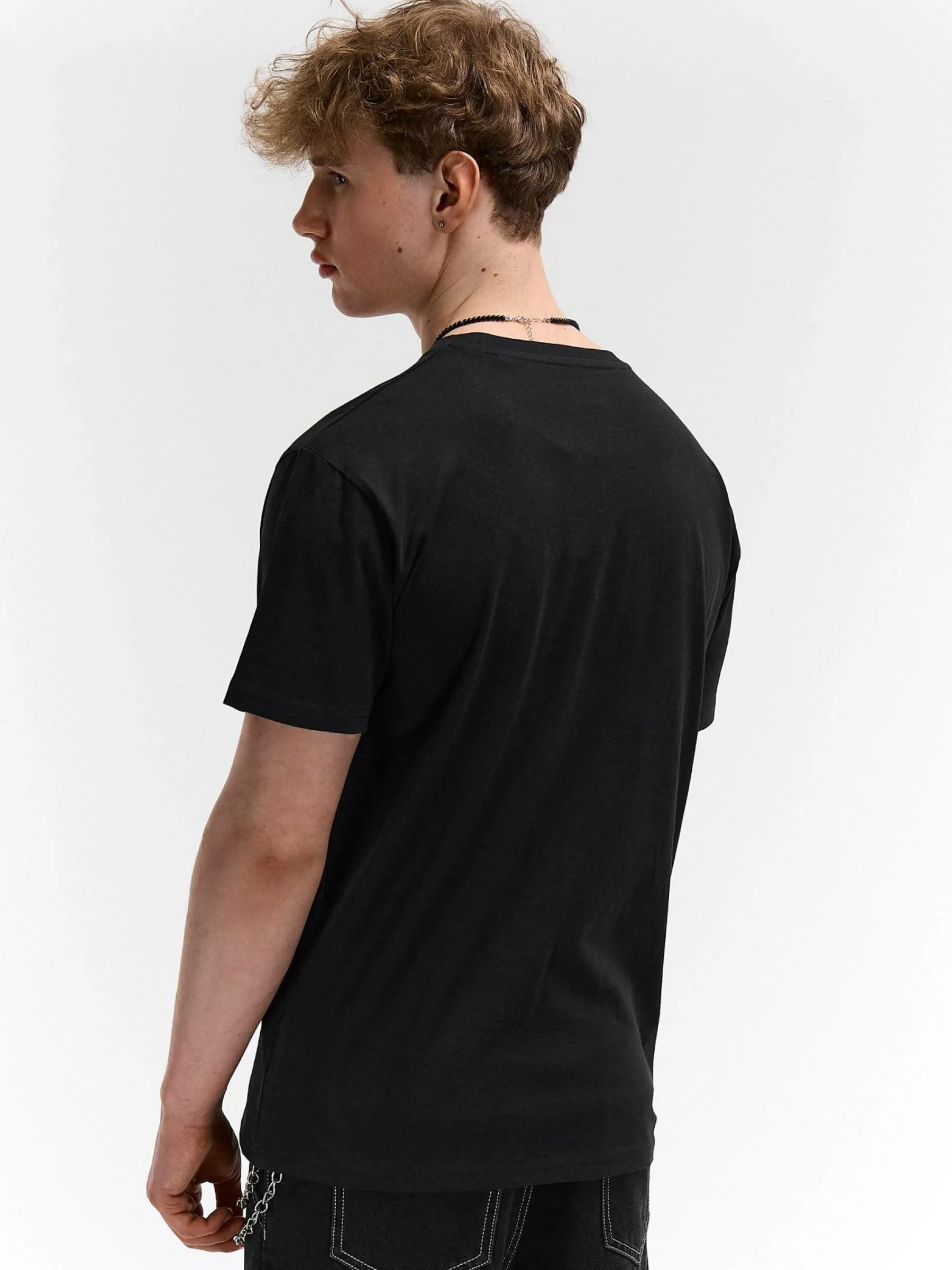 Kolor: czarnyKrój: regularTyp: koszulkaRekaw: krótki rękawPattern style: z nadrukiemDetal: nad głowąMateriał: bawe…