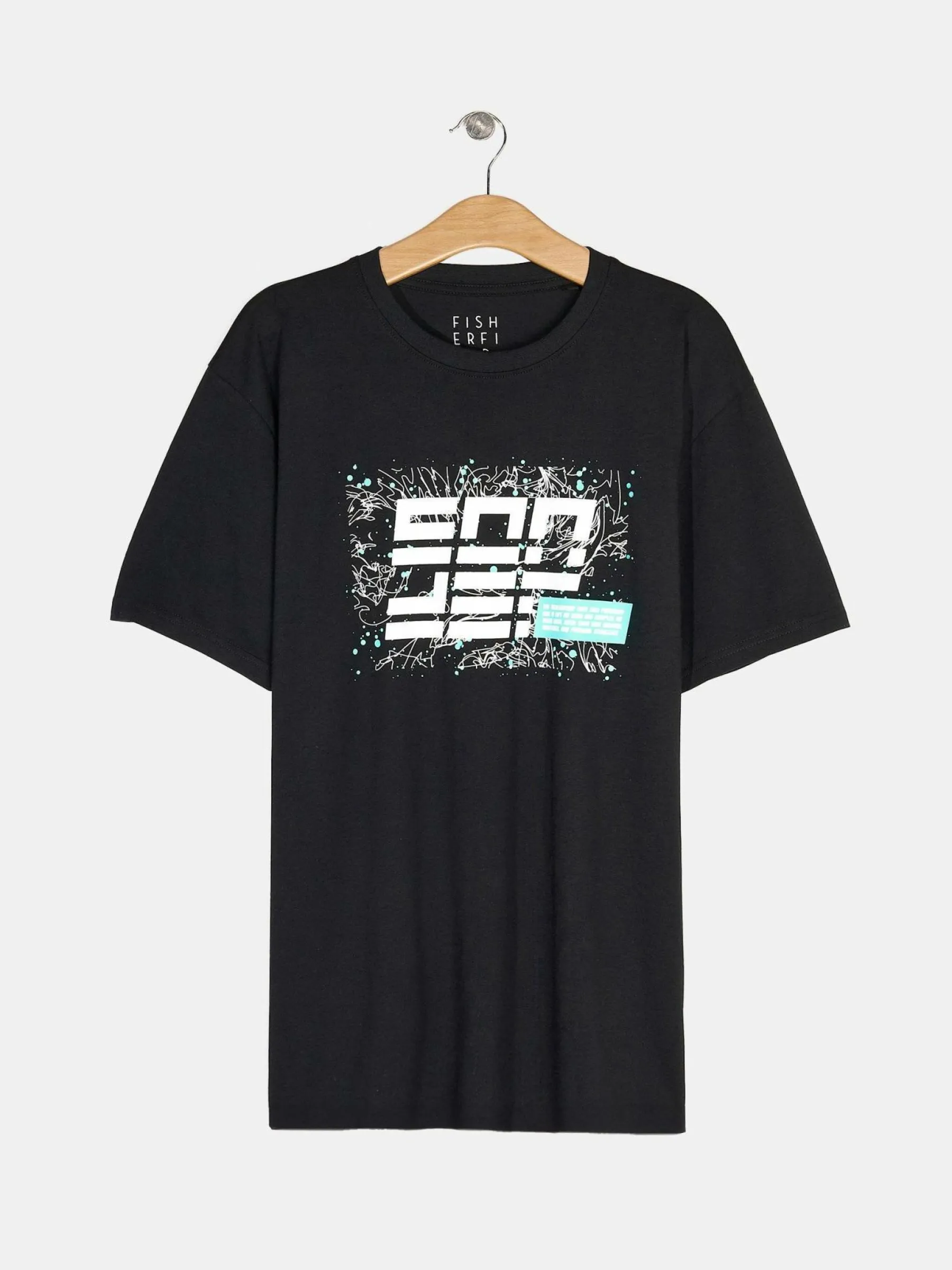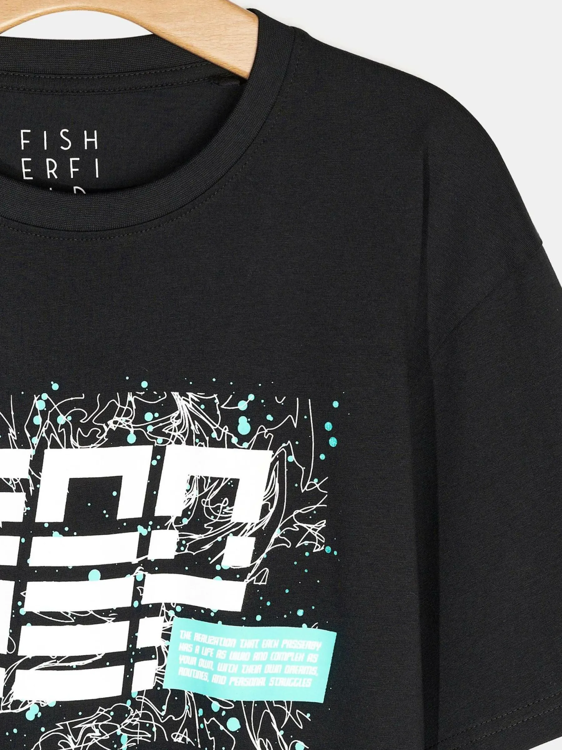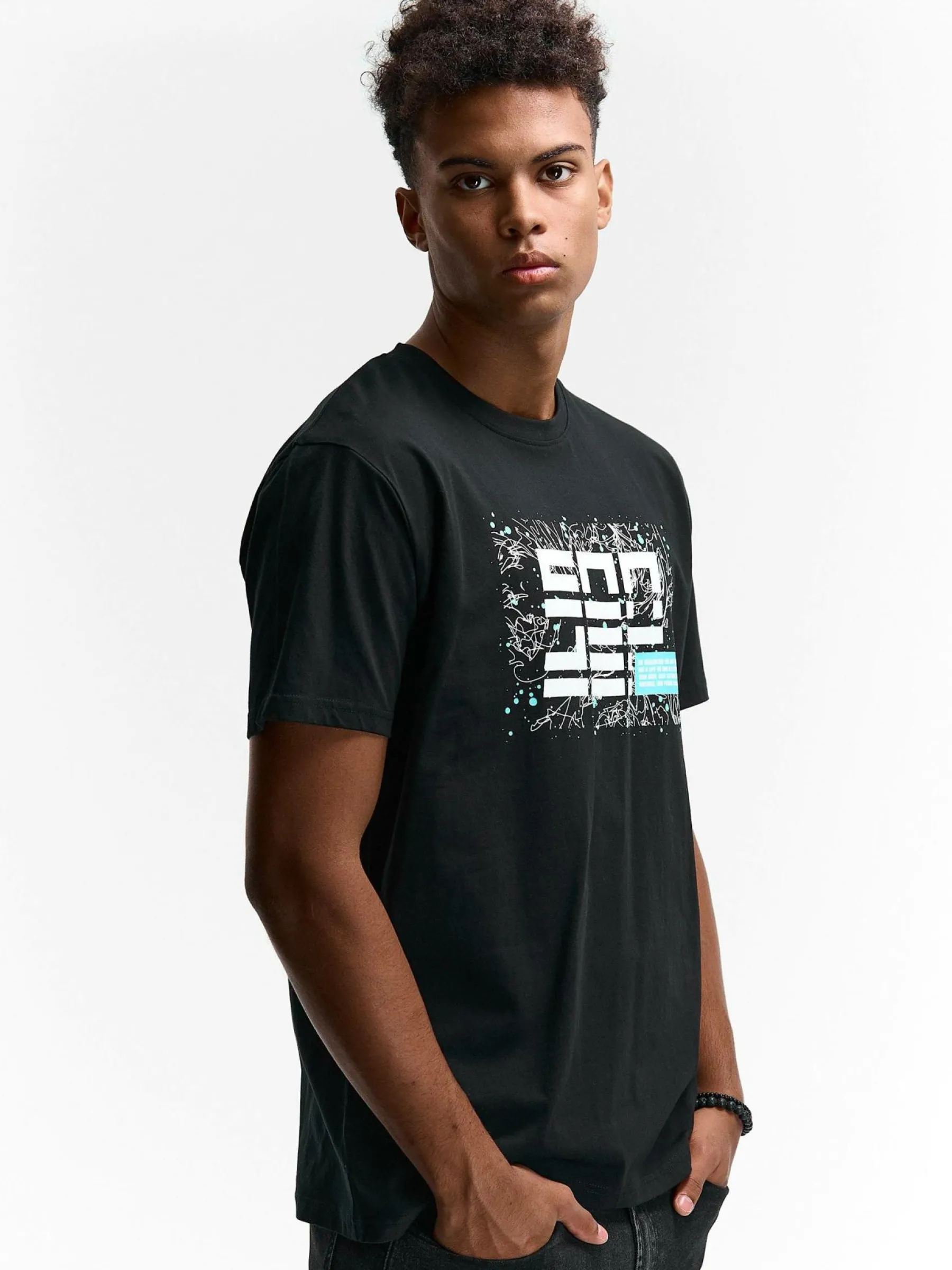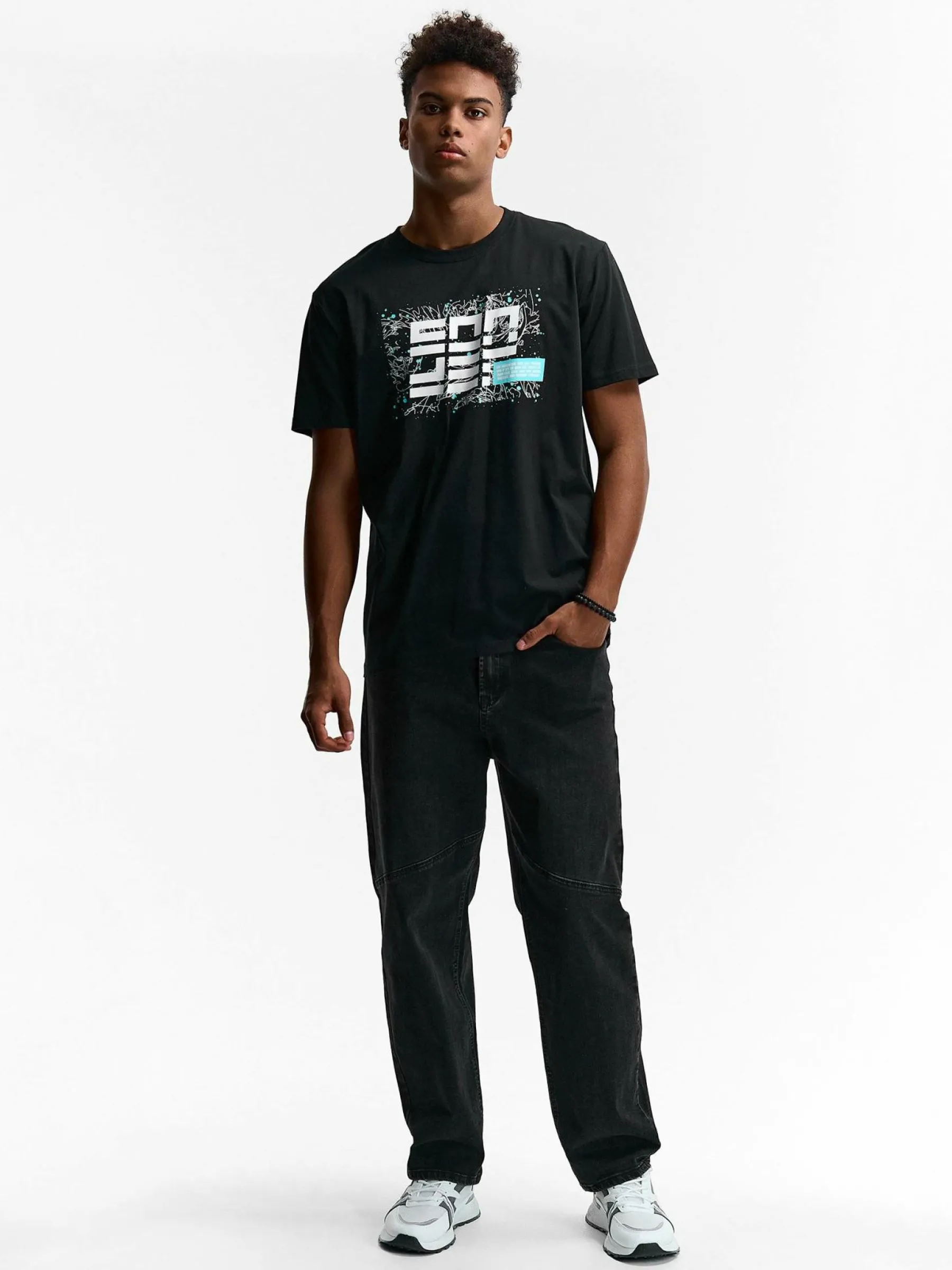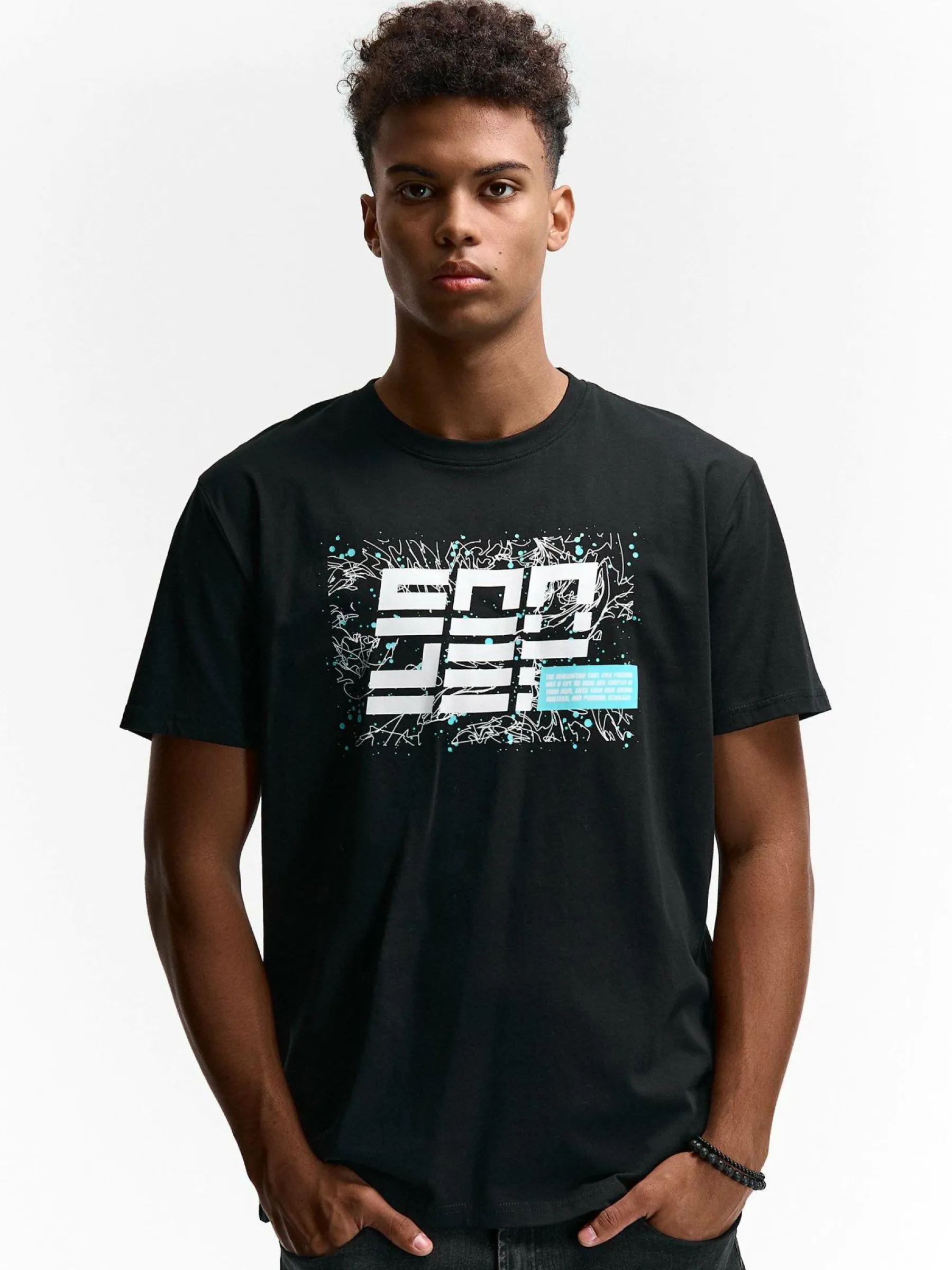 Kolor: czarnyKrój: regularTyp: koszulkaRekaw: krótki rękawPattern style: z nadrukiemDetal: nad głowąMateriał: bawe…