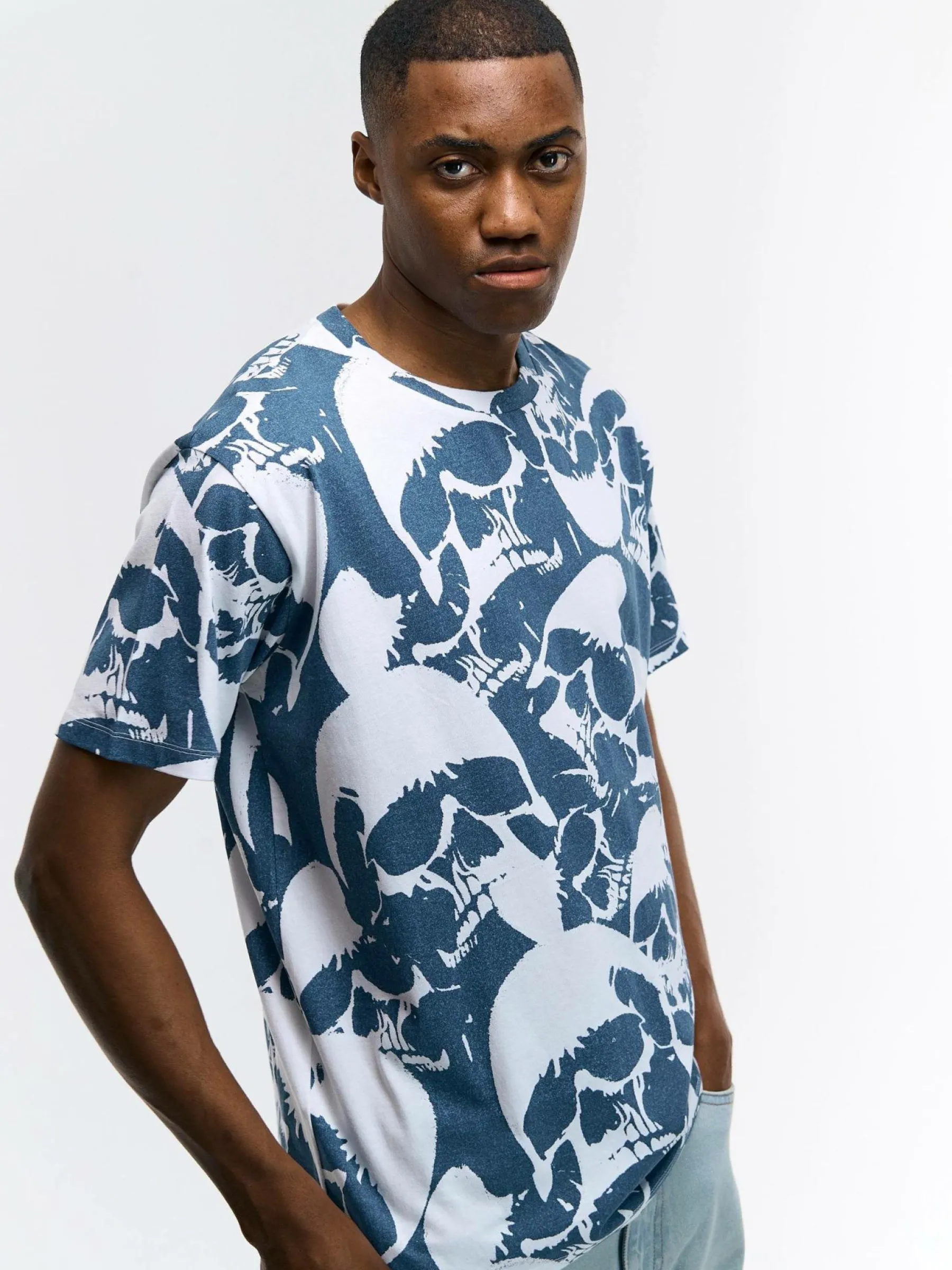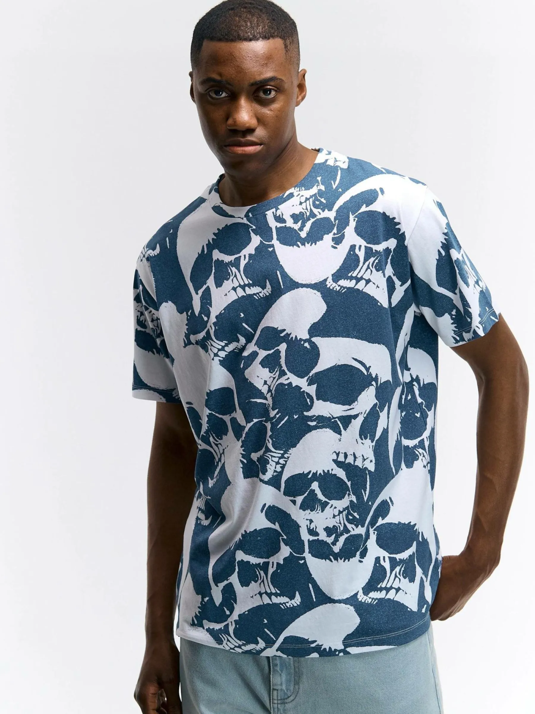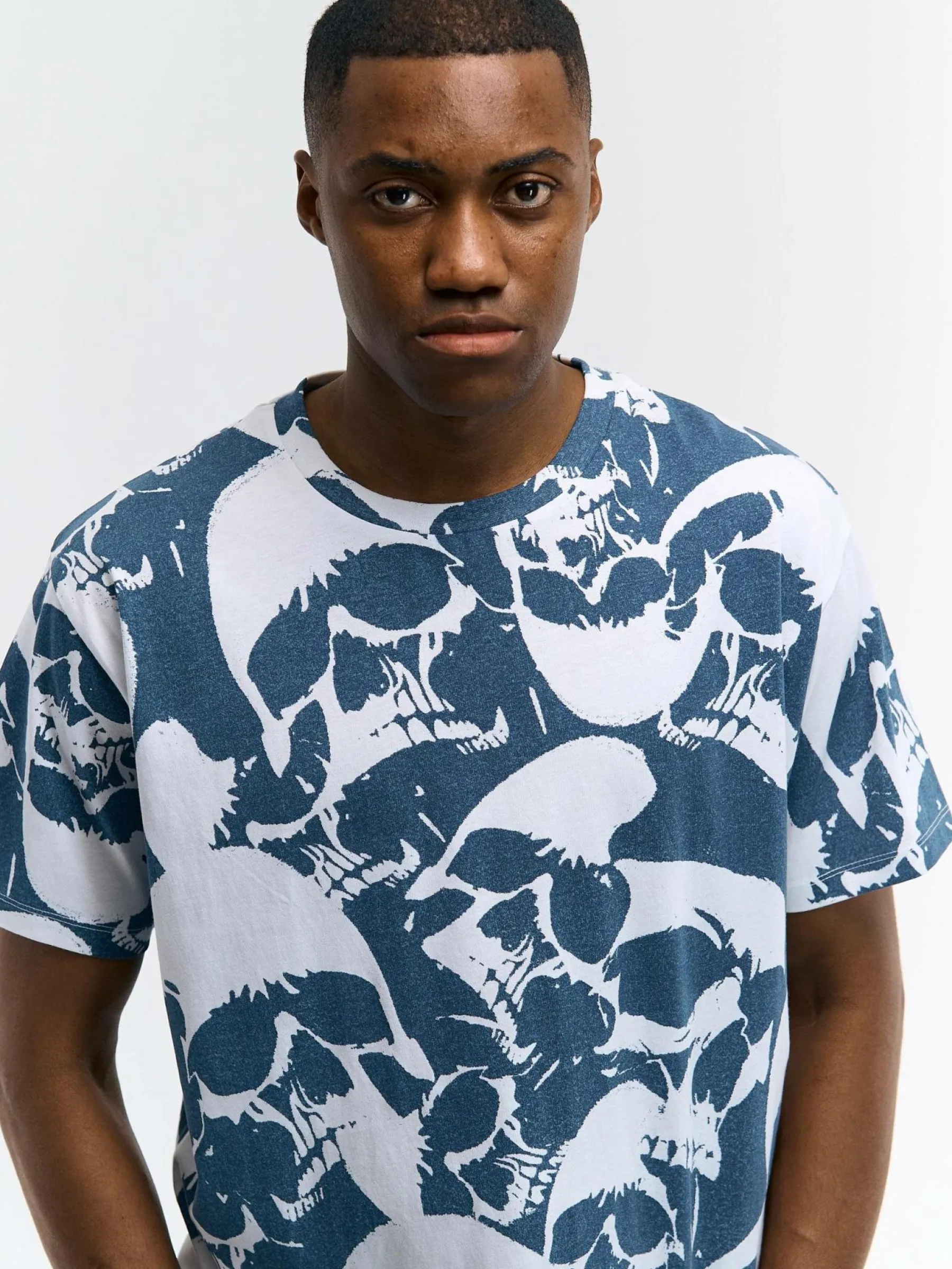 Zdjęcia z modelem mogą nie odpowiadać rzeczywistemu kolorowi produktu.Kolor: granatowyKrój: regularTyp: koszulkaReka…