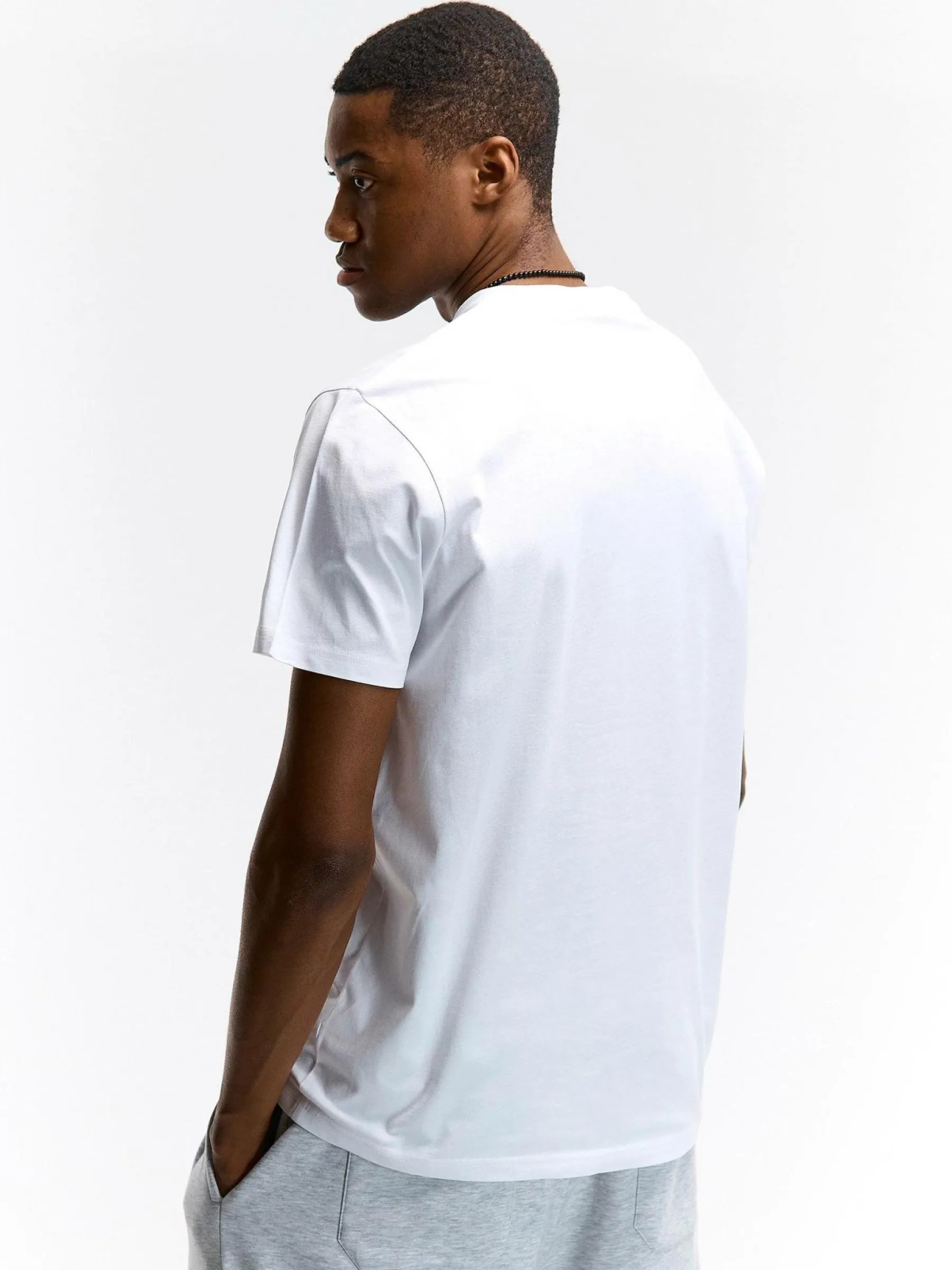 Kolor: białyKrój: regularTyp: koszulkaRekaw: krótki rękawPattern style: z nadrukiemDetal: nad głowąMateriał: bawe…
