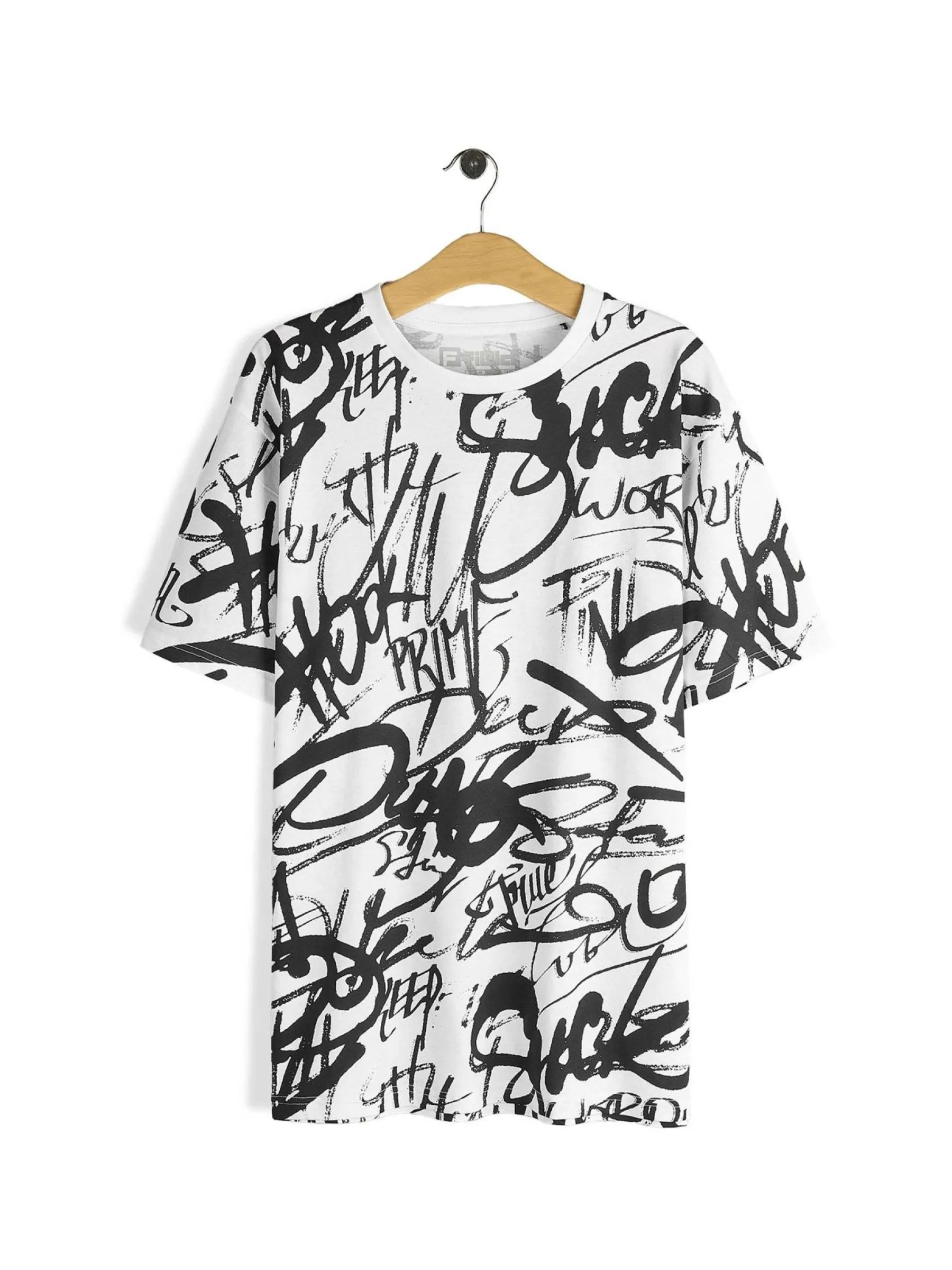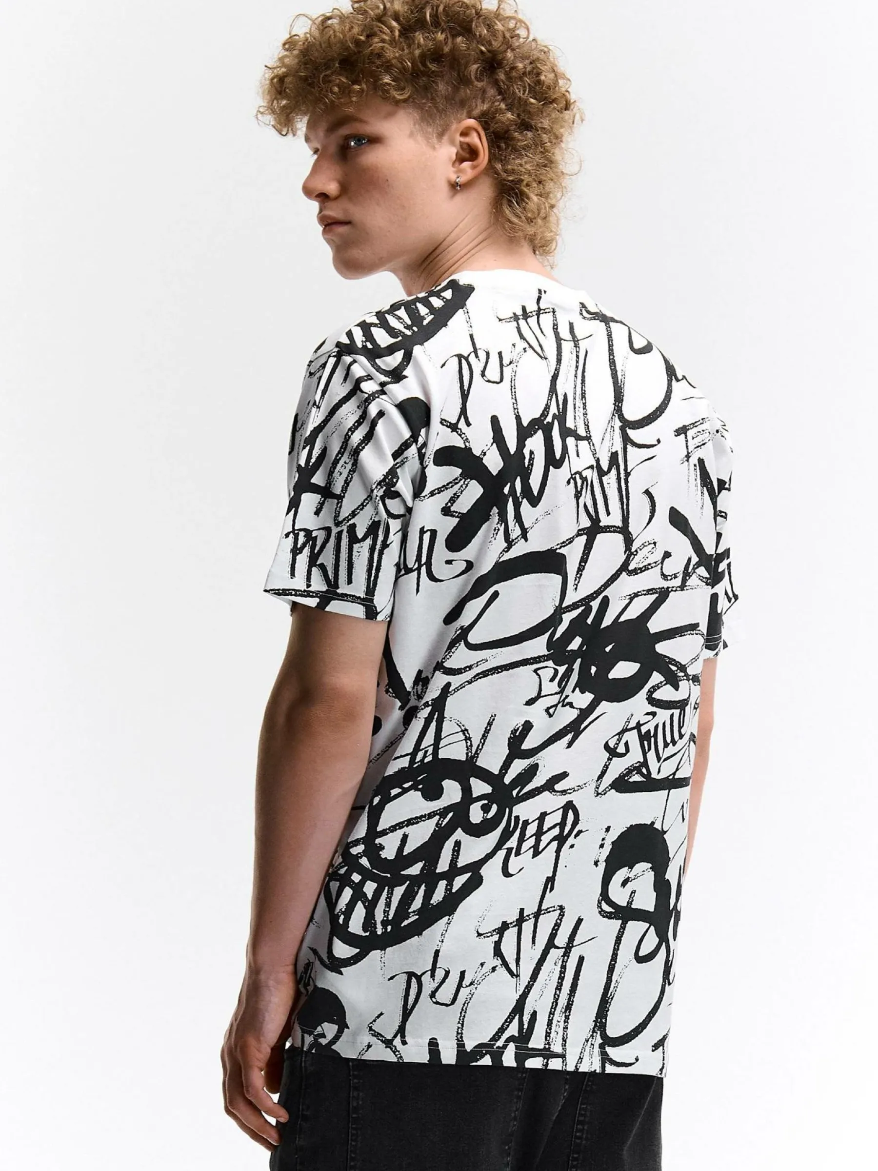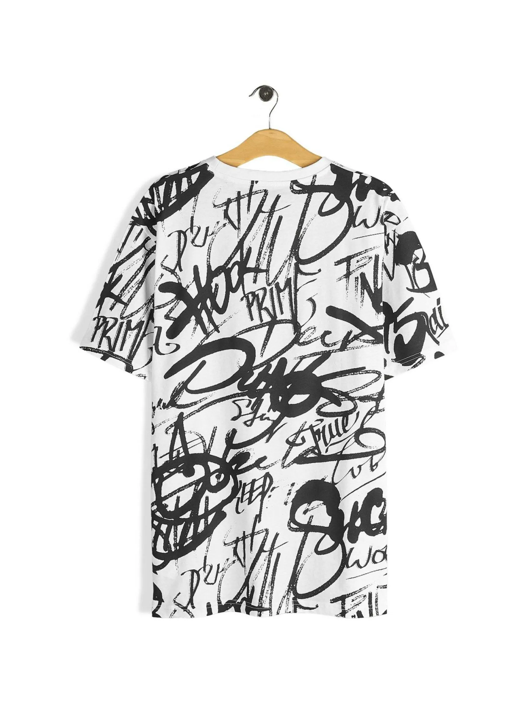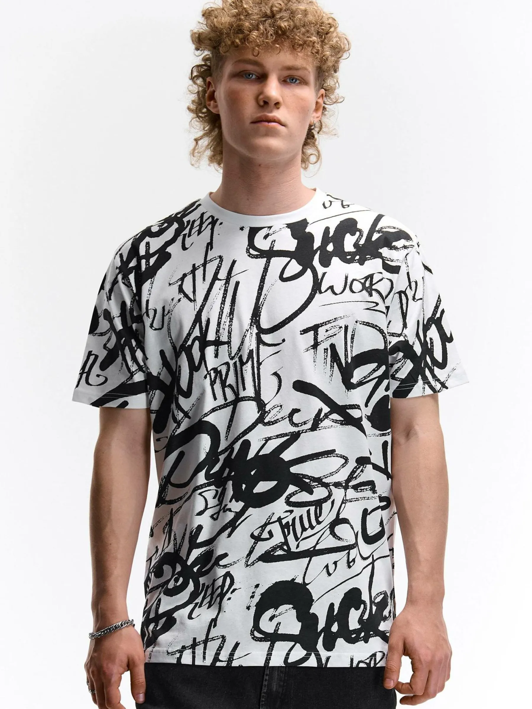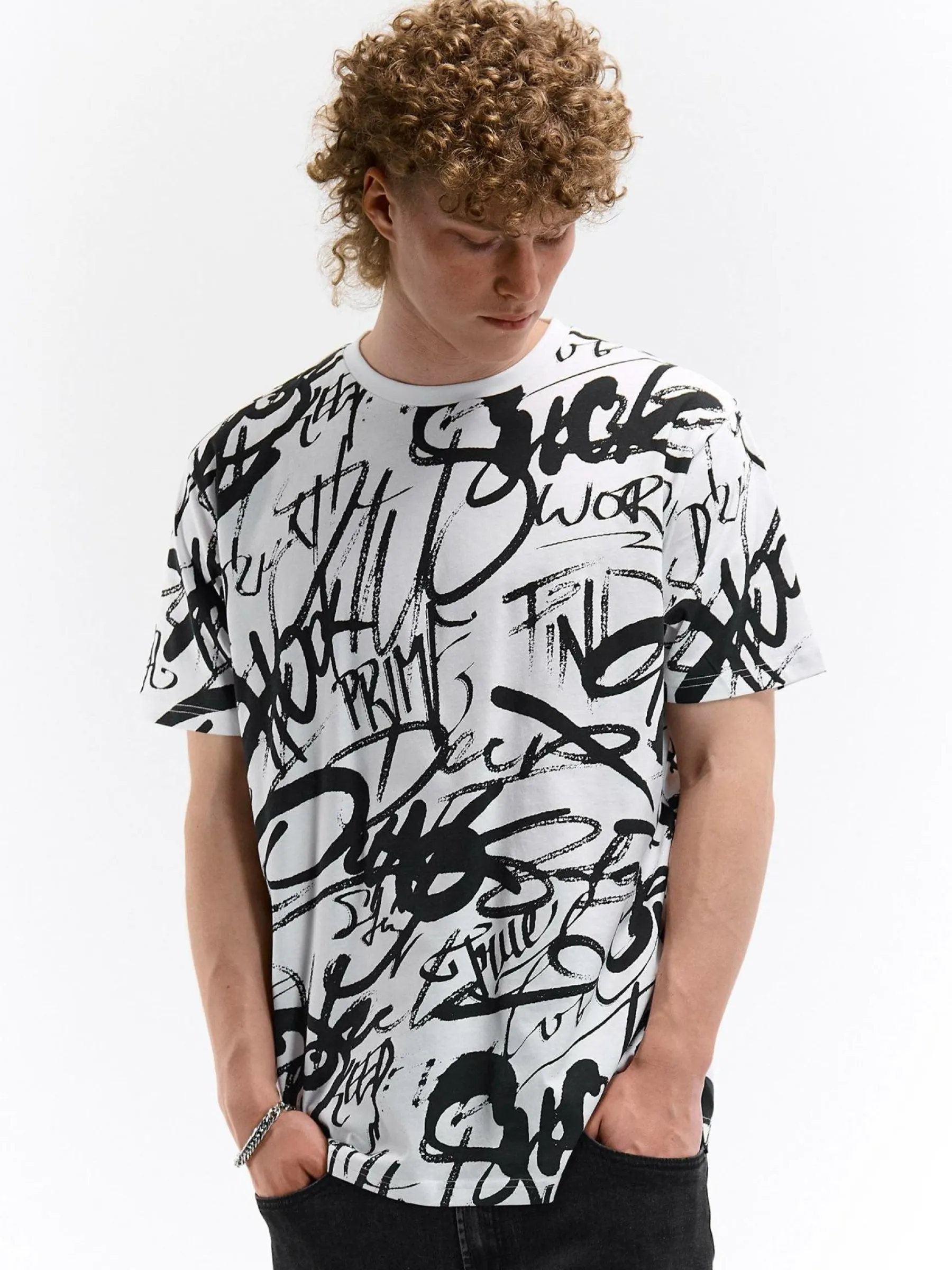 Kolor: białyKrój: regularTyp: koszulkaRekaw: krótki rękawPattern style: z nadrukiemDetal: nad głowąMateriał: bawe…