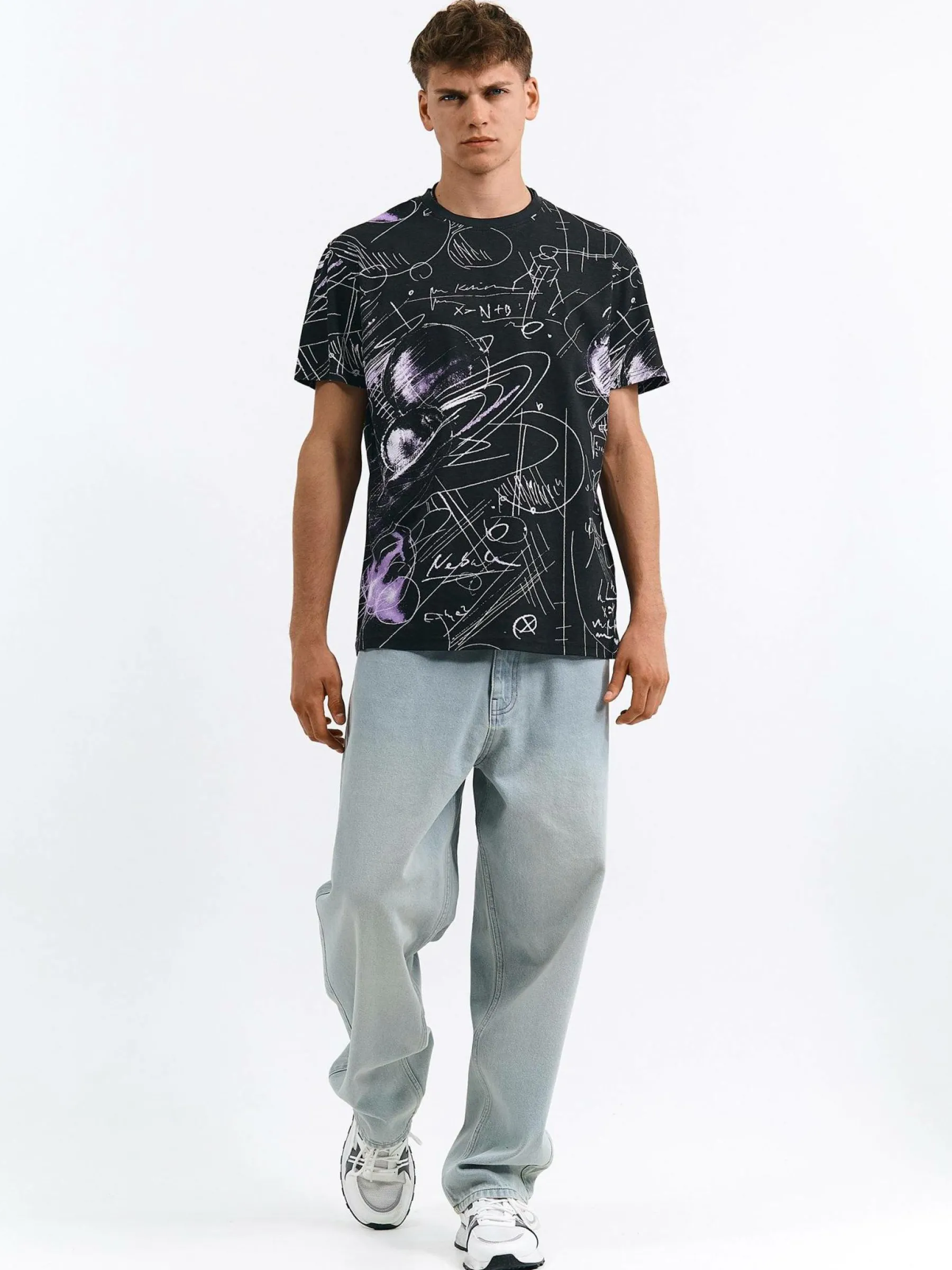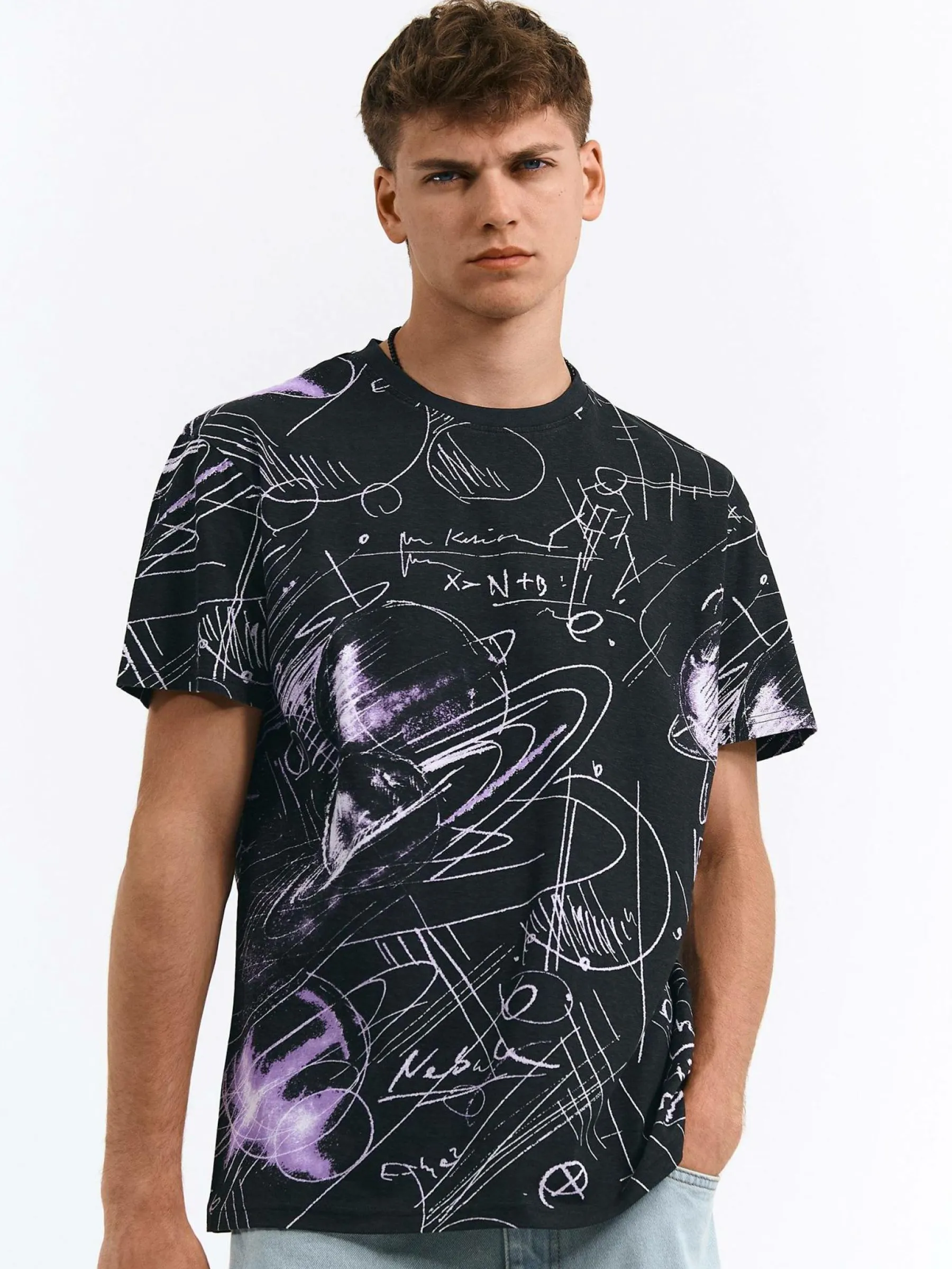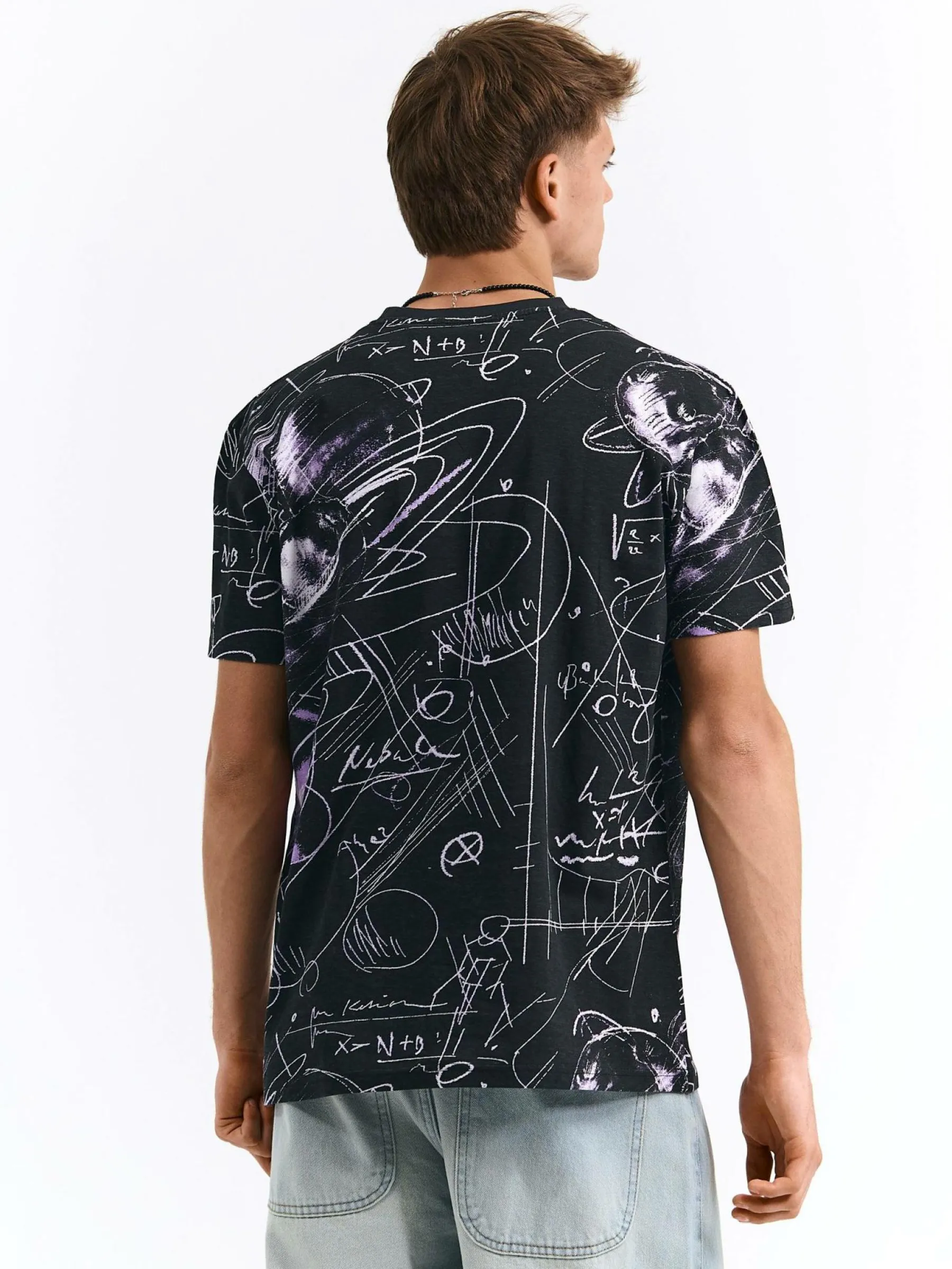 Kolor: czarnyKrój: regularTyp: koszulkaRekaw: krótki rękawPattern style: z nadrukiemDetal: nad głowąMateriał: bawe…