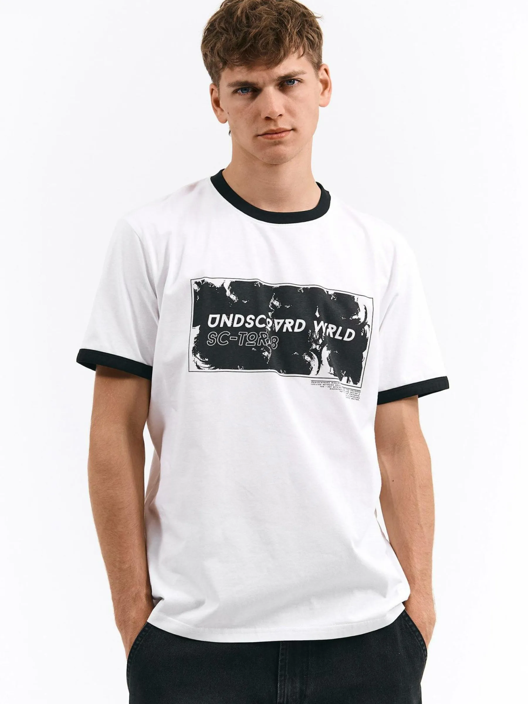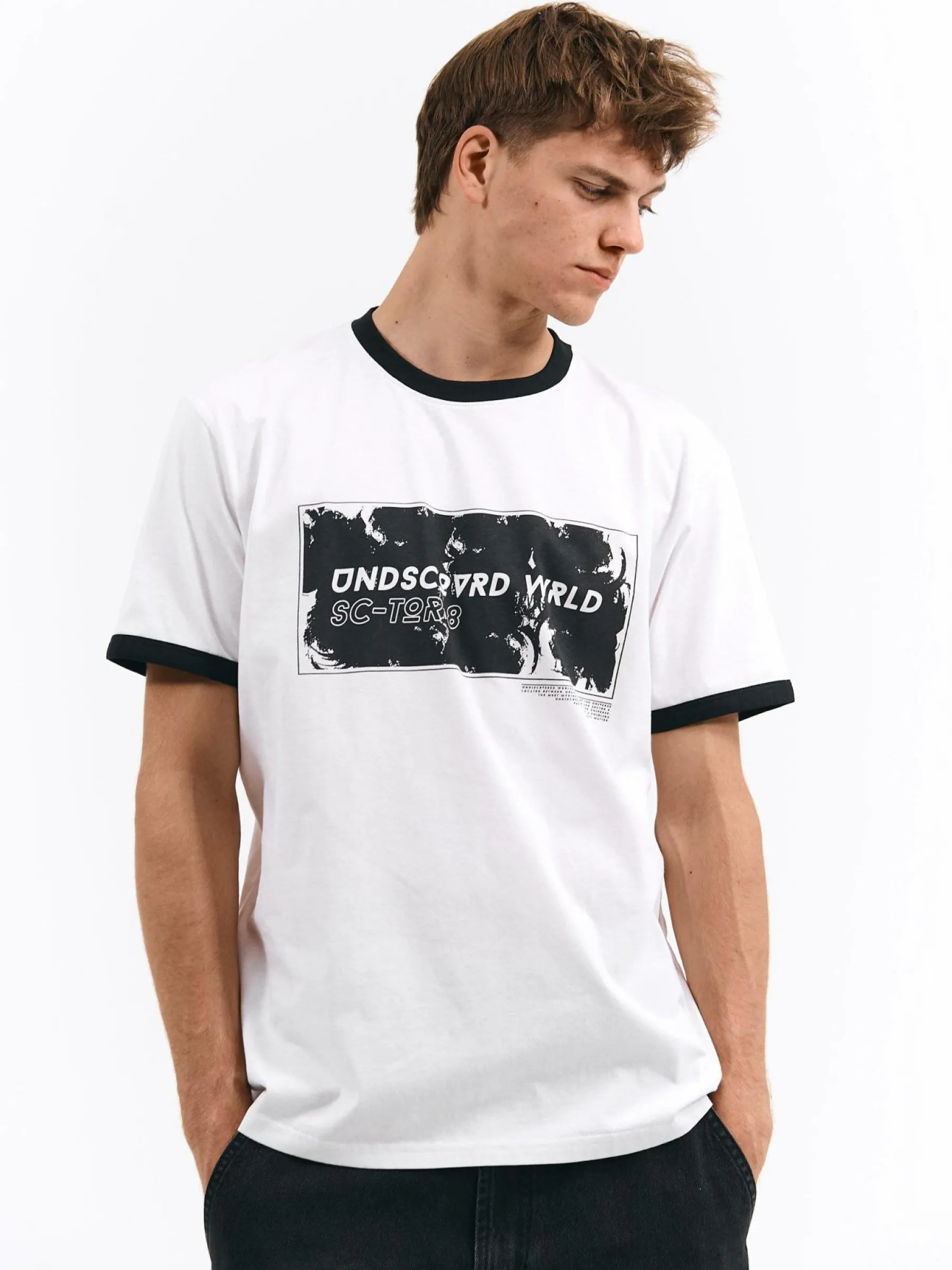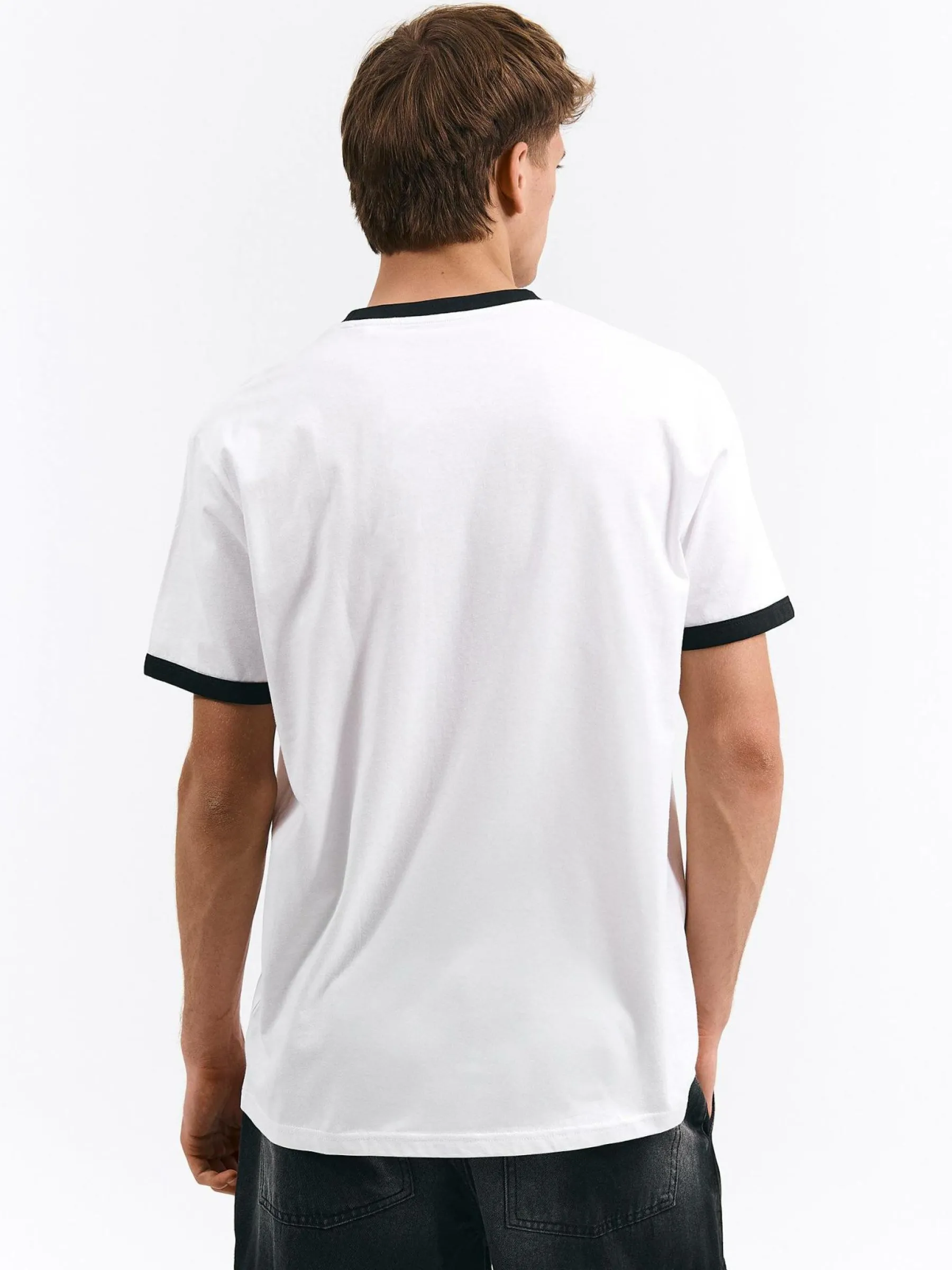 Kolor: białyKrój: regularTyp: koszulkaRekaw: krótki rękawPattern style: z nadrukiemDetal: nad głowąMateriał: bawe…