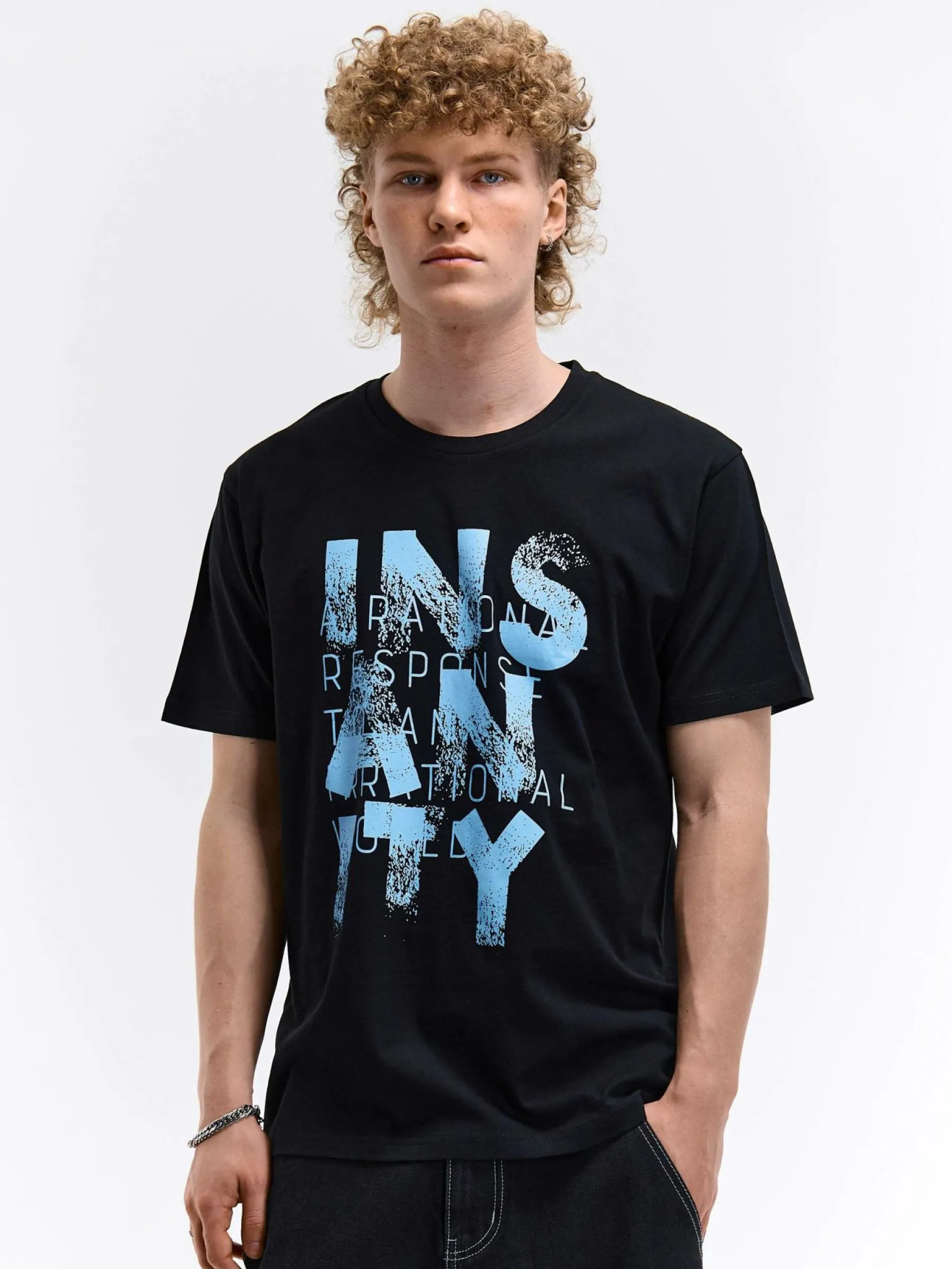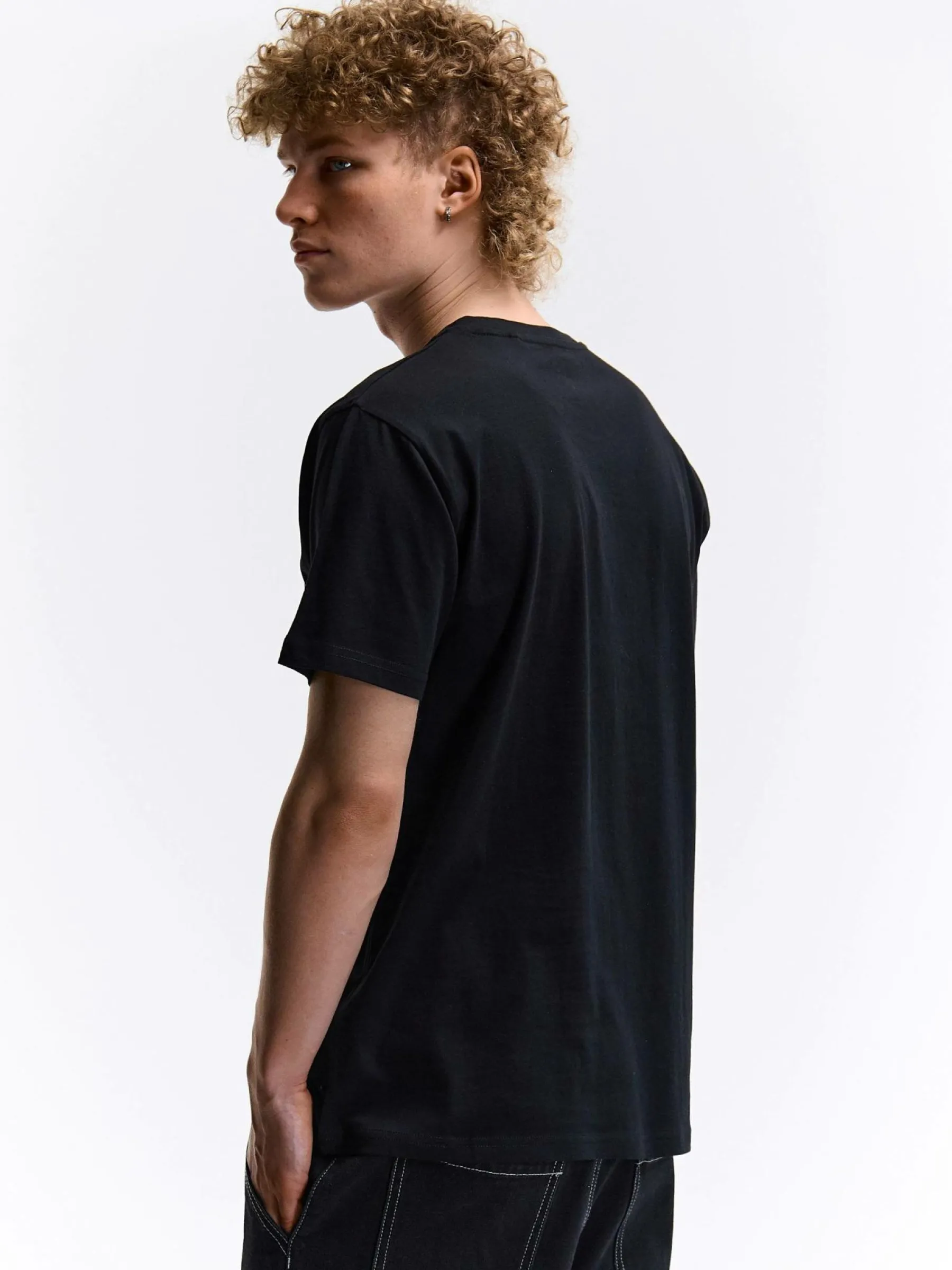 Kolor: czarnyKrój: regularTyp: koszulkaRekaw: krótki rękawPattern style: z nadrukiemDetal: nad głowąMateriał: bawe…
