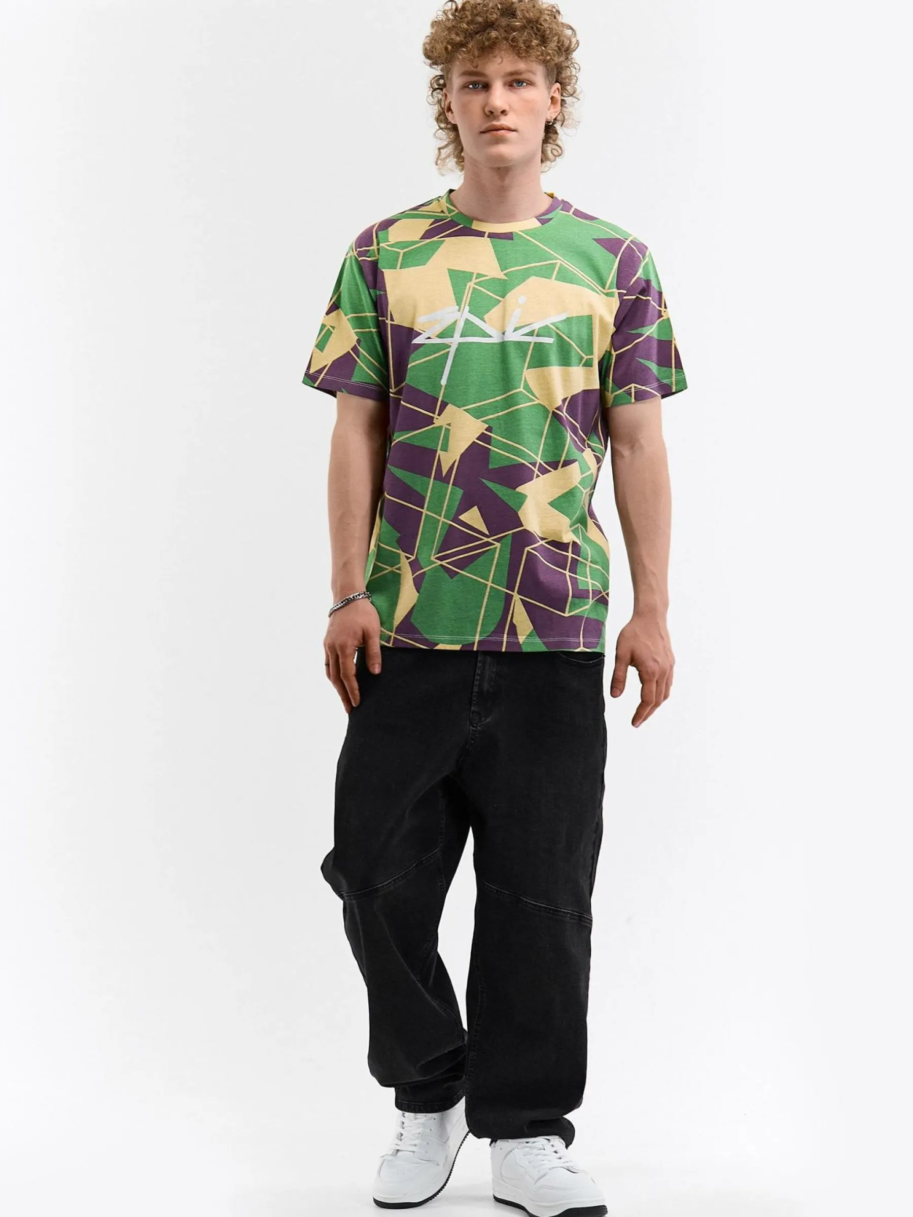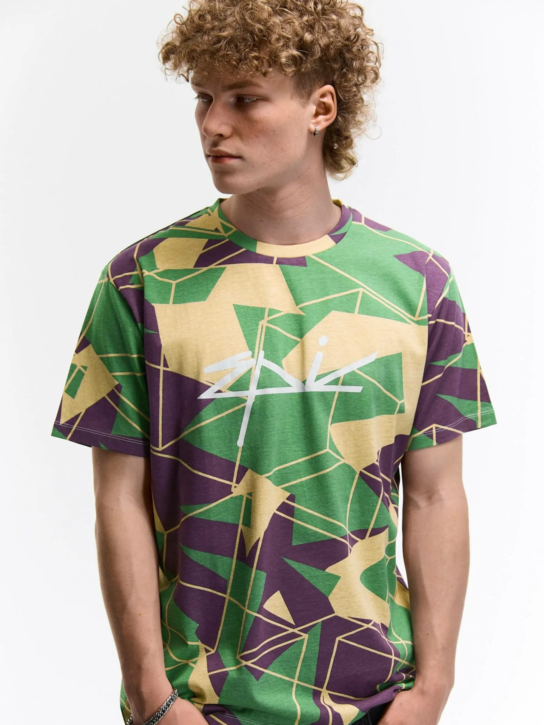 Kolor: zielonyKrój: regularTyp: koszulkaRekaw: krótki rękawPattern style: z nadrukiemDetal: nad głowąMateriał: baw…