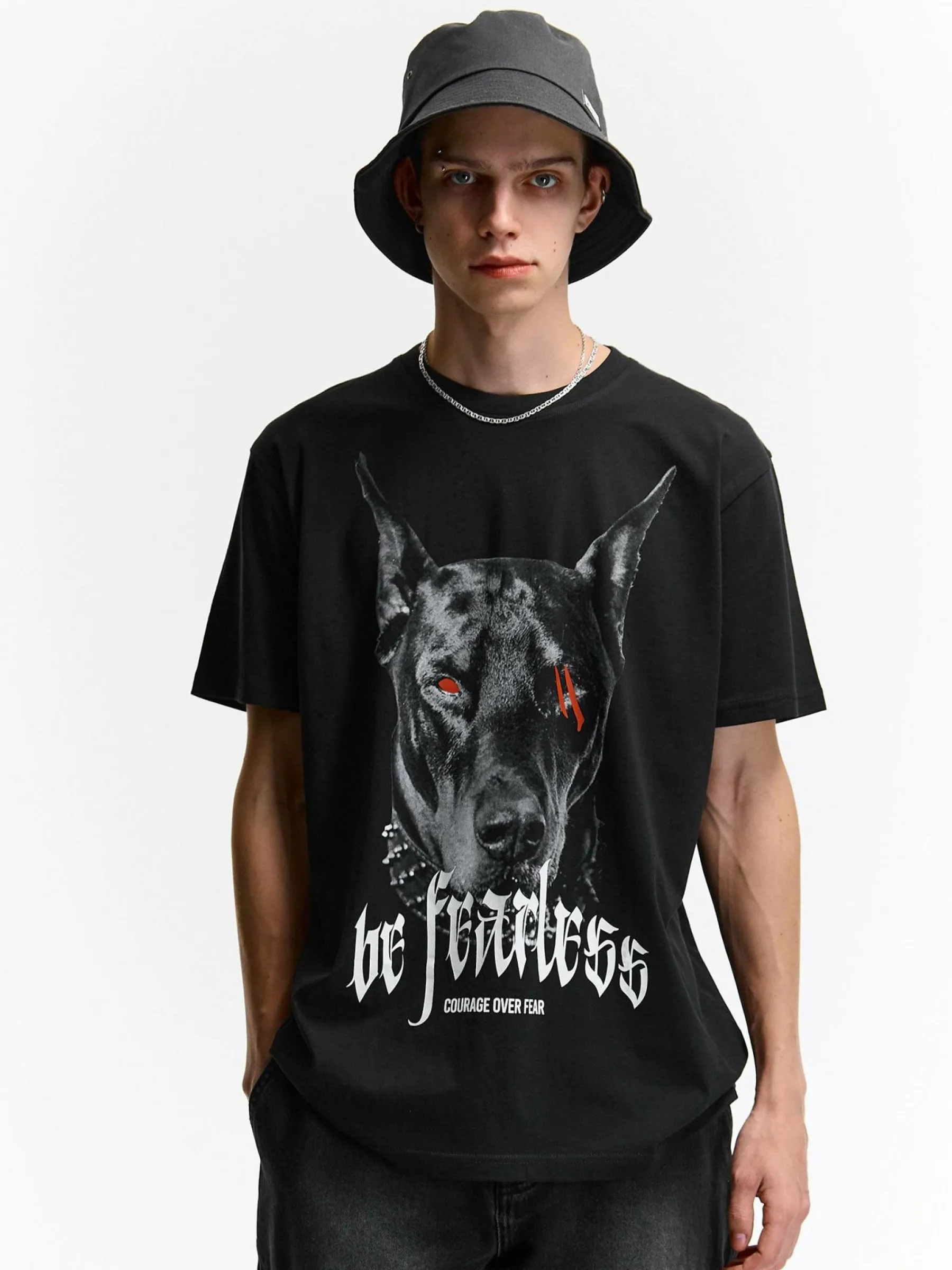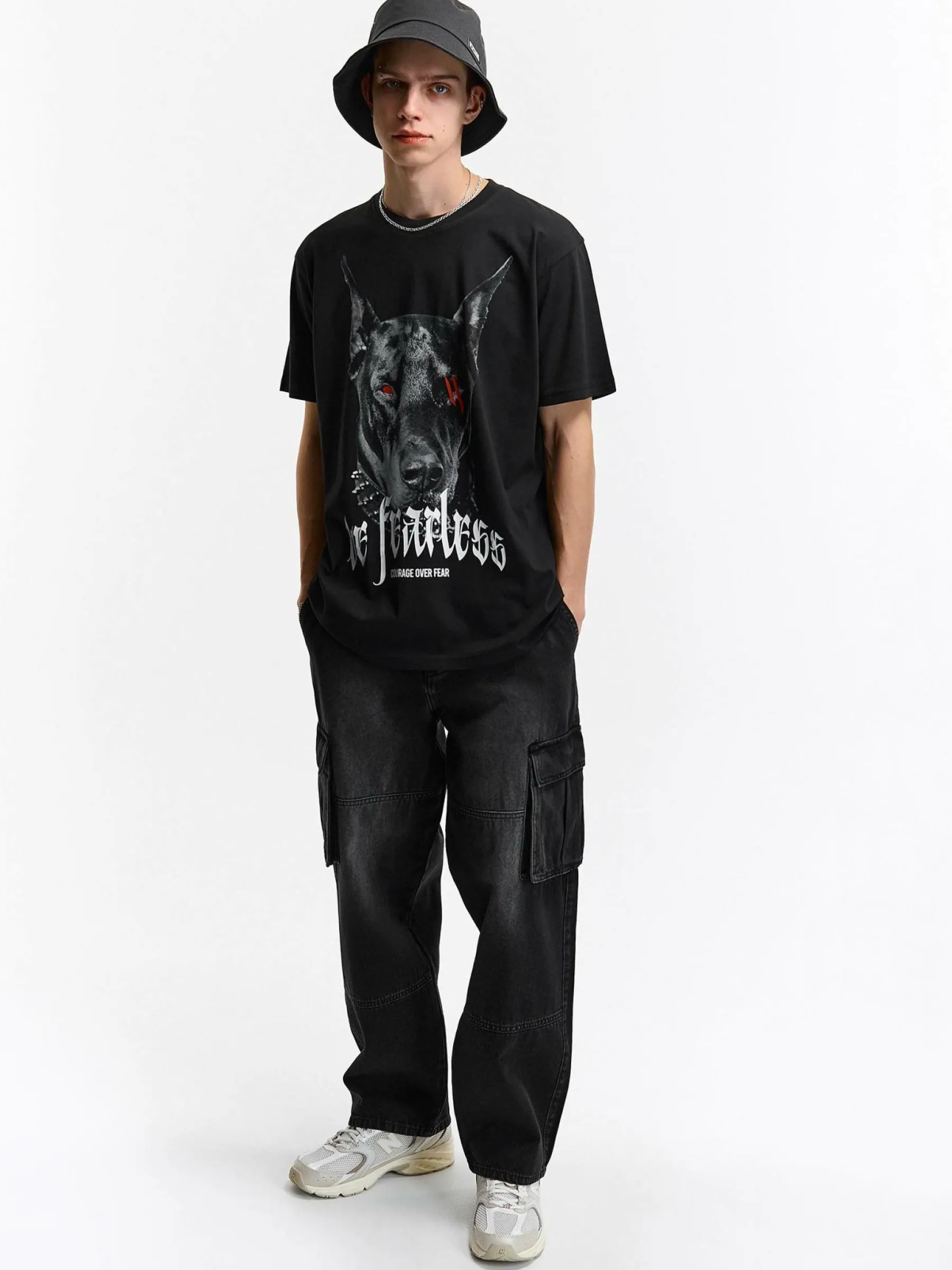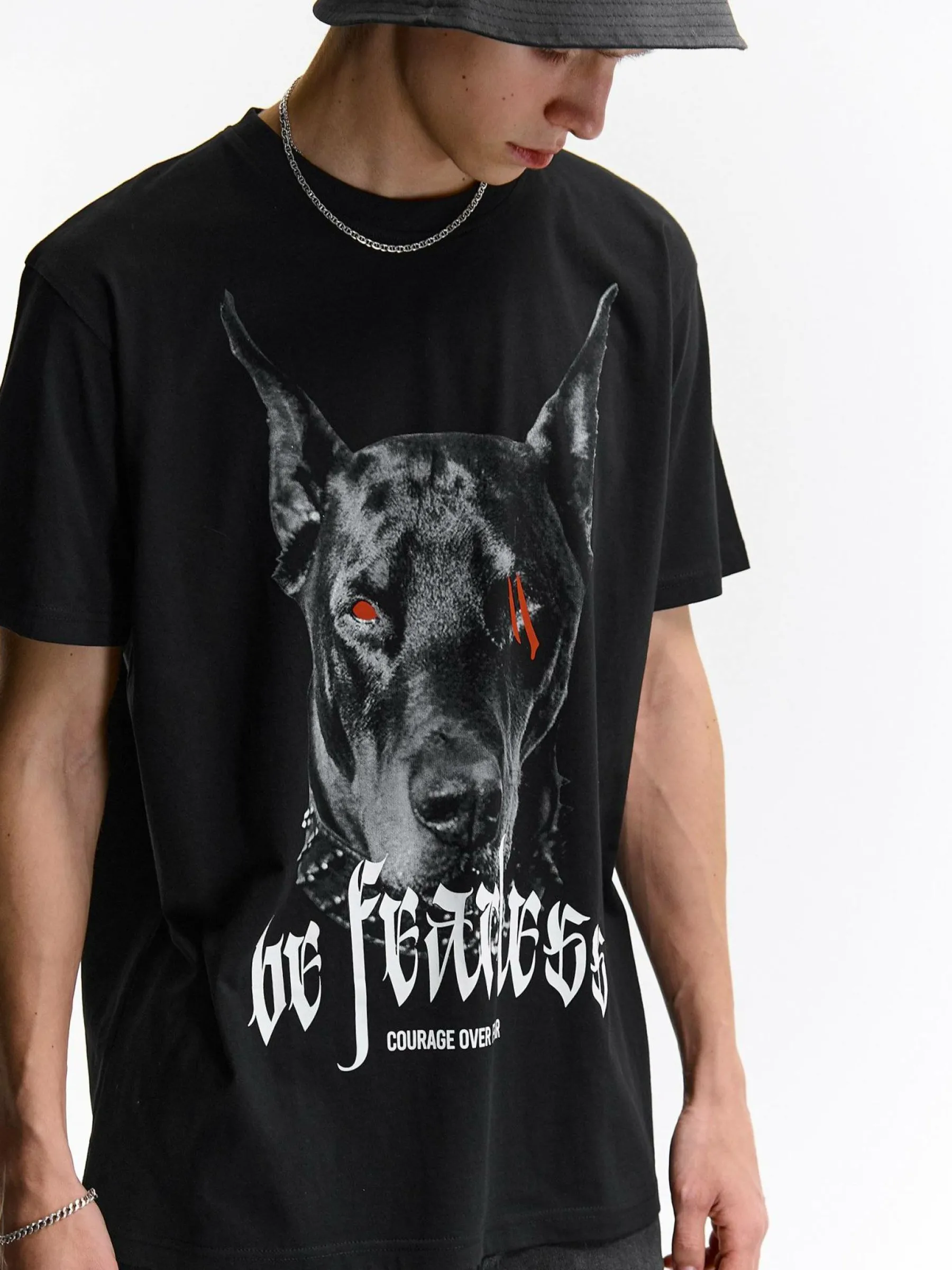 Kolor: czarnyKrój: regularTyp: koszulkaRekaw: krótki rękawPattern style: z nadrukiemDetal: nad głowąMateriał: bawe…