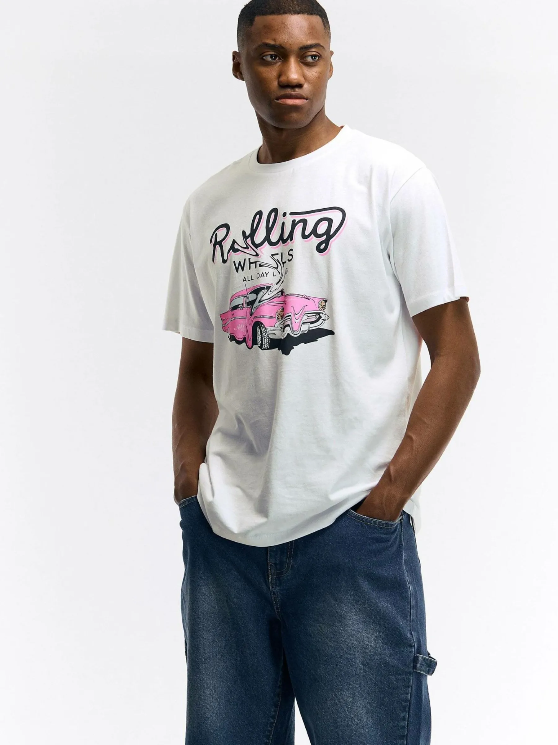 Kolor: białyKrój: regularTyp: koszulkaRekaw: krótki rękawPattern style: z nadrukiemDetal: nad głowąMateriał: bawe…