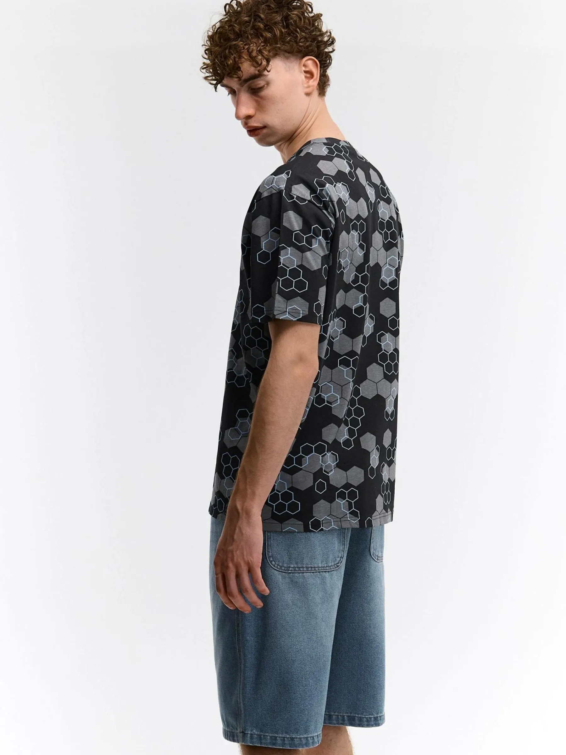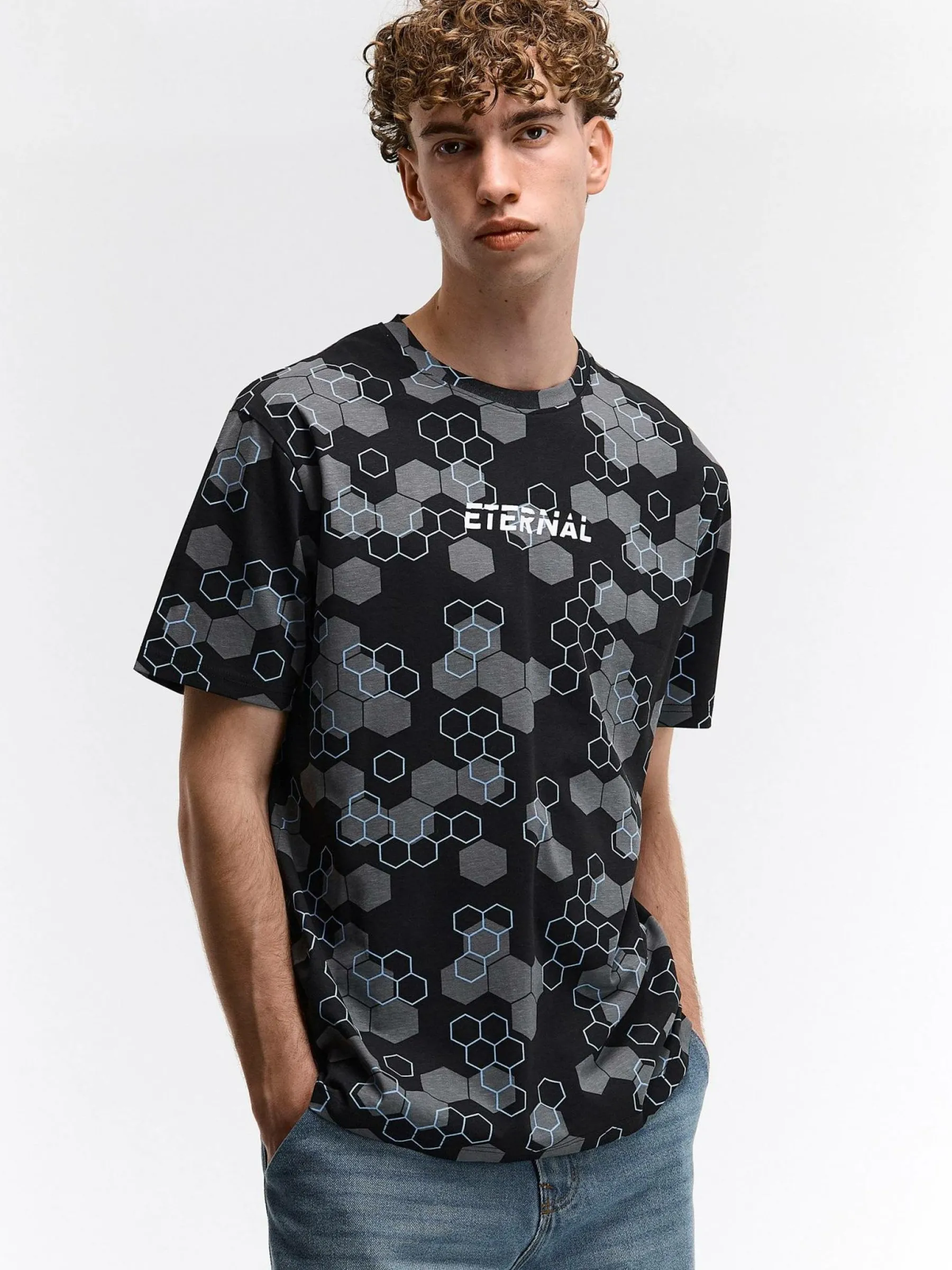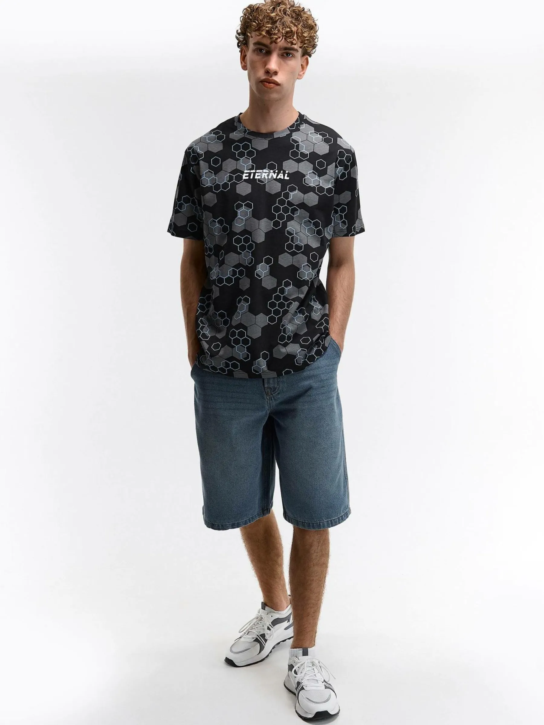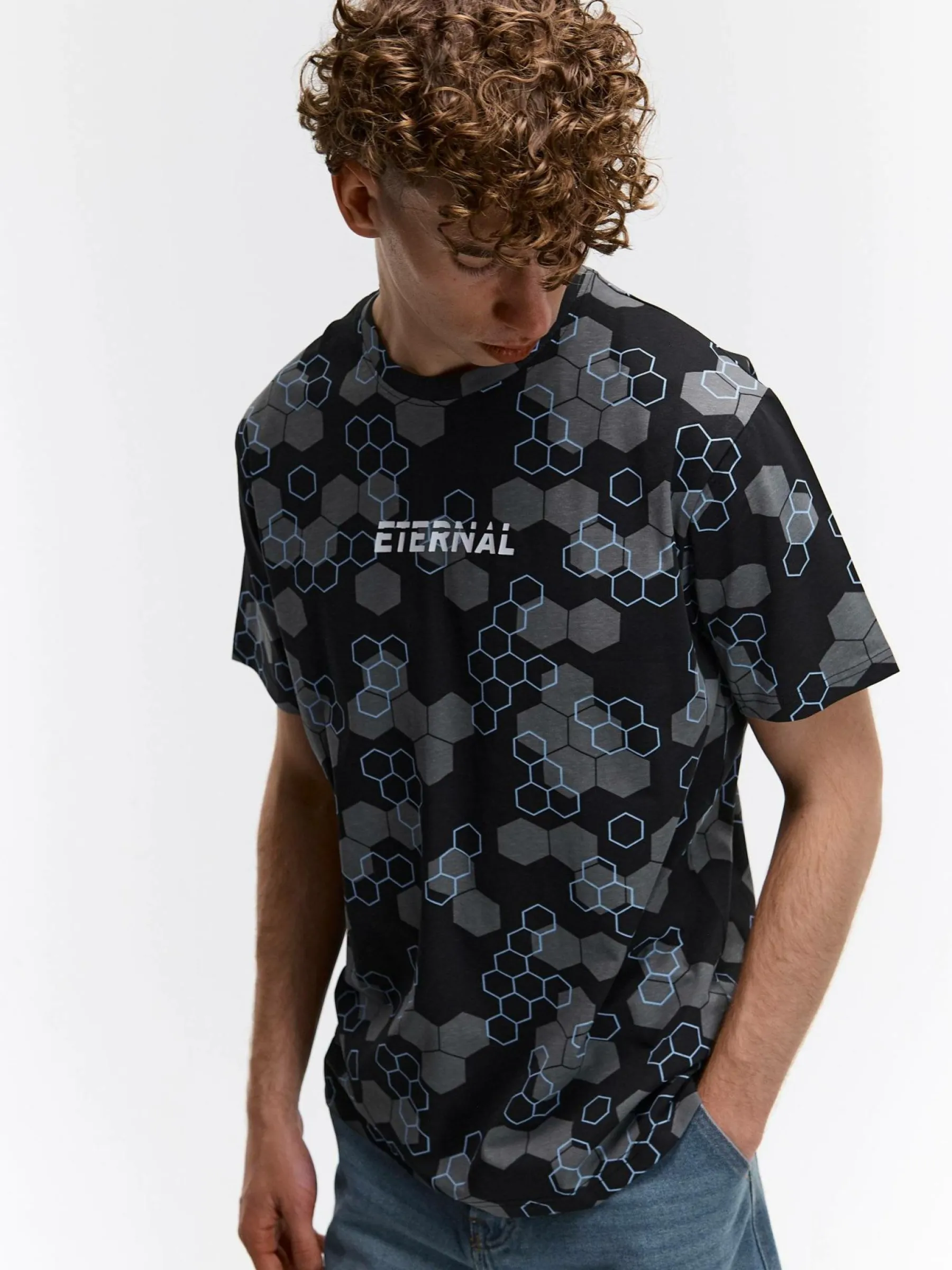 Kolor: czarnyKrój: regularTyp: koszulkaRekaw: krótki rękawPattern style: z nadrukiemDetal: nad głową, ze znakiemMat…