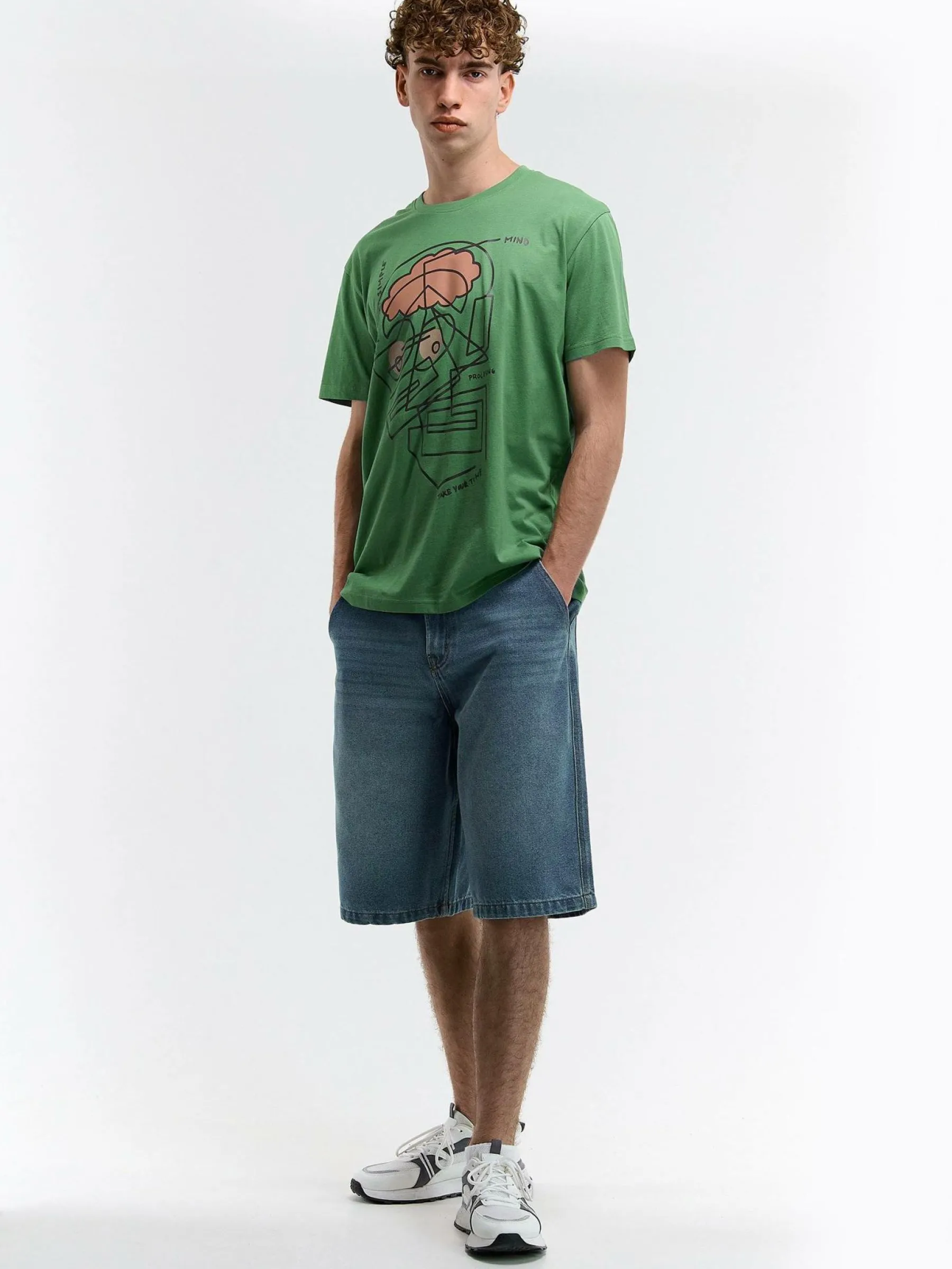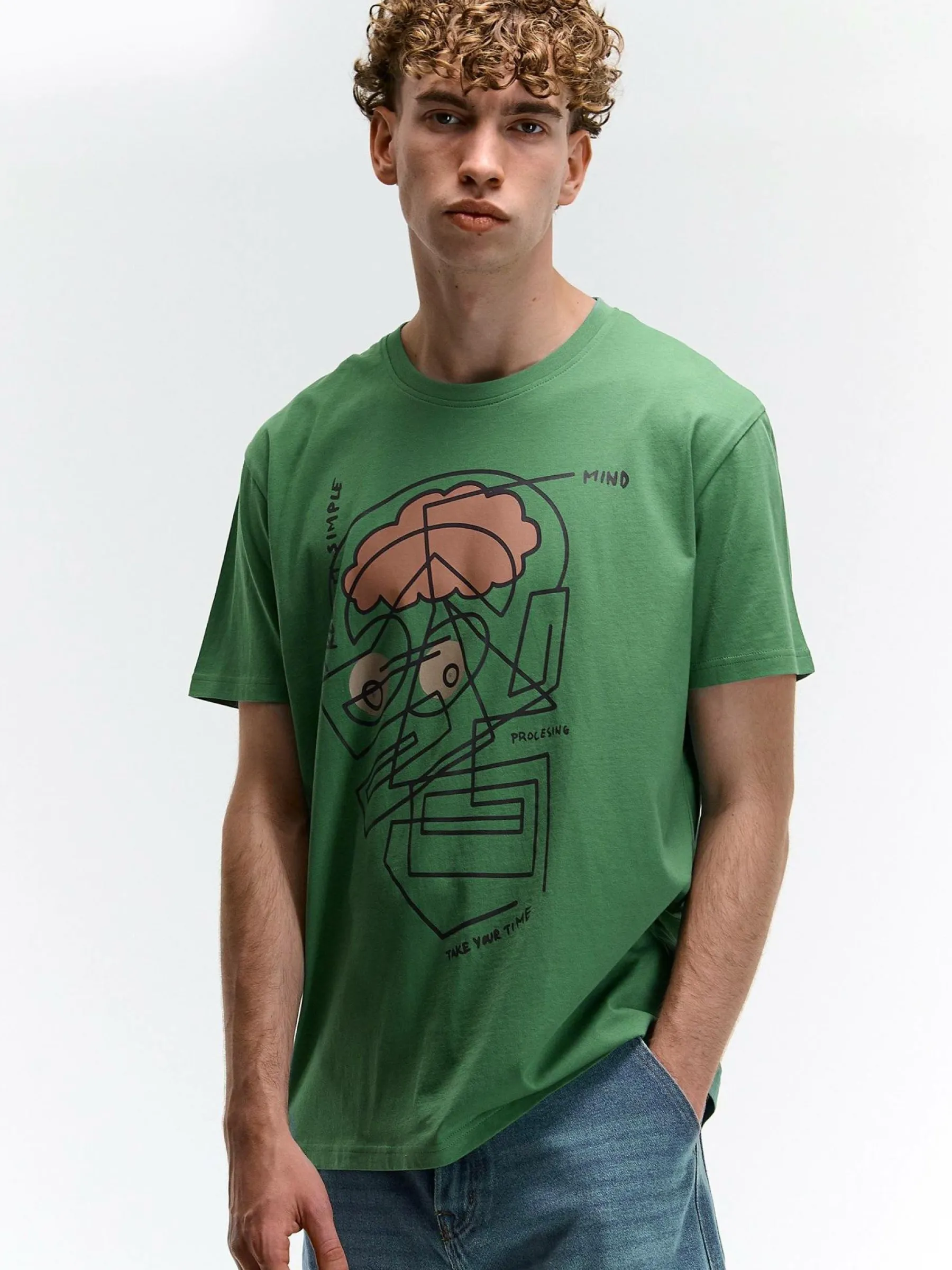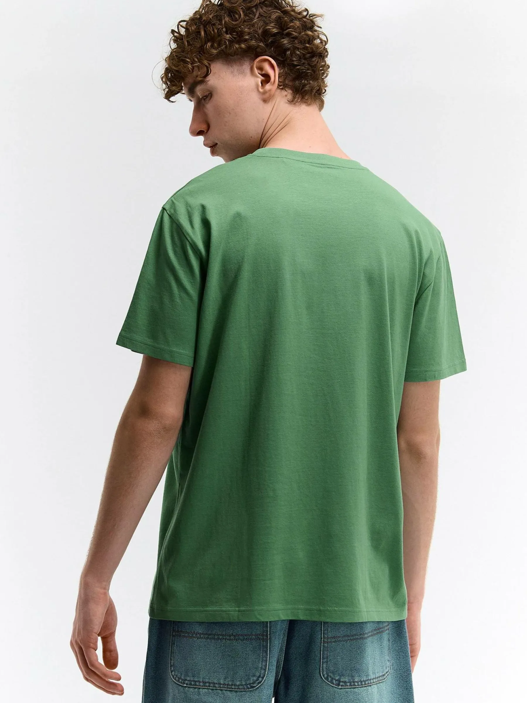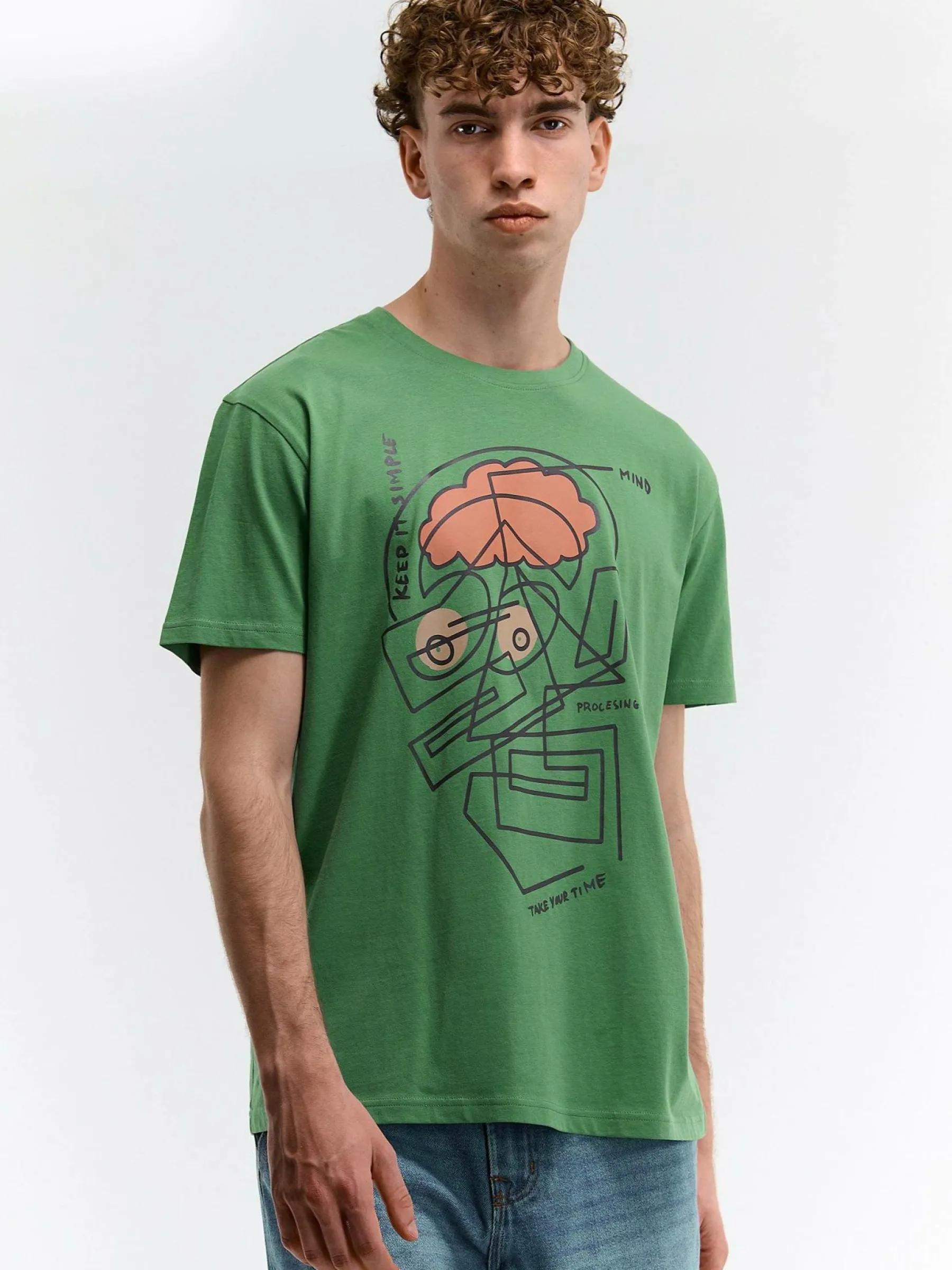 Kolor: zielonyKrój: regularTyp: koszulkaRekaw: krótki rękawPattern style: z nadrukiemDetal: nad głowąMateriał: baw…