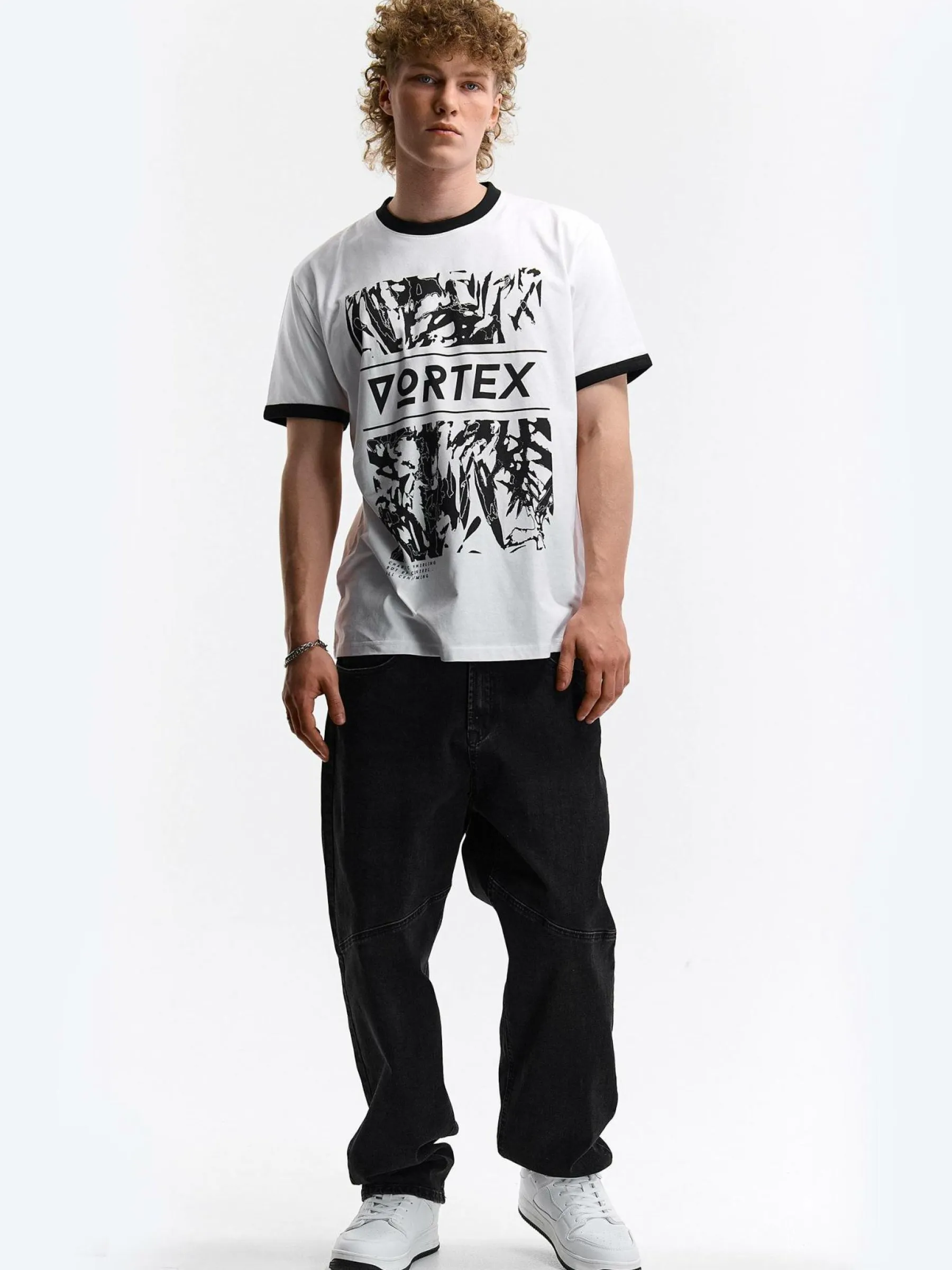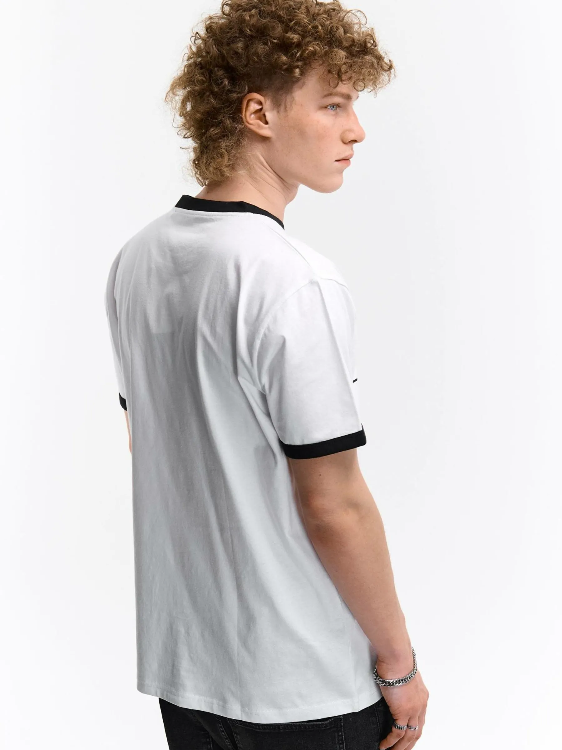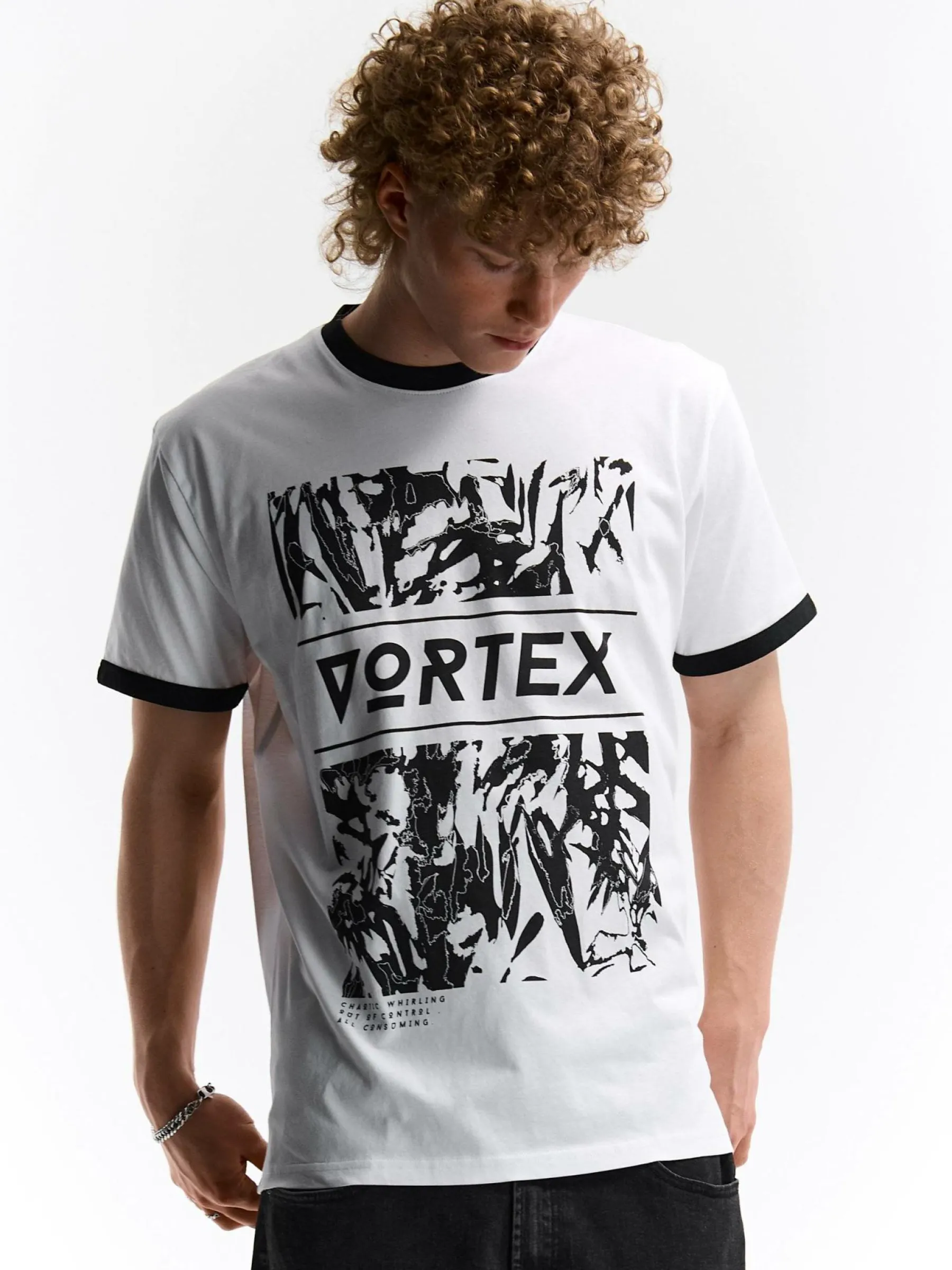 Kolor: białyKrój: regularTyp: koszulkaRekaw: krótki rękawPattern style: z nadrukiemDetal: nad głowąMateriał: bawe…