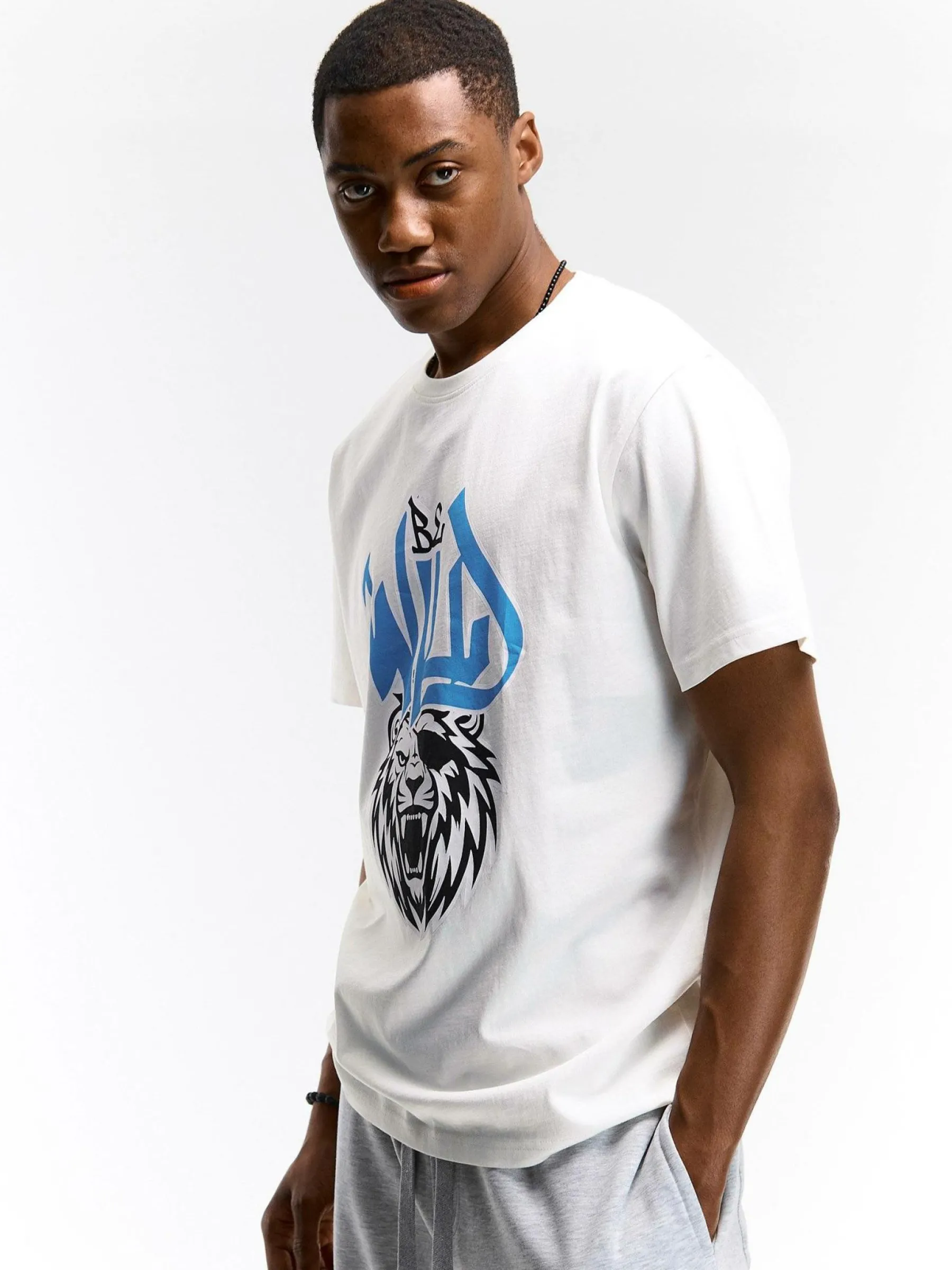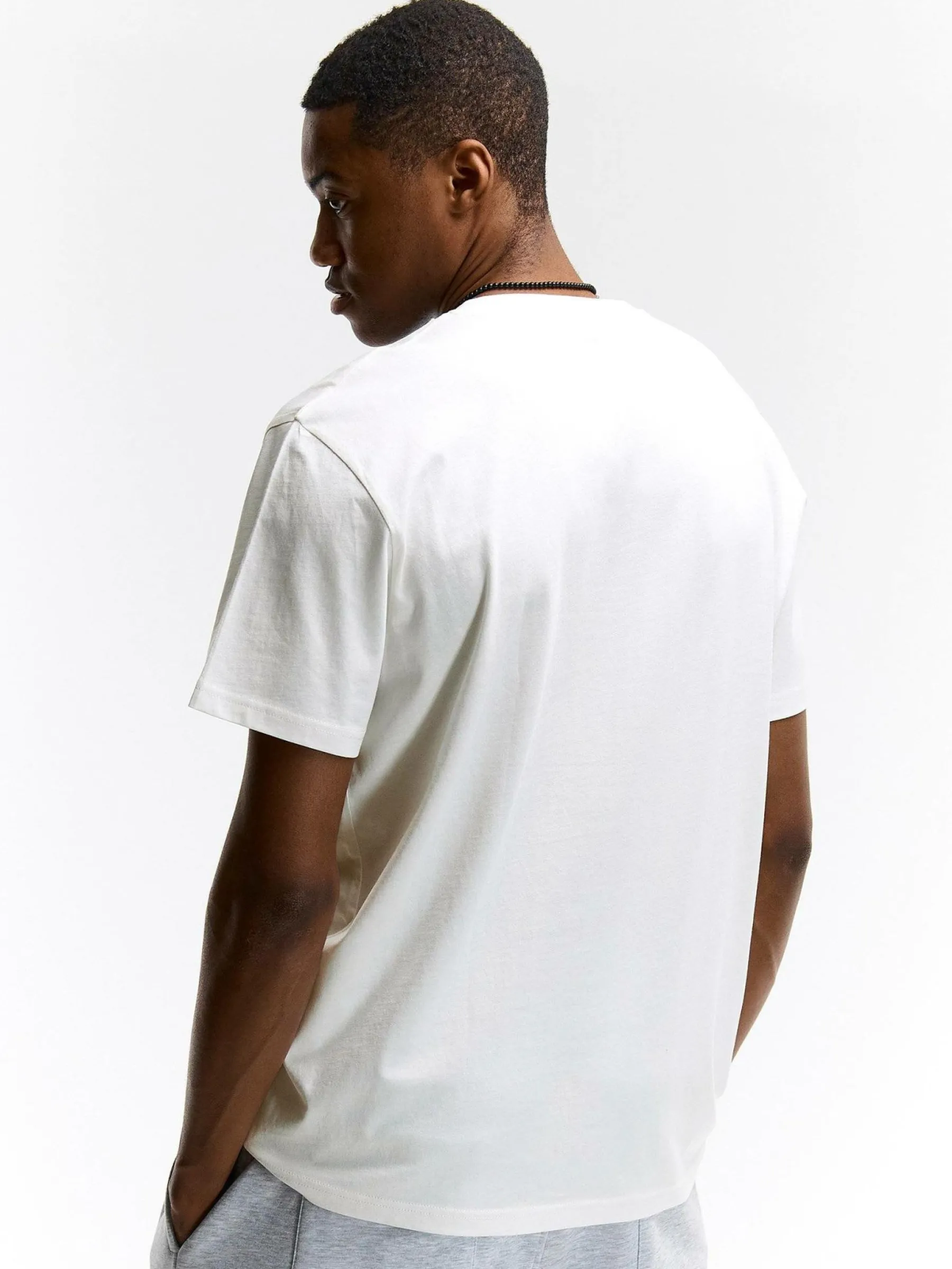Kolor: białyKrój: regularTyp: koszulkaRekaw: krótki rękawPattern style: z nadrukiemDetal: nad głowąMateriał: bawe…