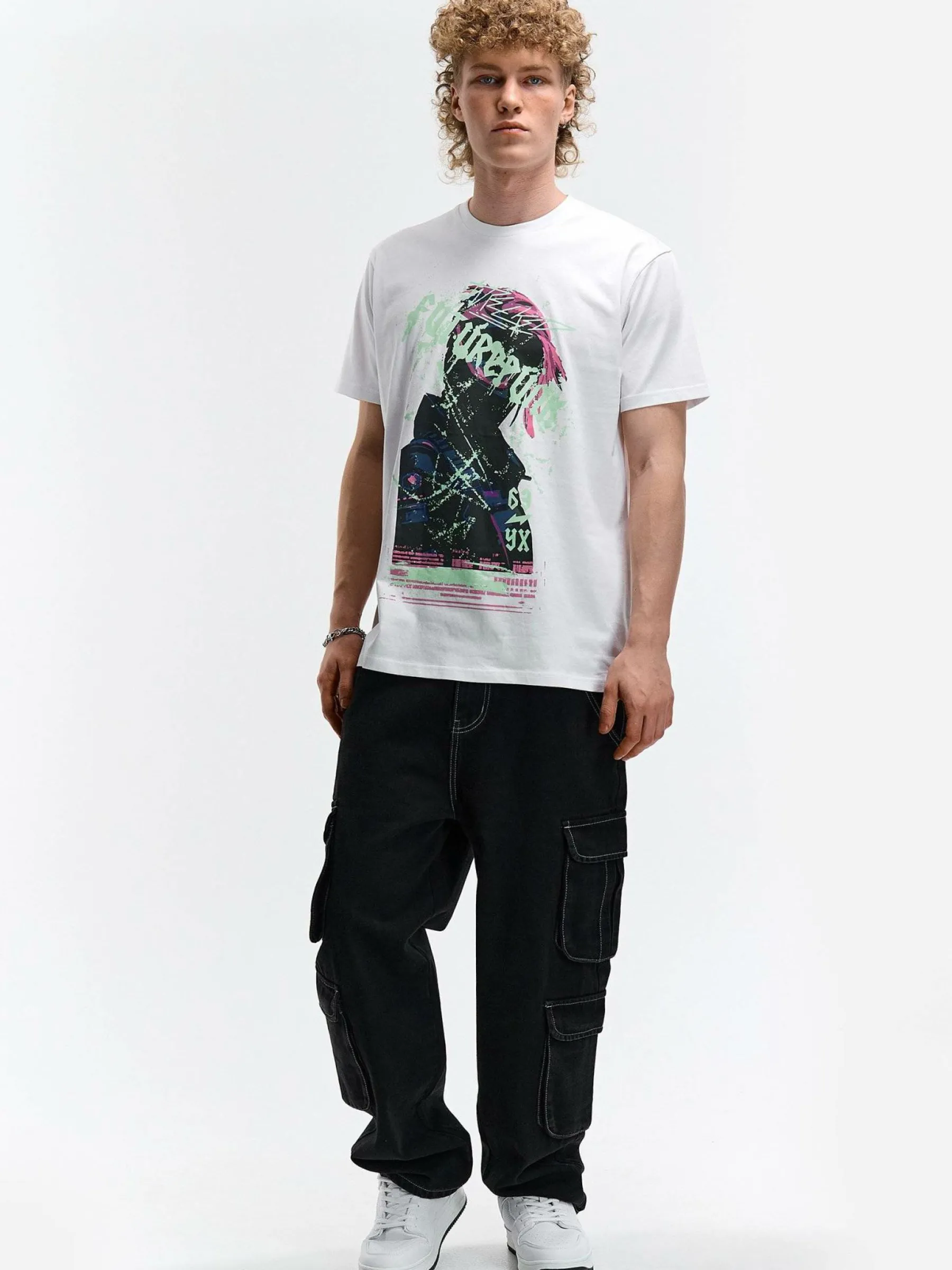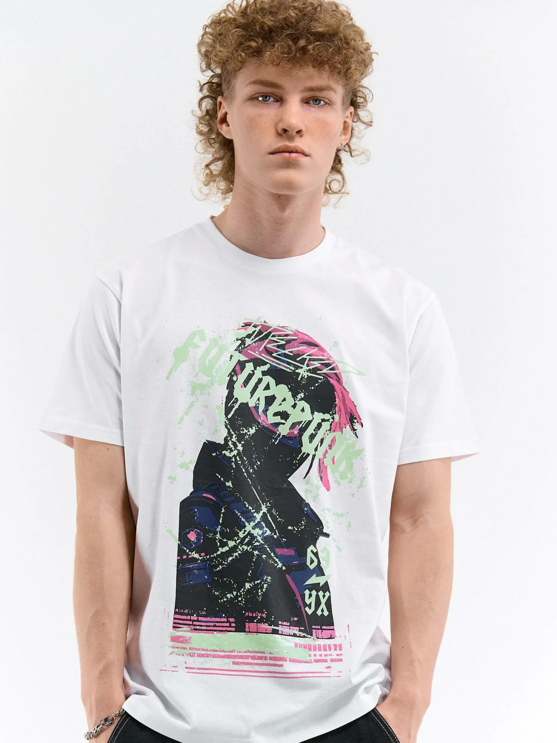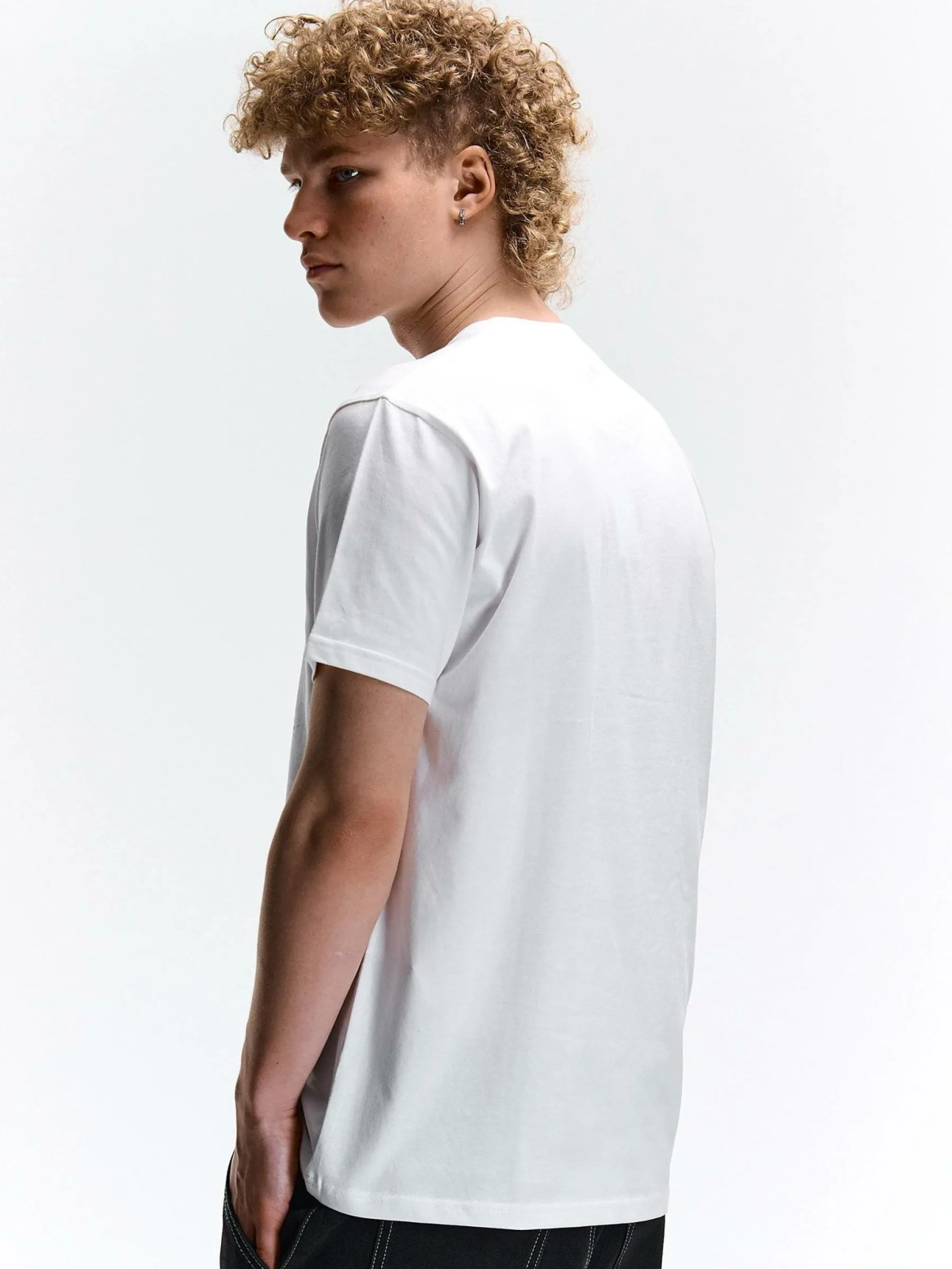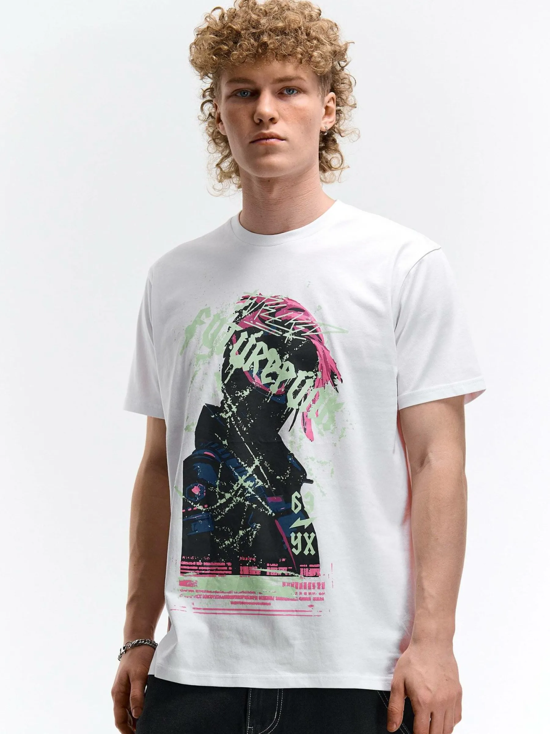 Kolor: białyKrój: regularTyp: koszulkaRekaw: krótki rękawPattern style: z nadrukiemDetal: nad głowąMateriał: bawe…
