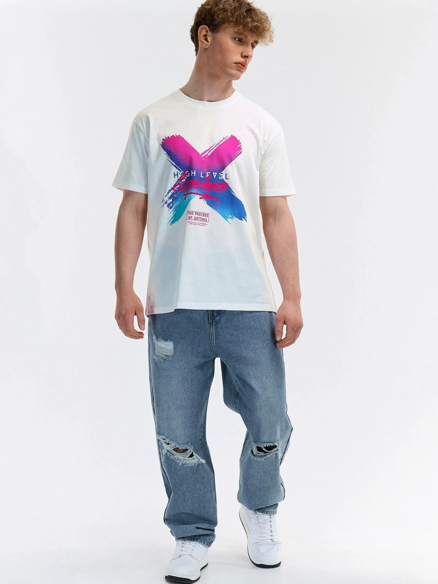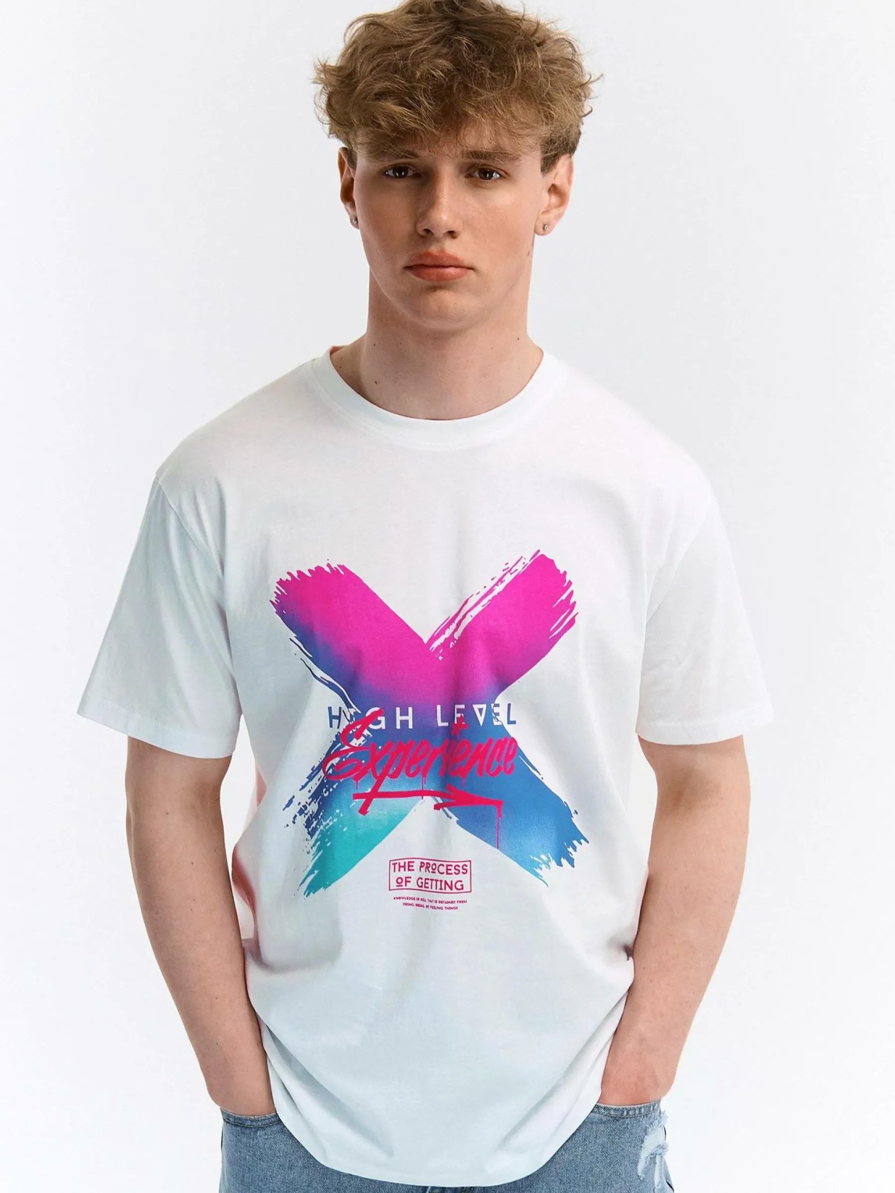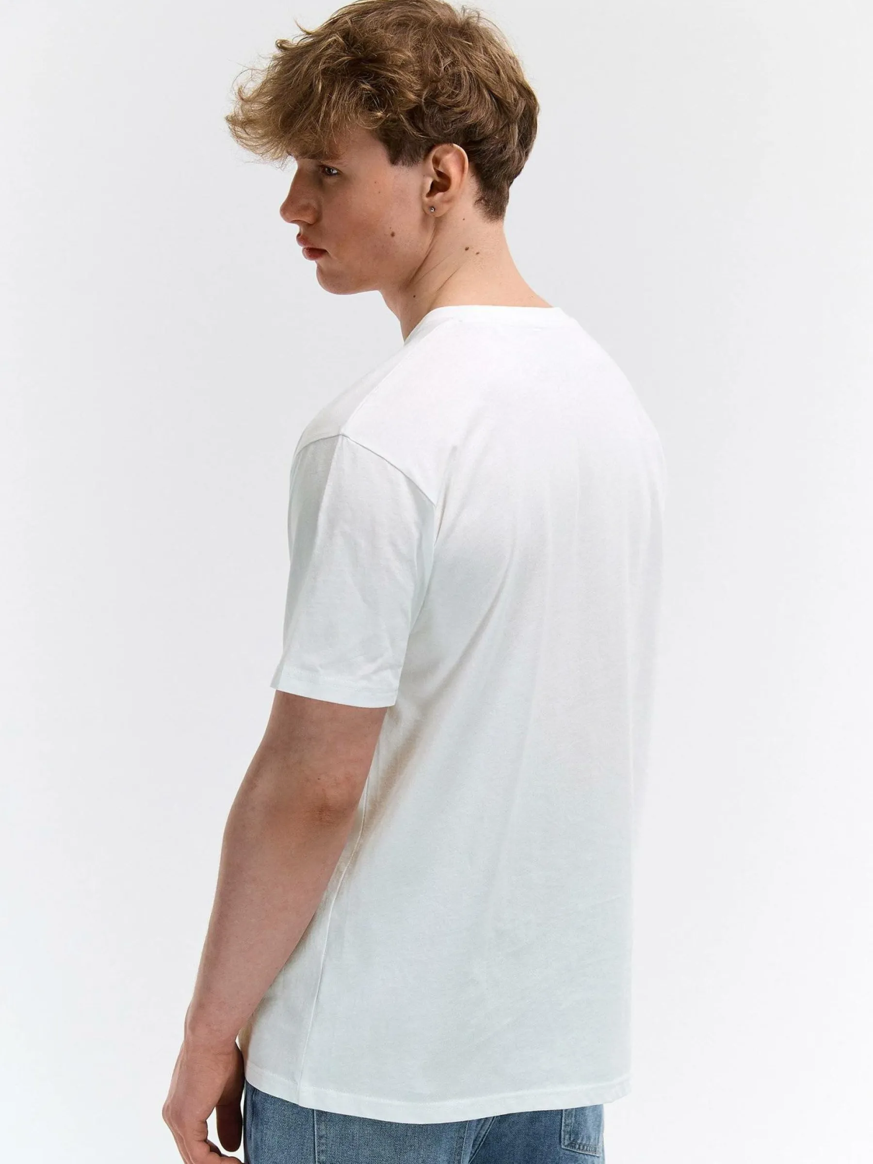 Kolor: białyKrój: regularTyp: koszulkaRekaw: krótki rękawPattern style: z nadrukiemDetal: nad głowąMateriał: bawe…