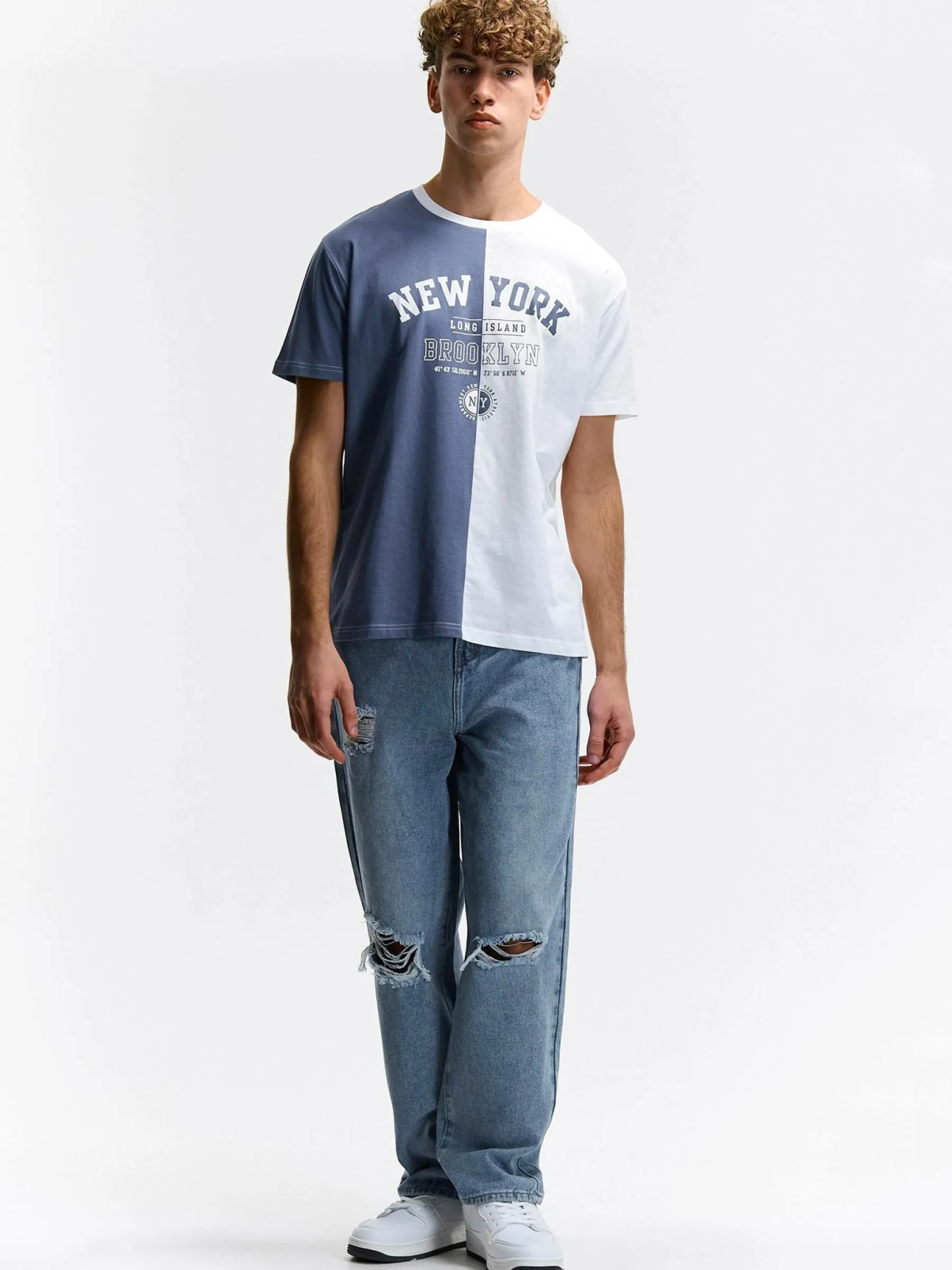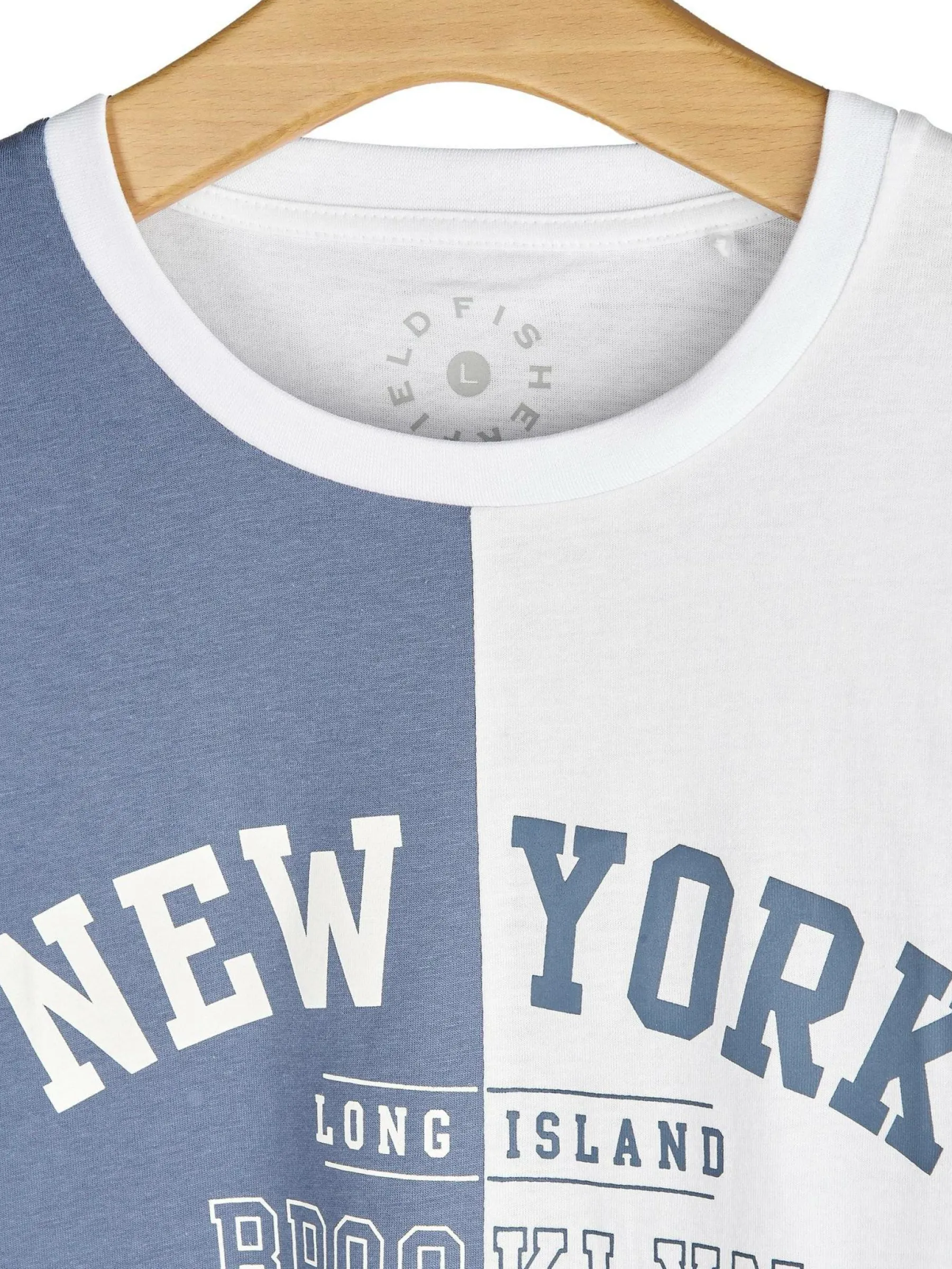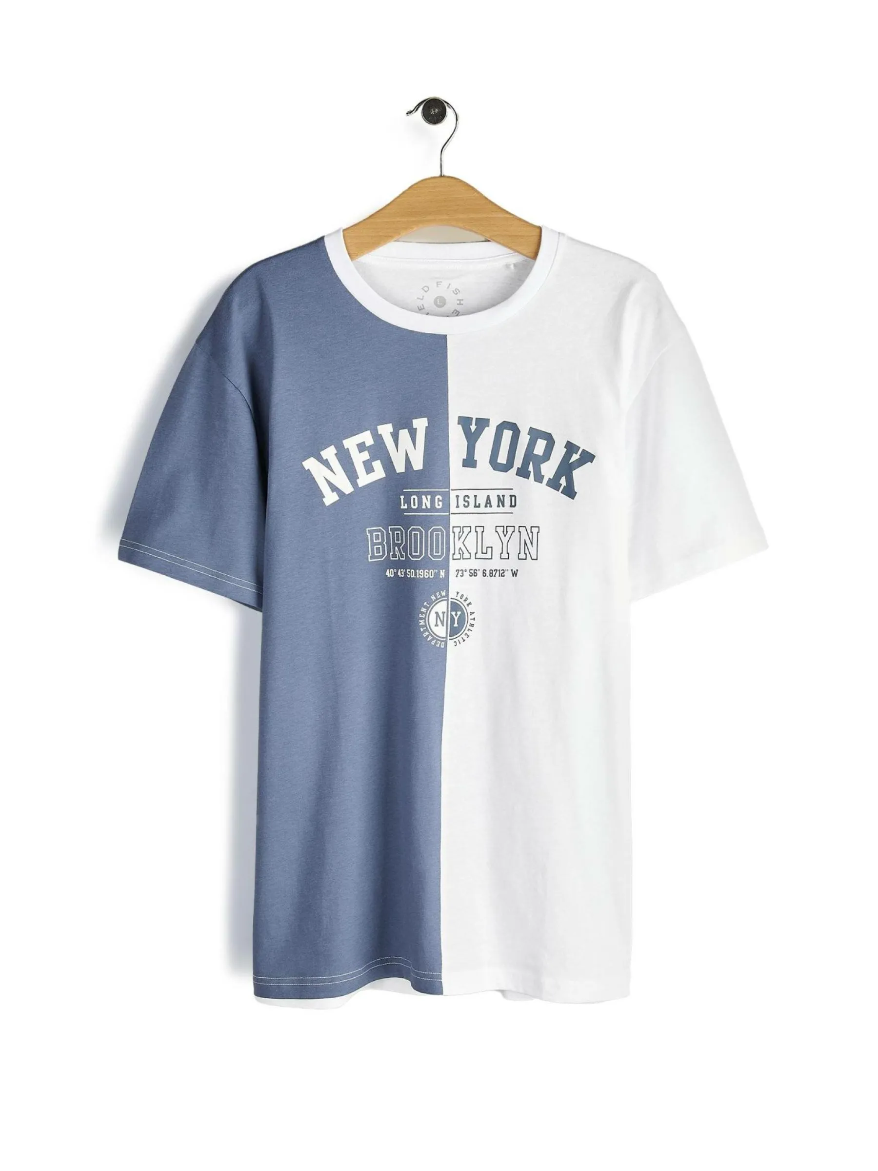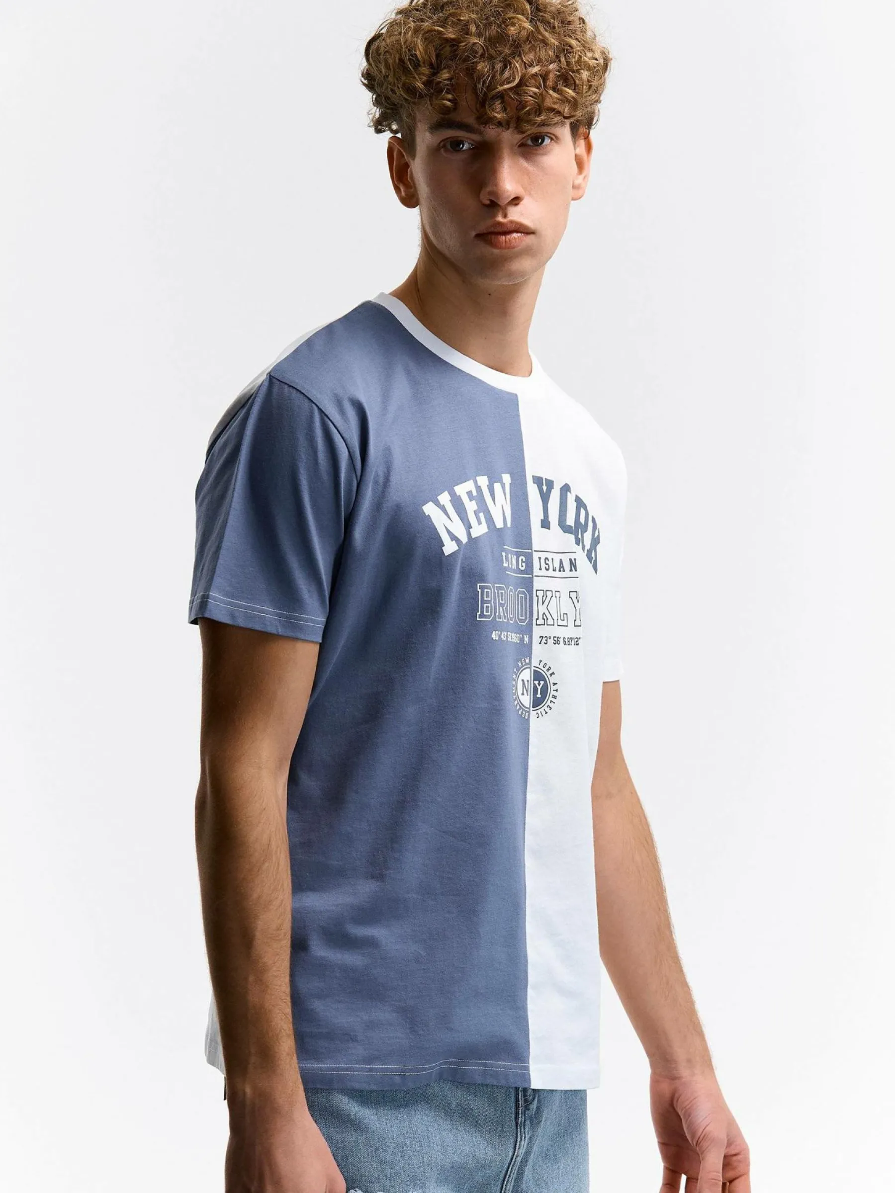 Kolor: niebieskiKrój: regularTyp: koszulkaRekaw: krótki rękawPattern style: z nadrukiemDetal: nad głowąMateriał: b…