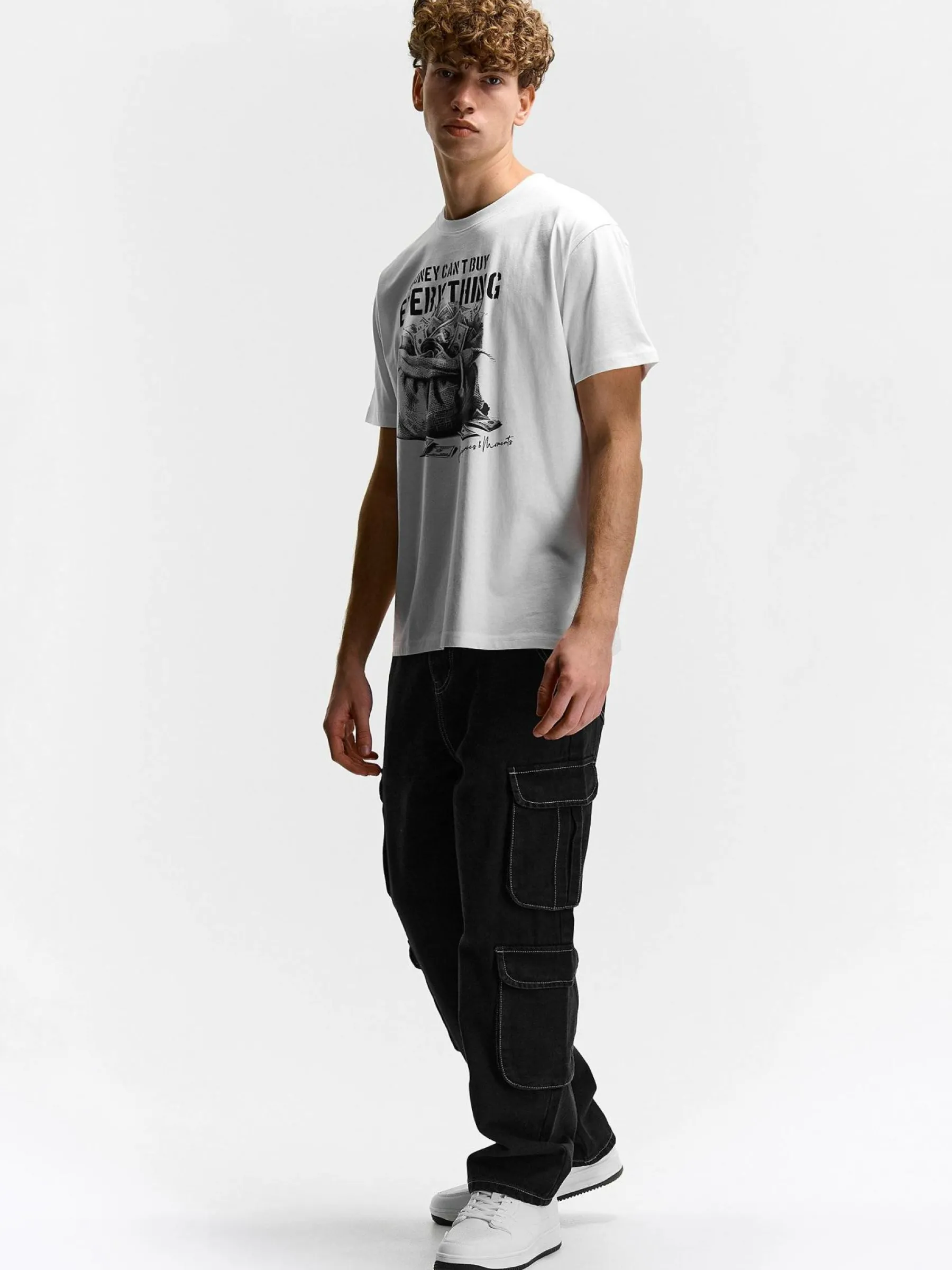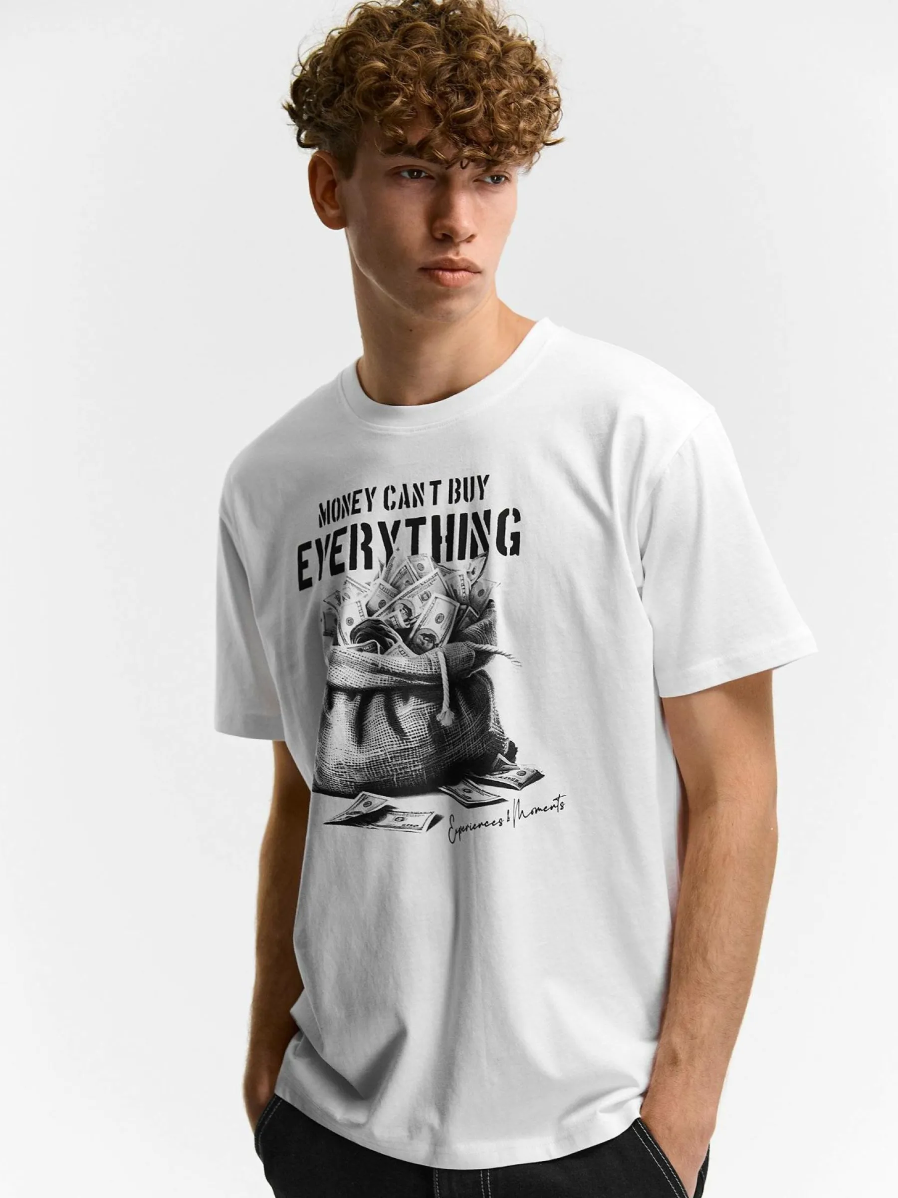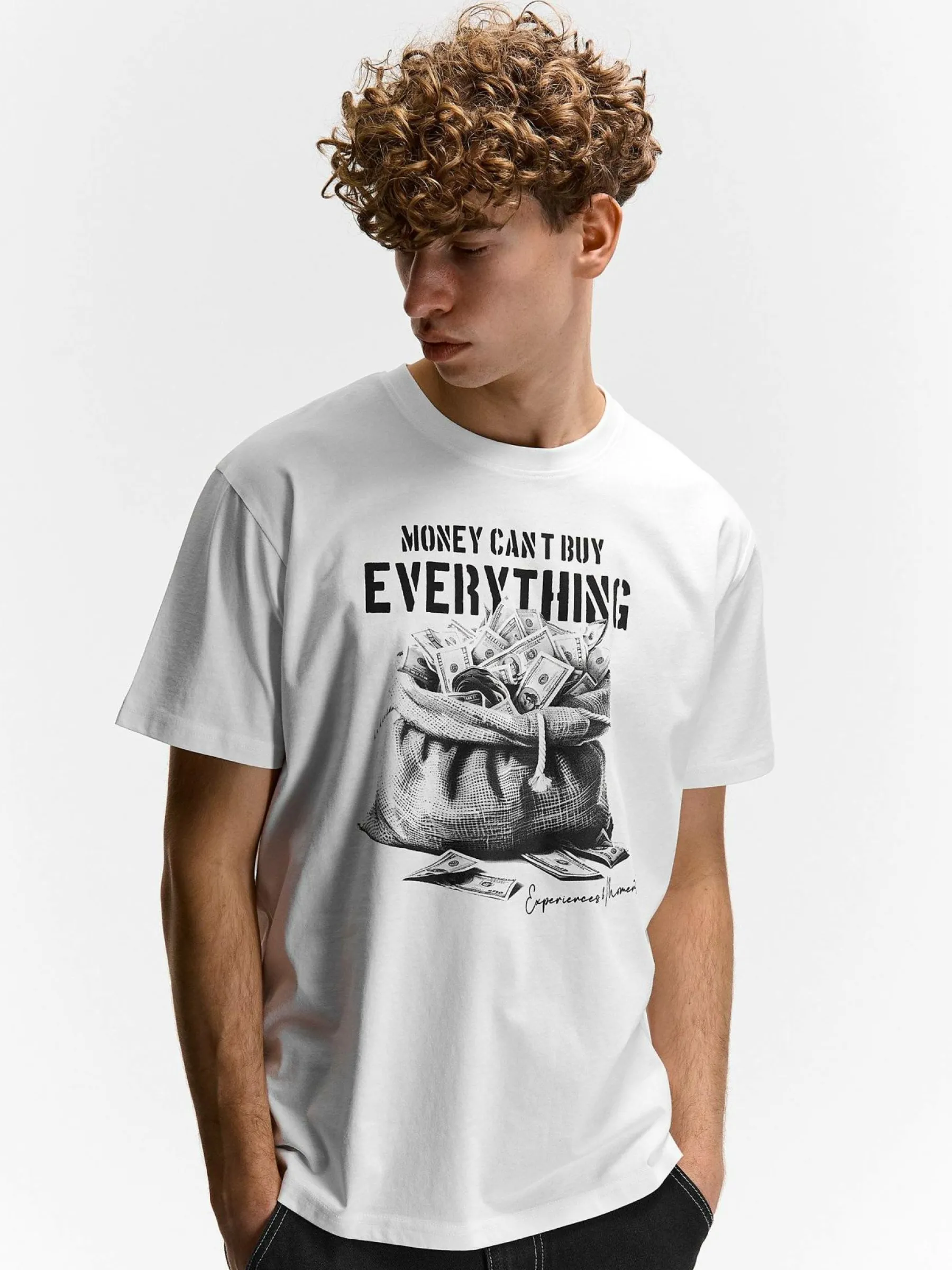 Kolor: białyKrój: regularTyp: koszulkaRekaw: krótki rękawPattern style: z nadrukiemDetal: nad głowąMateriał: bawe…