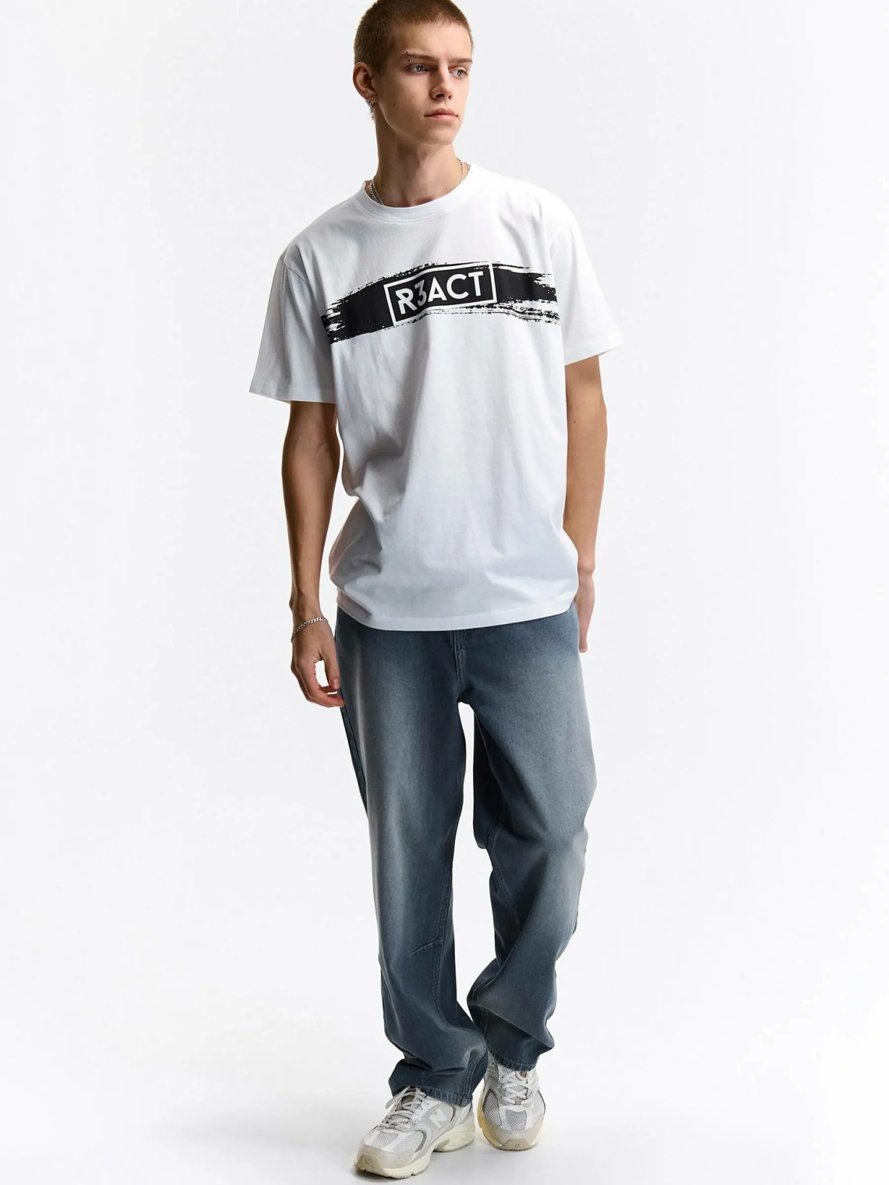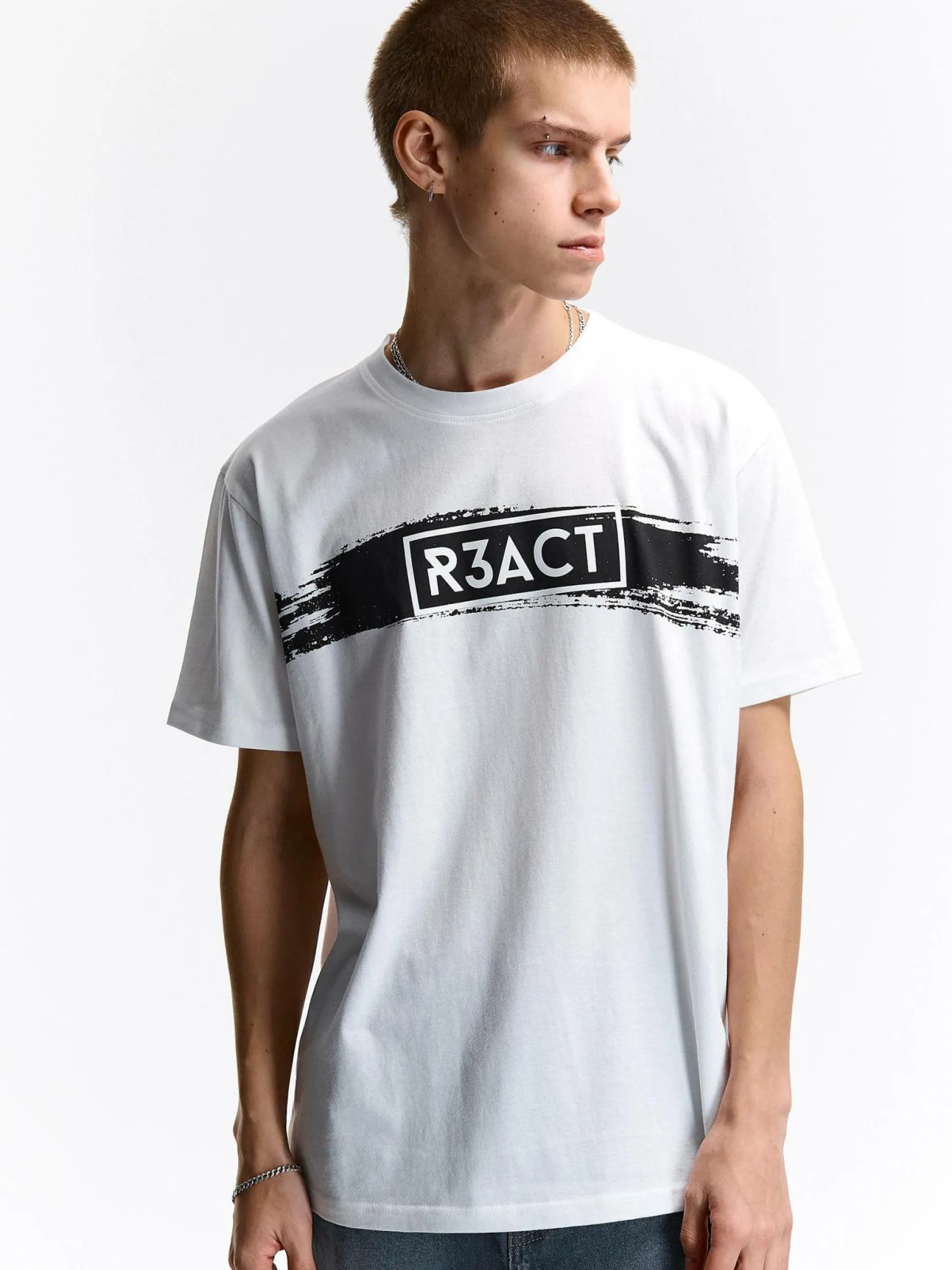 Kolor: białyKrój: regularTyp: koszulkaRekaw: krótki rękawPattern style: z nadrukiemDetal: nad głową, ze znakiemMat…