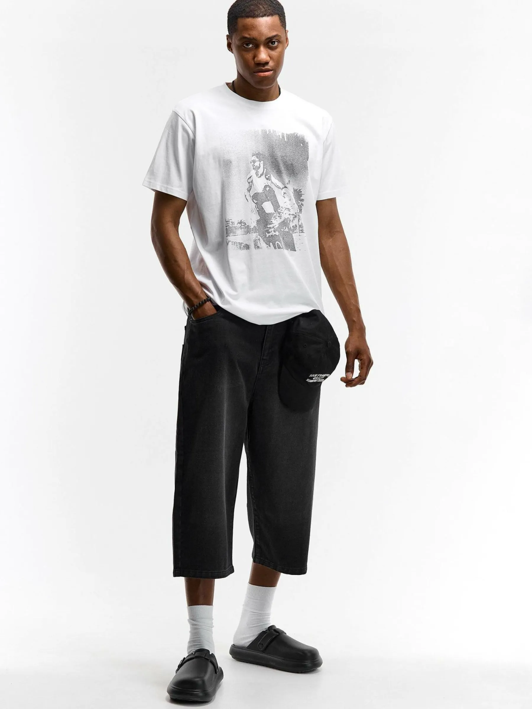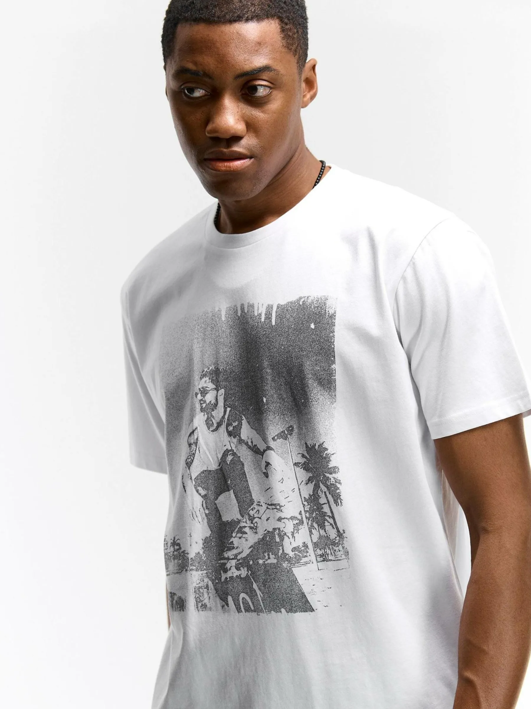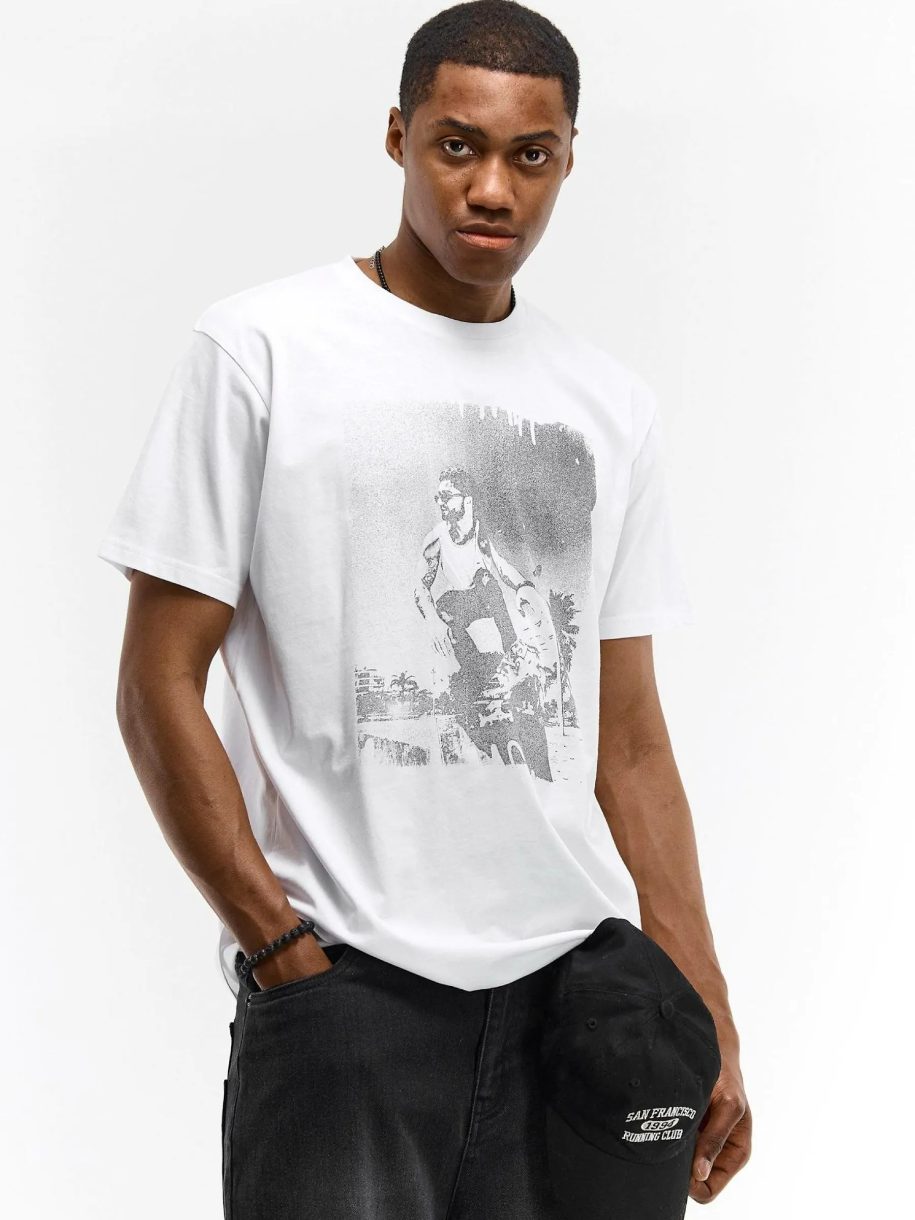 Kolor: białyKrój: regularTyp: koszulkaRekaw: krótki rękawPattern style: z nadrukiemDetal: nad głowąMateriał: bawe…
