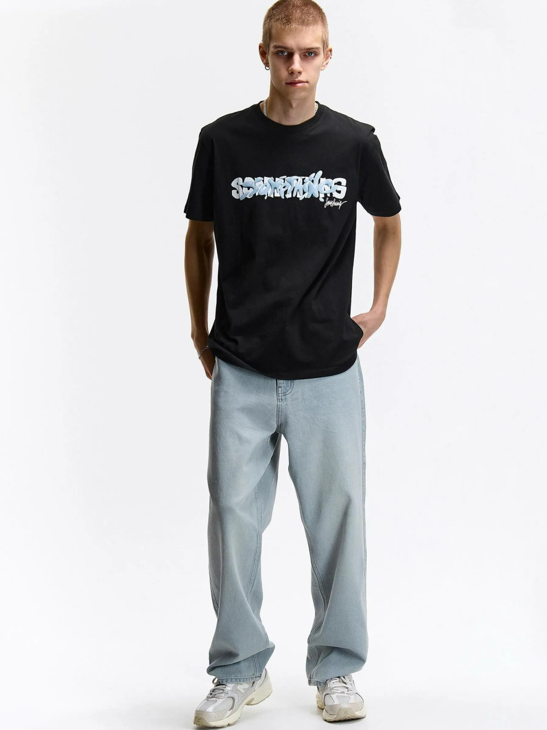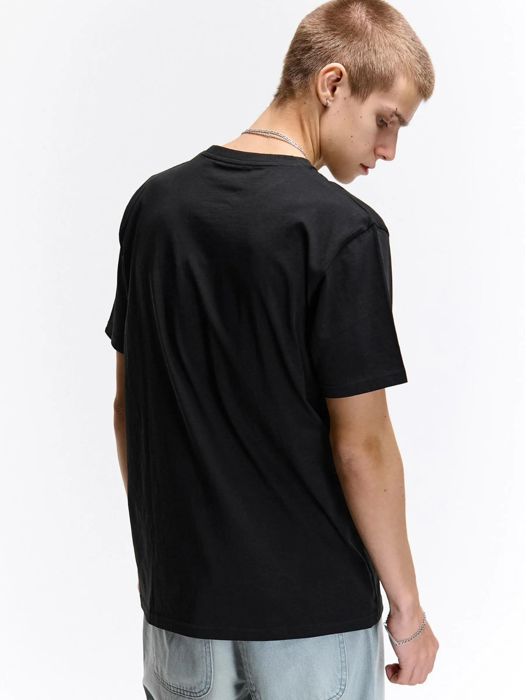 Kolor: czarnyKrój: regularTyp: koszulkaRekaw: krótki rękawPattern style: z napisemDetal: nad głowąMateriał: baweł…