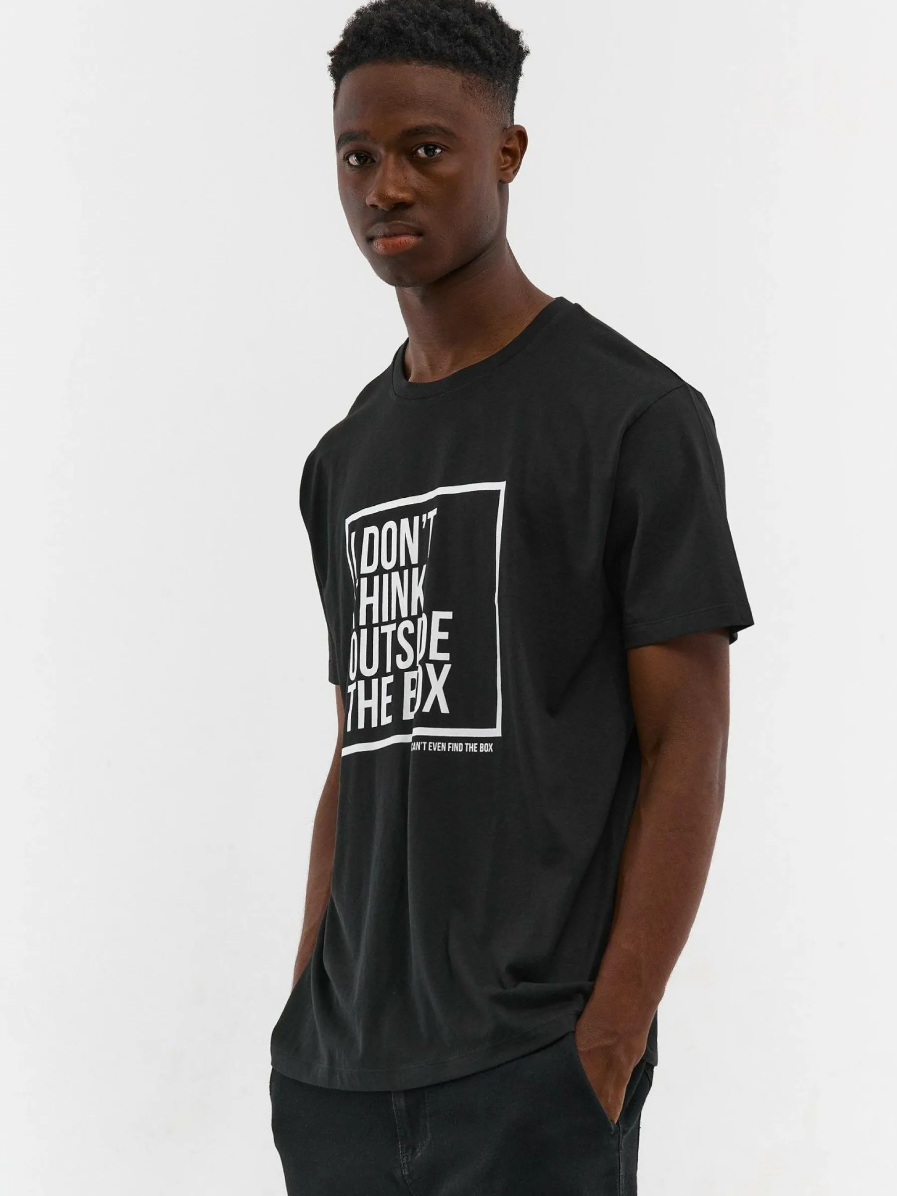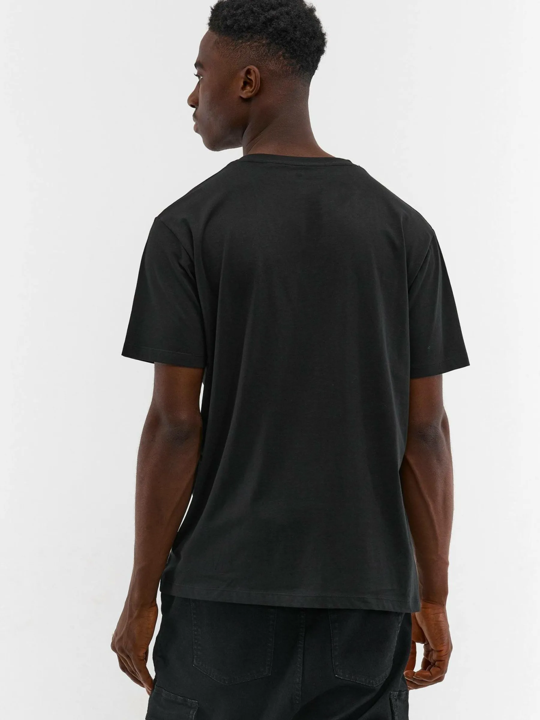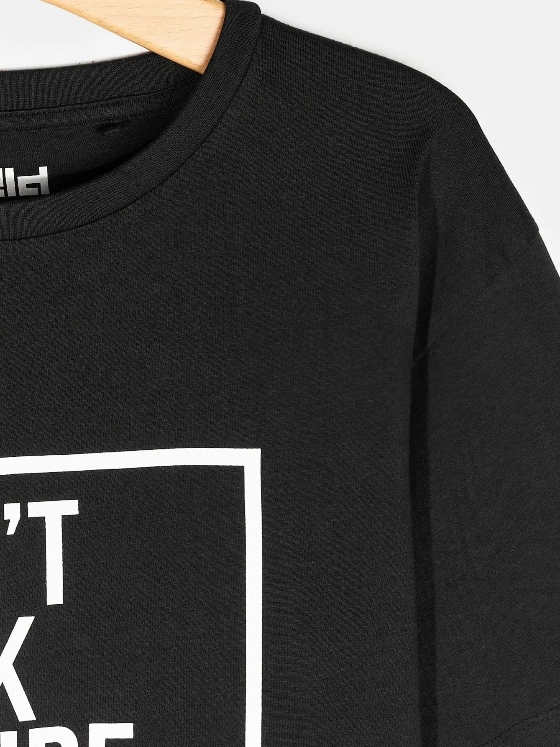 Kolor: czarnyKrój: regularTyp: koszulkaRekaw: krótki rękawPattern style: z nadrukiemDetal: nad głowąMateriał: bawe…