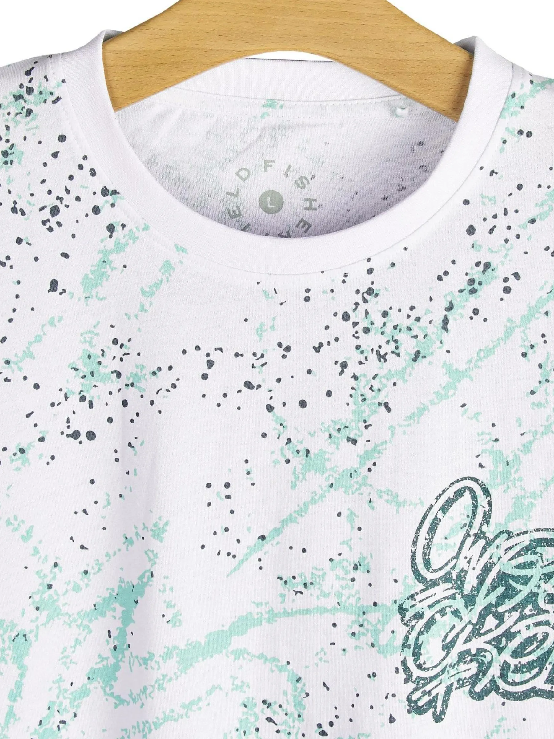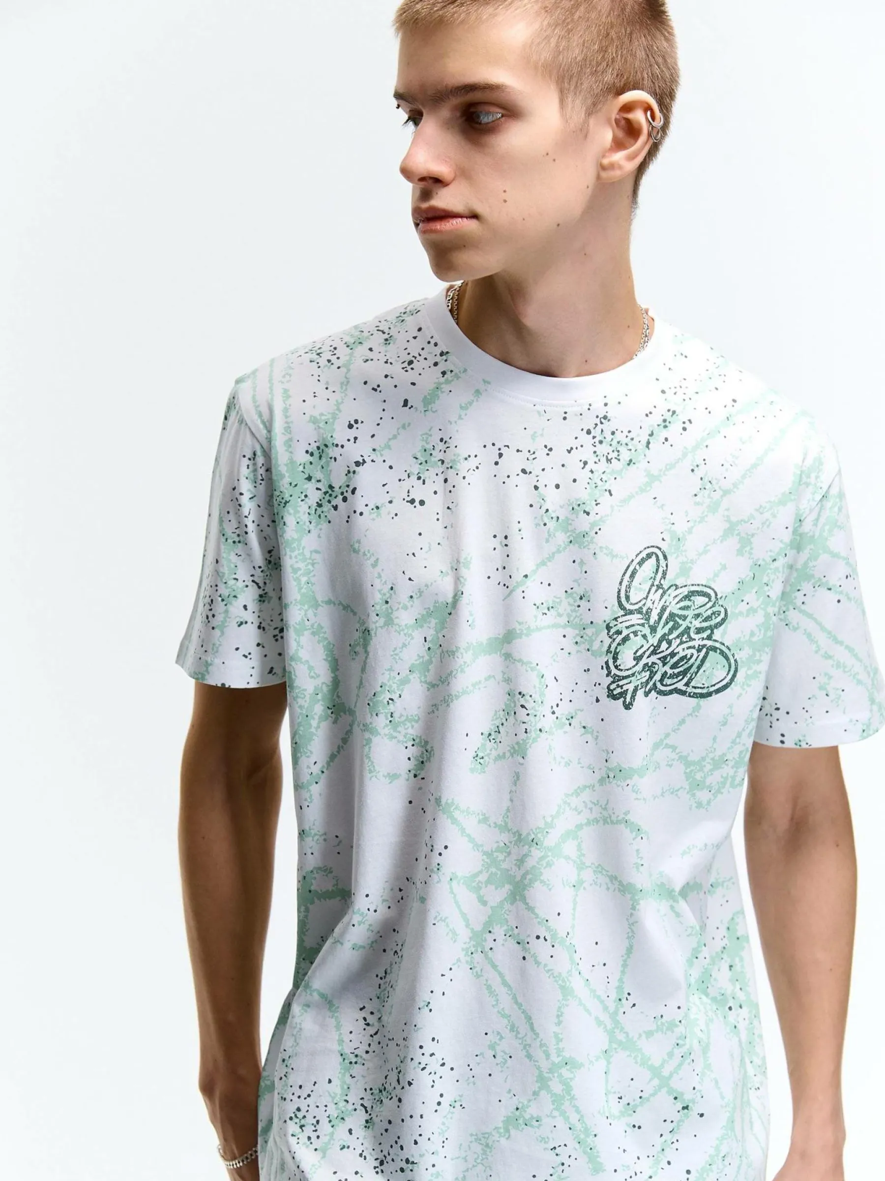Kolor: zielonyKrój: regularTyp: koszulkaRekaw: krótki rękawPattern style: z nadrukiemDetal: nad głowąMateriał: baw…