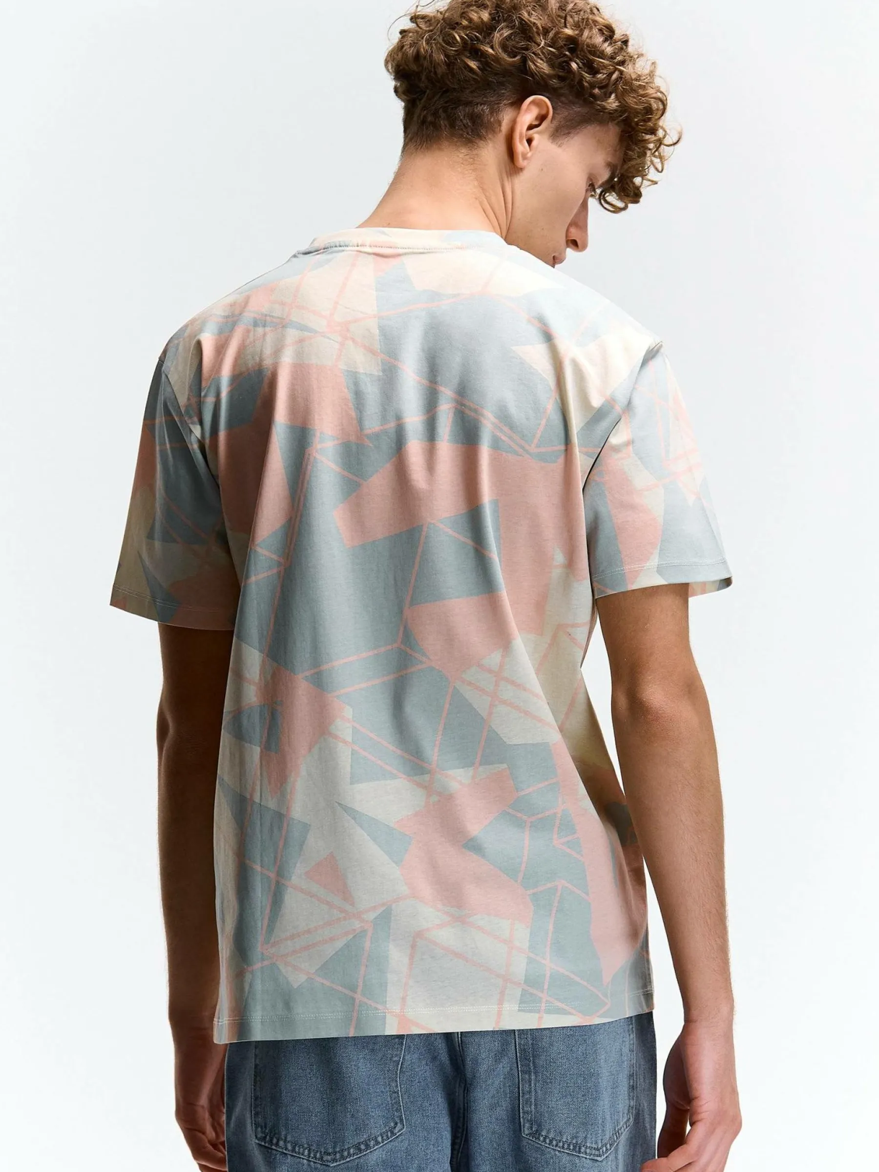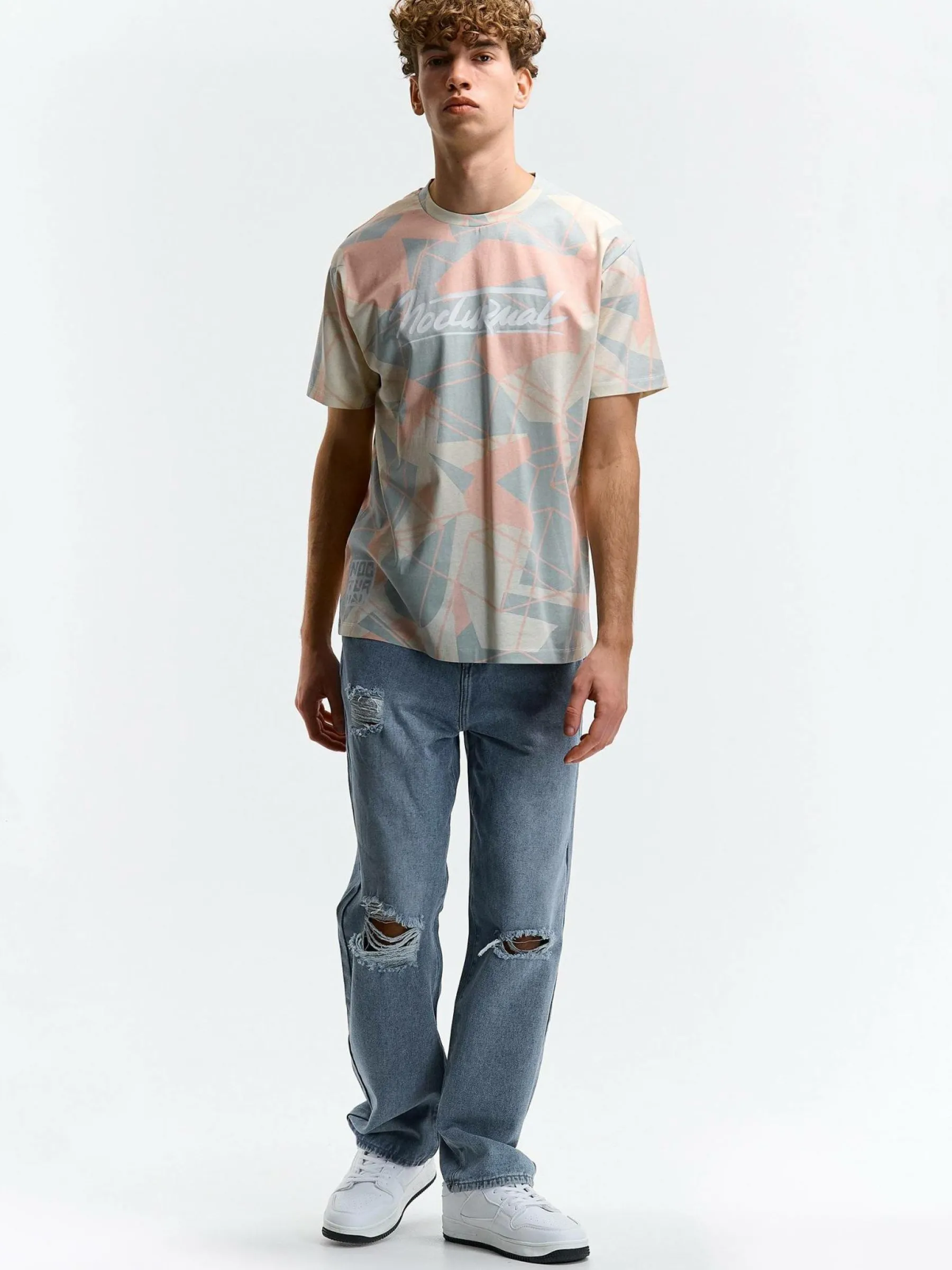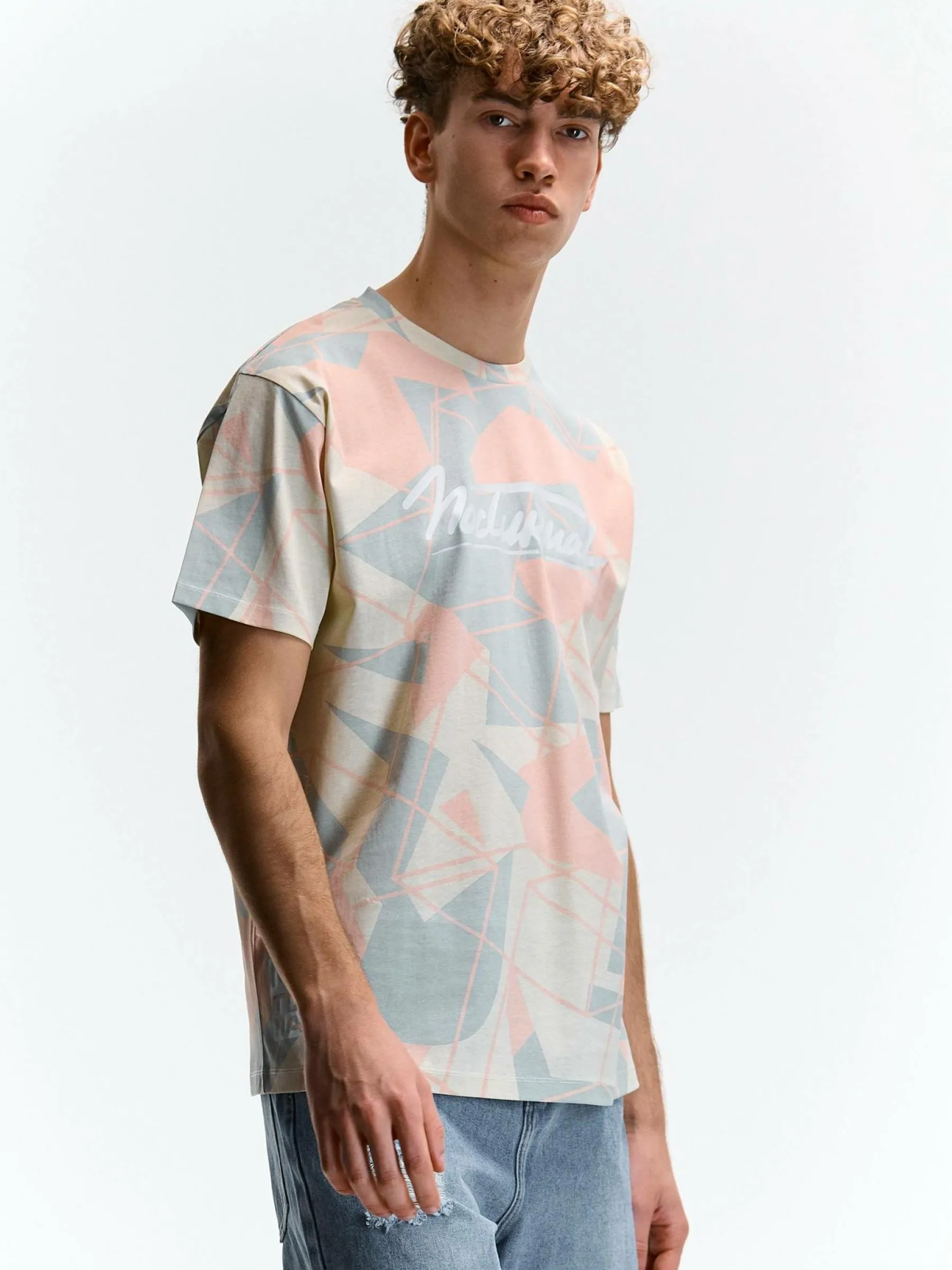Kolor: beżowy, białyKrój: regularTyp: koszulkaRekaw: krótki rękawPattern style: z nadrukiemDetal: nad głowąMateri…