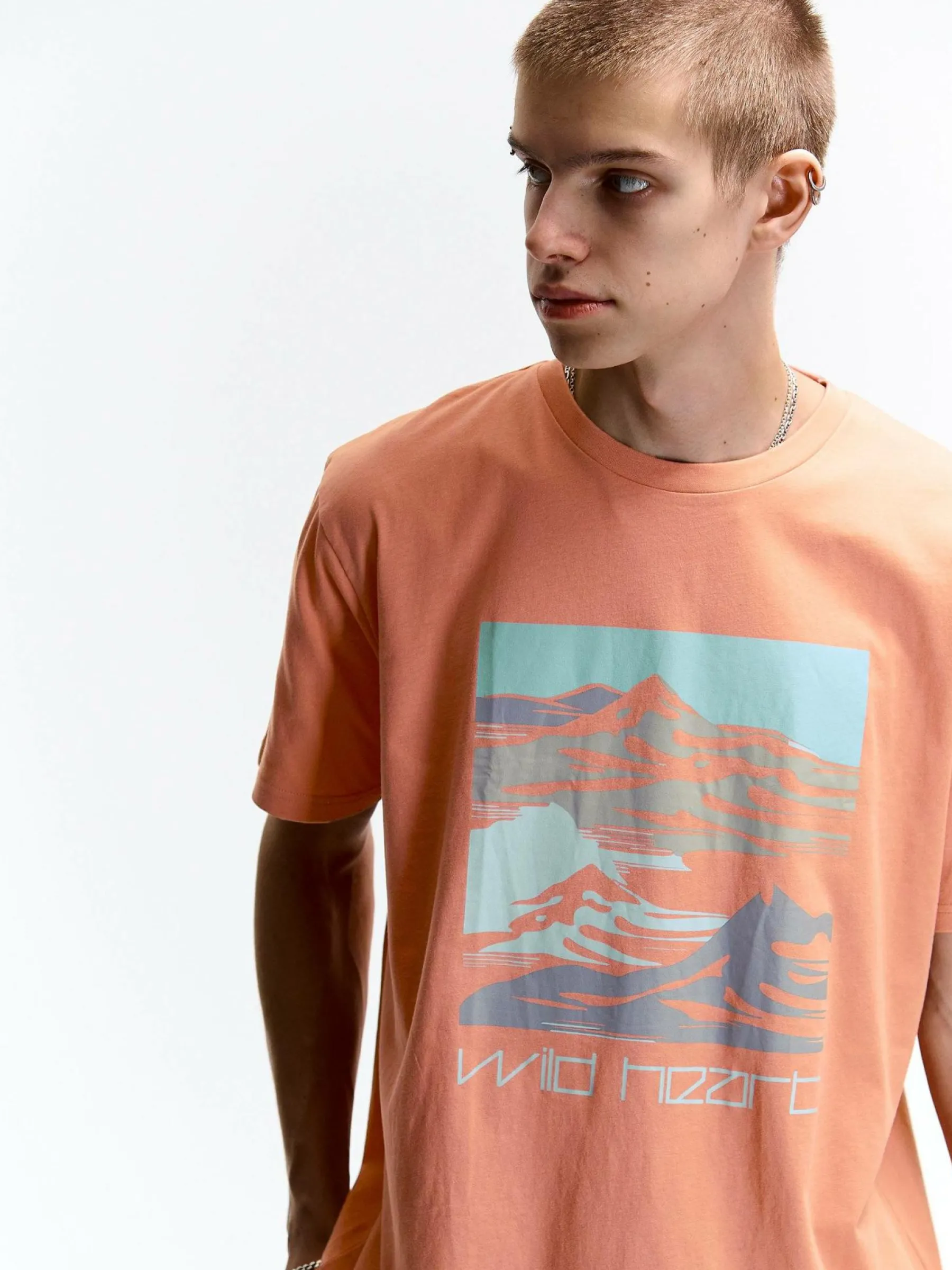 Kolor: różowyKrój: regularTyp: koszulkaRekaw: krótki rękawPattern style: z nadrukiemDetal: nad głowąMateriał: ba…